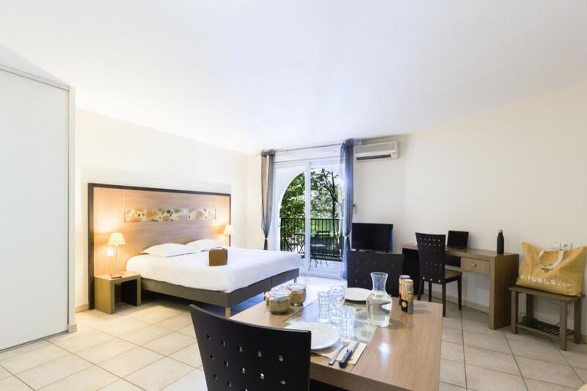 Die Résidence Garden & liegt am Fuße der Sainte Victoire in einem Gewerbegebiet. Die Stadt Aix-en-Provence Rousset*** liegt nur 15 Minuten vom Zentrum von Aix-en-Provence und 40 Minuten von Marseille entfernt. In der Sommersaison steht Ihnen ein Freibad zur Verfügung, das Ihnen nach dem Sonnenbad eine Erfrischung bietet! Damit Sie gut in den Tag starten, sollten Sie sich das Frühstück zum Mitnehmen nicht entgehen lassen. In einer waldreichen und grünen Umgebung bietet die Residenz Unterkünfte von Studios für 2 Personen bis hin zu Villen mit 3 Schlafzimmern für 8 Personen, um Sie während Ihres Familienaufenthalts unterzubringen. Das kleine Extra: Alle Unterkünfte verfügen über eine Klimaanlage in einem der Schlafzimmer. Perfekt für die Sommerhitze! Superior Studio für 3 Personen. Terrasse oder Balkon. Wohnzimmer mit Doppelbett und Einzelbett. Ausgestattete Küchenzeile. Badezimmer und WC. WLAN-Zugang – inklusive Haustiere erlaubt – extra Endreinigungspaket - inklusive (ausgenommen Küchenbereich, Geschirr und Mülleimer) Bettwäsche - inklusive Badezimmerwäsche - inklusive Babybett - 5 € (je nach Verfügbarkeit und Reservierung) Parken - kostenlos im Außenbereich Frühstück - Frühstücksbuffet (Erwachsener): 12,90 EURO; / Kind 4-11 Jahre: 9€ / Kind unter 4 Jahren: kostenlos / zum Mitnehmen: 8 EURO; Schwimmbad – freier Zugang zum Freibad vom 01.06. bis 02.10 Kurtaxe (zusätzliche Gebühr) – zahlbar vor Ort gemäß dem aktuellen Satz