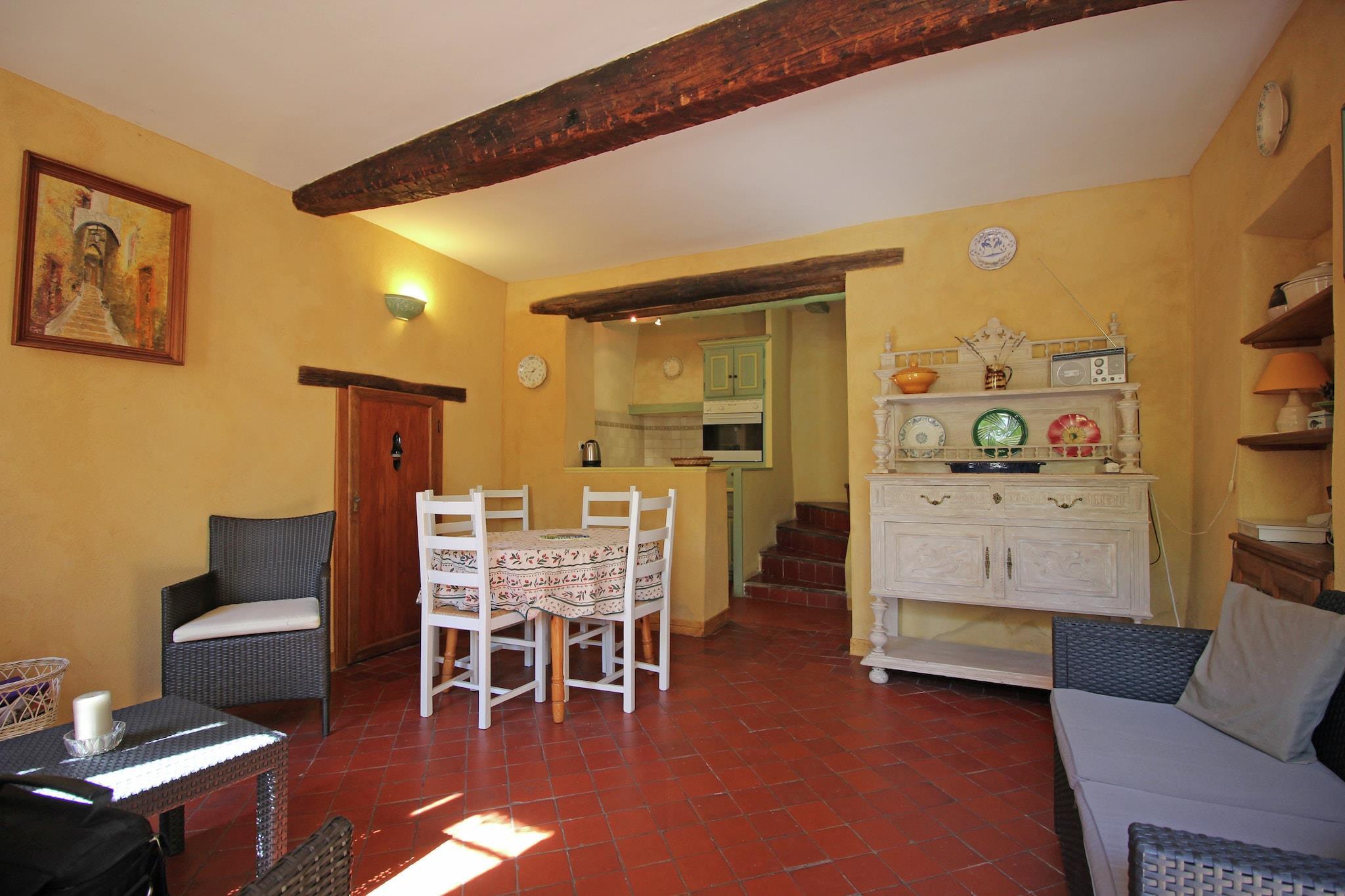 Ferienhaus in einem Dorf, das zu einem der schönsten Dörfer Frankreichs gekürt wurde. Das kleine Dorf Roussillon liegt idyllisch auf einem Felsvorsprung und ist von herrlichen Ockerfelsen umgeben. Die leuchtenden Ockerfelsen, die Sie auf dem Foto sehen, sind nur 100 m von Ihrem Ferienhaus entfernt. Venasques, Gordes, Ménèbres, Lourmarin, Ansouis sind nur einige weitere Dörfer, die sich ebenfalls mit dem Titel, eines der schönsten Dörfer Frankreichs zu sein, schmücken können, die so zahlreich in dieser schönen Region vertreten sind. Nur wenige Häuser der Umgebung verfügen über eine derart hübsche, kleine Terrasse, die schattig unter einem Weinstock liegt. Das Ferienhaus wurde im 18. Jahrhundert erbaut und erst kürzlich von dem Eigentümer renoviert, der hierfür ausschließlich traditionelle Werkstoffe verwendet hat. Die sehr gepflegte Inneneinrichtung ist typisch für die Region. In punkto Funktionalität bleiben ebenfalls keine Wünsche offen. So bietet das Haus neben einer gut ausgestatteten Küche ebenfalls 2 Schlafzimmer in den Obergeschossen und ein Bad mit Dusche. Von der kleinen Terrasse im zweiten Stock bietet sich Ihnen ein herrlicher Ausblick auf die Umgebung. Für Parkplätze ist ebenfalls gesorgt: nur 50 m entfernt liegt ein Parkplatz, der direkt zugänglich und für die Mieter kostenlos ist. Dieses Ferienhaus hat wirklich alles zu bieten! Zu den Sehenswürdigkeiten der Umgebung zählen das provenzalische Colorado, die Ockerpfade, das Dorf Bories (bekannt für seine Häuser mit den markanten Vorkragungen), die provenzalischen Märkte, Kunstgalerien und eine Vielzahl von Weinkellern,