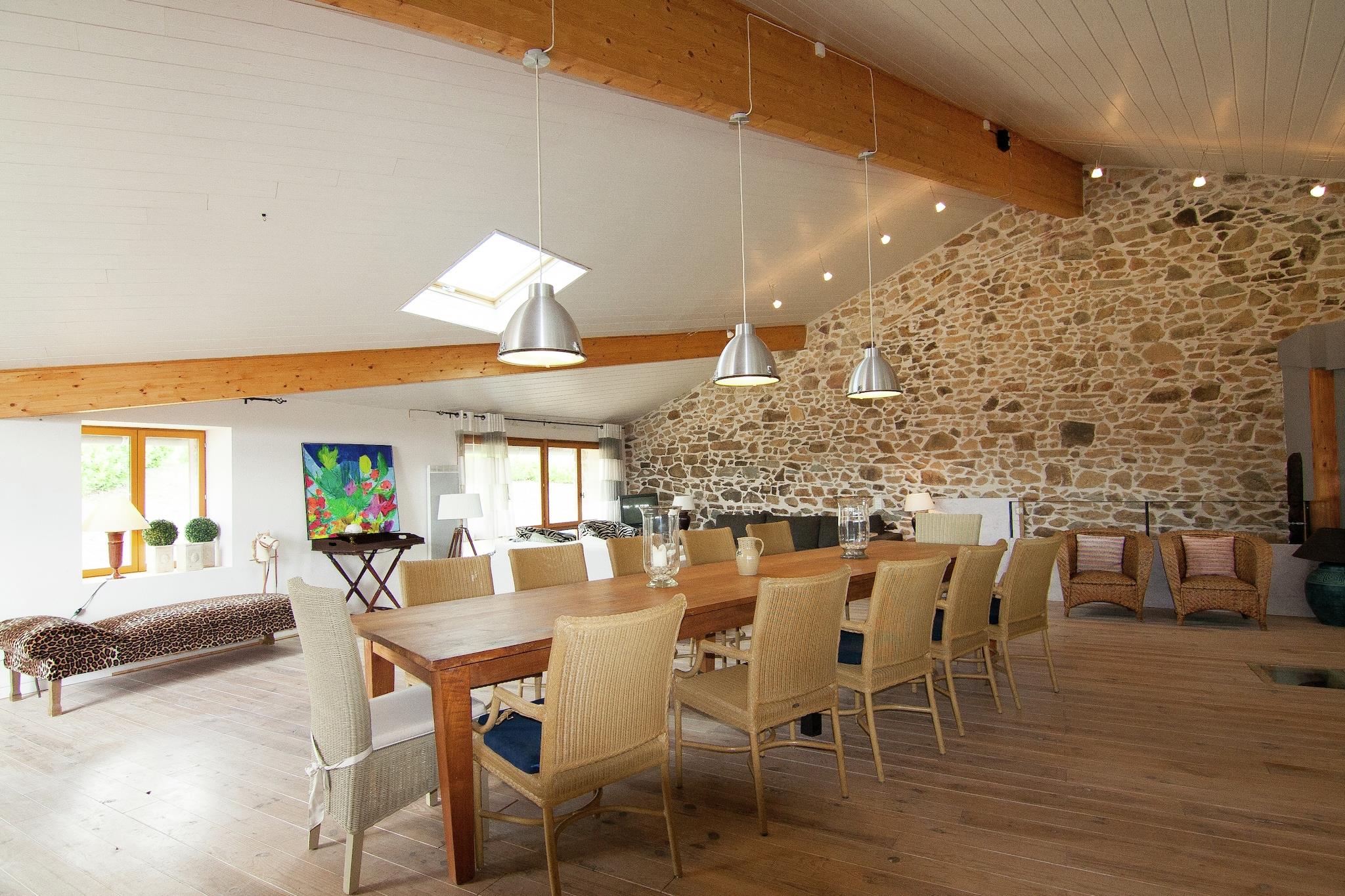 Eingebettet in die grünen Hügel bei Roussines bietet die Domaine de Bellac einen ruhigen Rückzugsort für bis zu 32 Gäste in 6 Ferienhäusern mit 15 Schlafzimmern. Umgeben von Wäldern und Seen eignet sich das Anwesen ideal für große Familien oder Gruppen mit Kindern. Genießen Sie Wander- und Mountainbike-Strecken und entspannen Sie im beheizten Pool mit überdachtem Ruhebereich. Kinder werden das Trampolin, die Tischtennisplatte und das Fußballspiel lieben. Die Region ist voller Charme mit romantischen Städten, Flüssen und Süßwasserseen. Speisen Sie günstig an malerischen Orten wie La Lanterne oder genießen Sie Drinks im Le Soleil Couchant und Chez Maurice. Golfliebhaber können auf dem nur 1 km entfernten Golf de la Prèze abschlagen, während Naturliebhaber Le Roc Branlant oder die Base Nautique des Lacs de Haute Charente erkunden können. Für ruhige Spaziergänge besuchen Sie Gärten wie Les jardins de laussagne, Gardens Mornac oder Jardins du Chaigne. Mit einem Flughafen nur 35 km entfernt vereint dieses Anwesen Privatsphäre, Komfort und Abenteuer im Herzen der Dordogne.