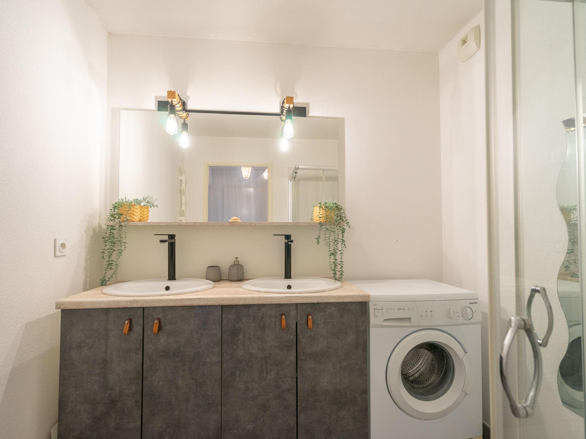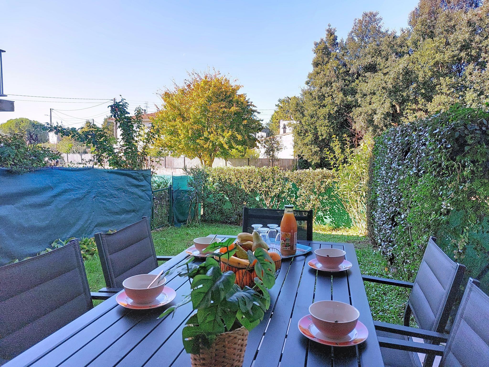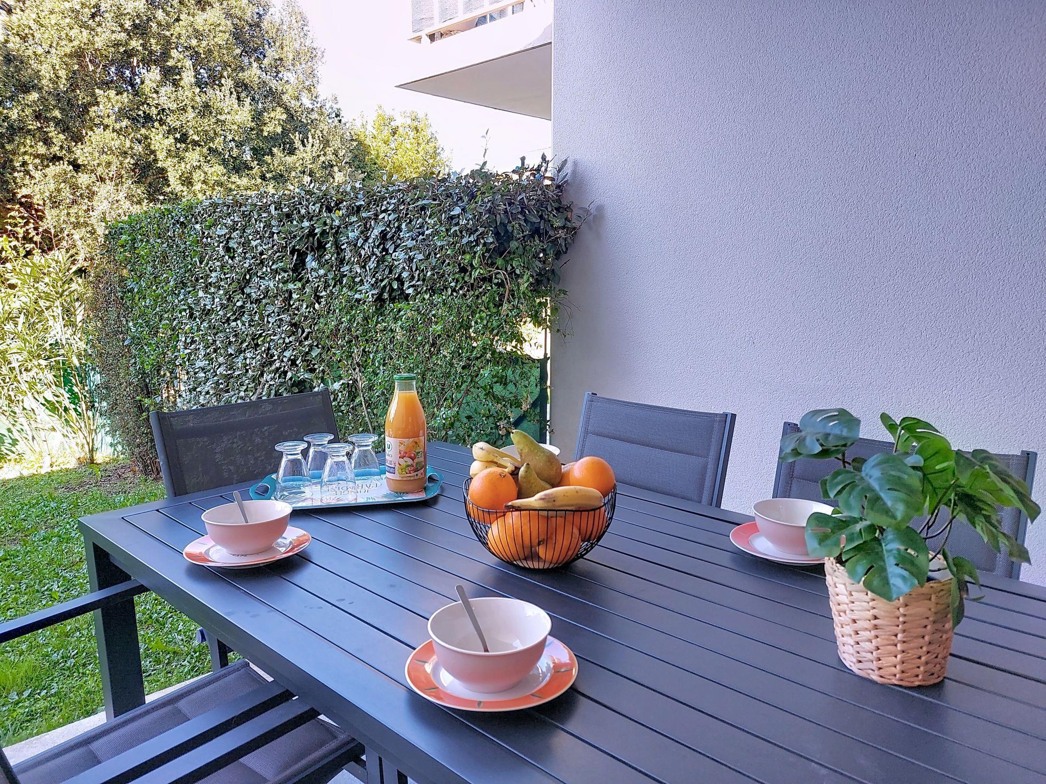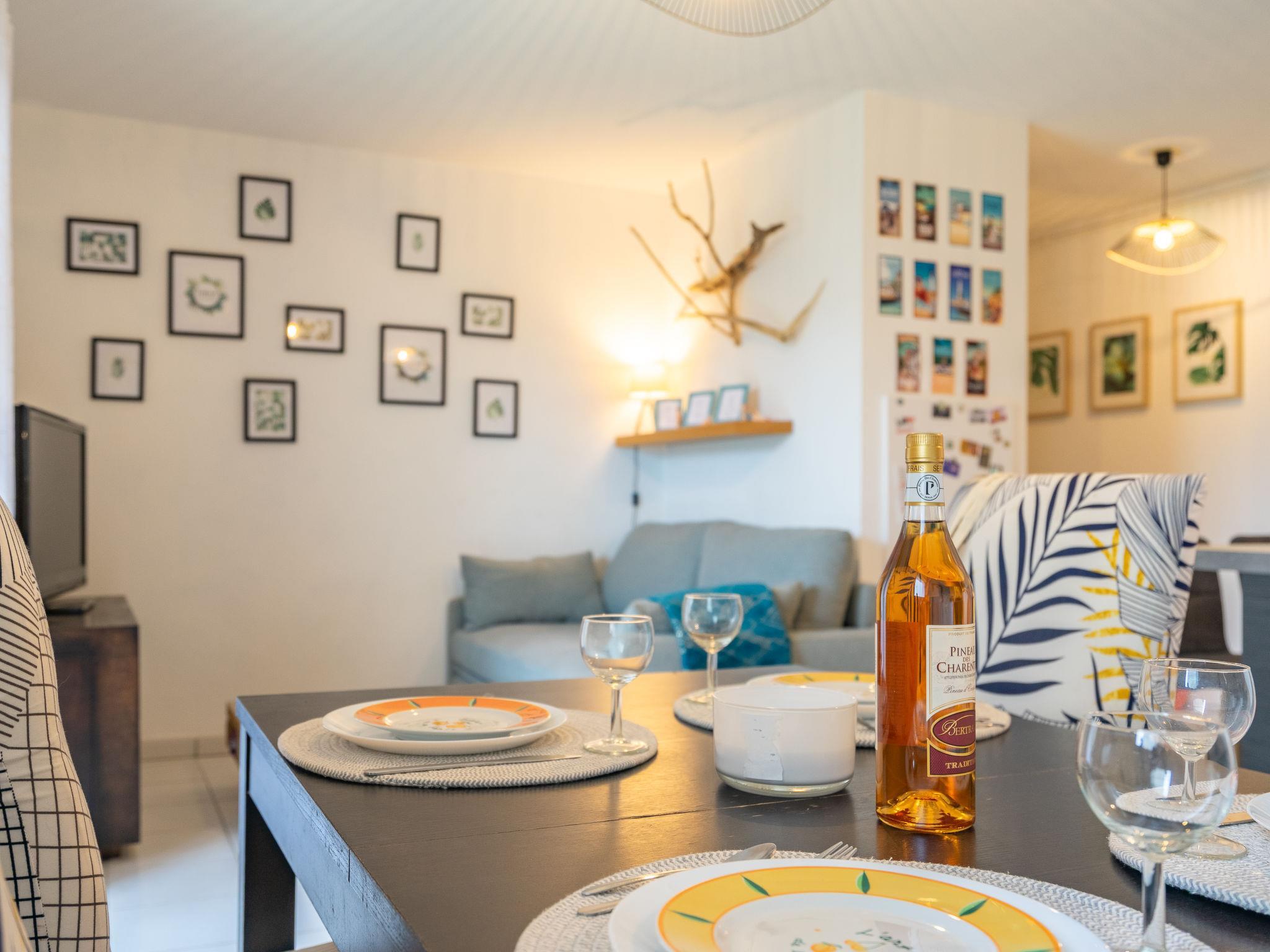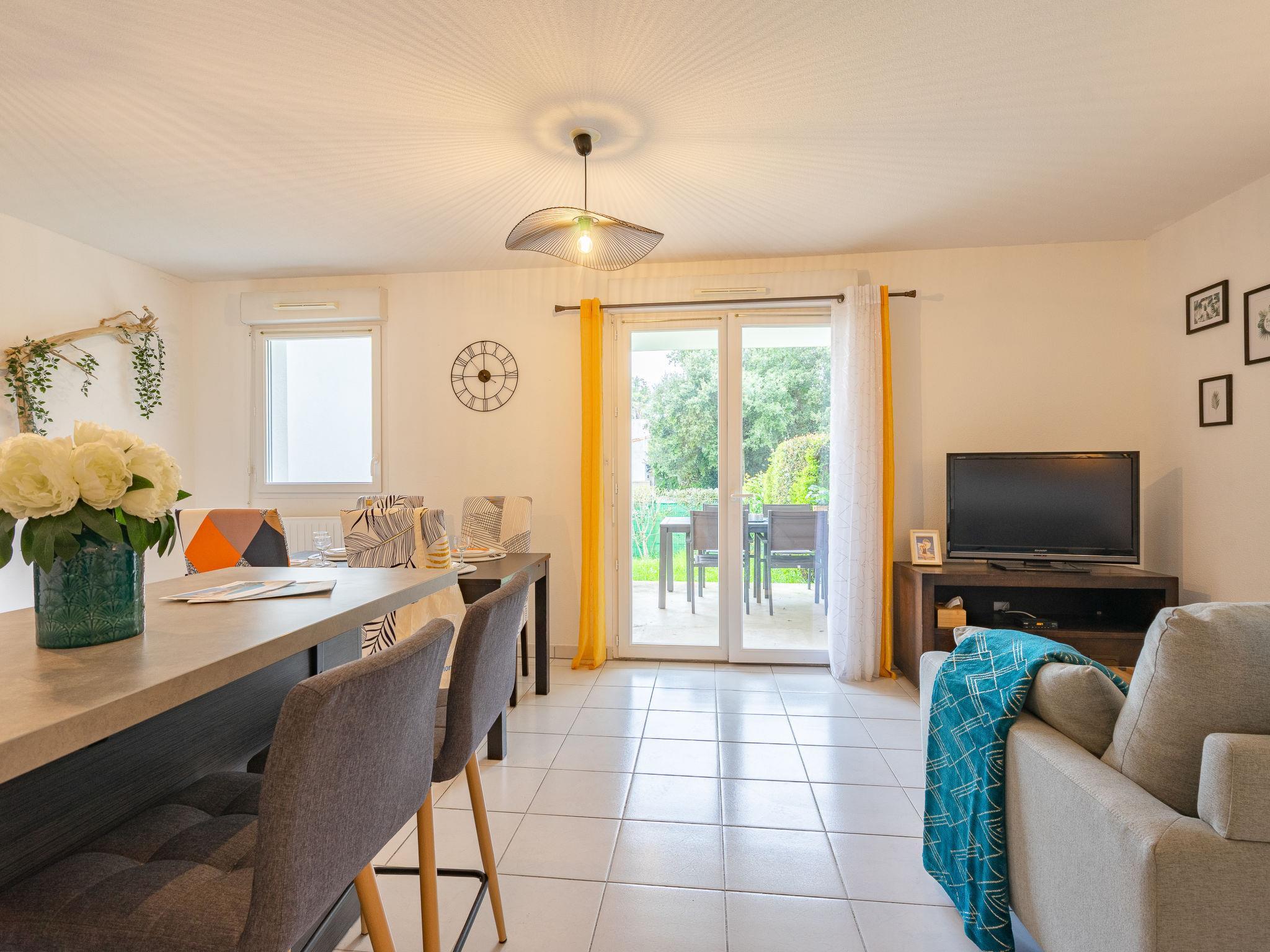 Residenz "Les Jardins d'Aunis", Baujahr 2012. 15 Wohnungen in der Residenz. Im Ort, 1.5 km vom Zentrum von Royan, 2 km vom Meer, 2 km vom Strand. Im Hause: Einstellraum für Fahrräder. Einkaufsgeschäft 1.5 km, Supermarkt 1.3 km, Restaurant 1.5 km, Bäckerei 1.5 km, Bushaltestelle "Regazzoni" 200 m, Bahnstation "Royan" 2.5 km, Sandstrand "Grande Conche - Royan" 2 km, Hallenbad 2.5 km, Thermalbad "Thalassothérapie Thalazur Royan" 3 km. Sporthafen 3 km, Golfplatz (18 Loch) 6 km. Nahe gelegene Sehenswürdigkeiten: Marche Central de Royan 1.5 km, Casino Barrière 2.5 km, Palais des Congrès 2.5 km, Embarcadère Royan - Le Verdon 3 km, Zoo de La Palmyre 13 km, Hippodrome - La Palmyre 14 km. Die Residenz wird durch elektrische Tore geschlossen. Die Schlüsselübergabe findet bei der Agentur Interhome in Vaux sur Mer statt, 3 km.