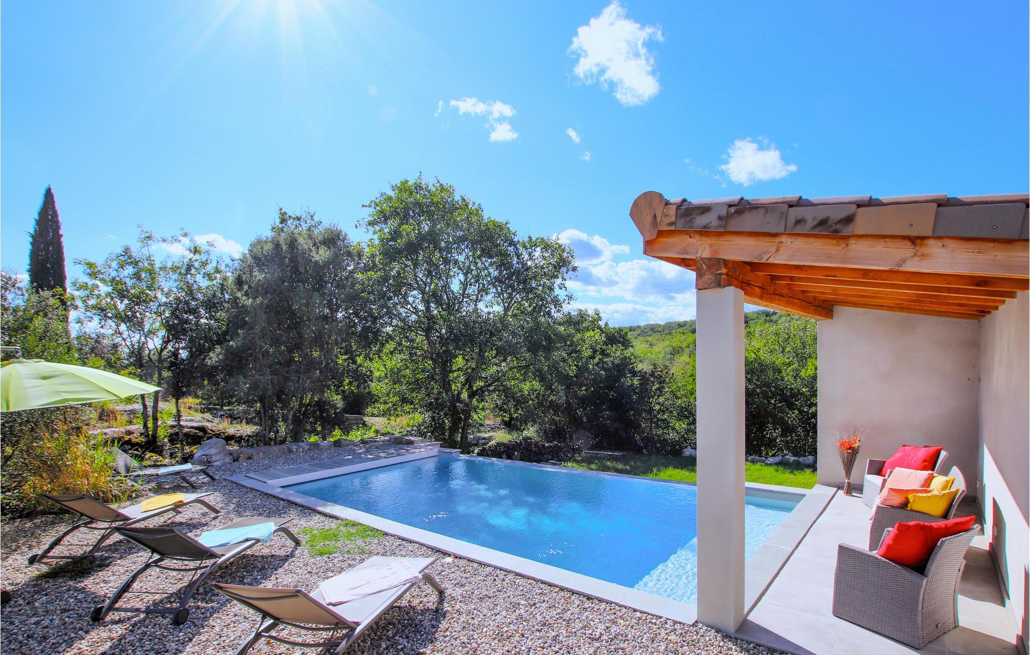 In traumhafter Lage zwischen den beiden schönsten Flüssen der südlichen Ardèche empfängt Sie dieses hünsche und farbenfrohe Ferienhaus mit Pool.
