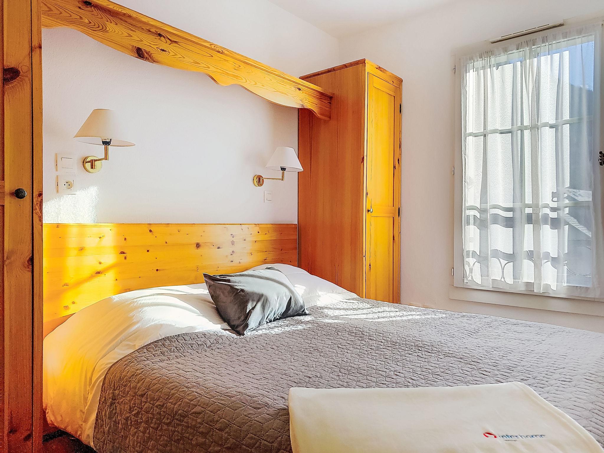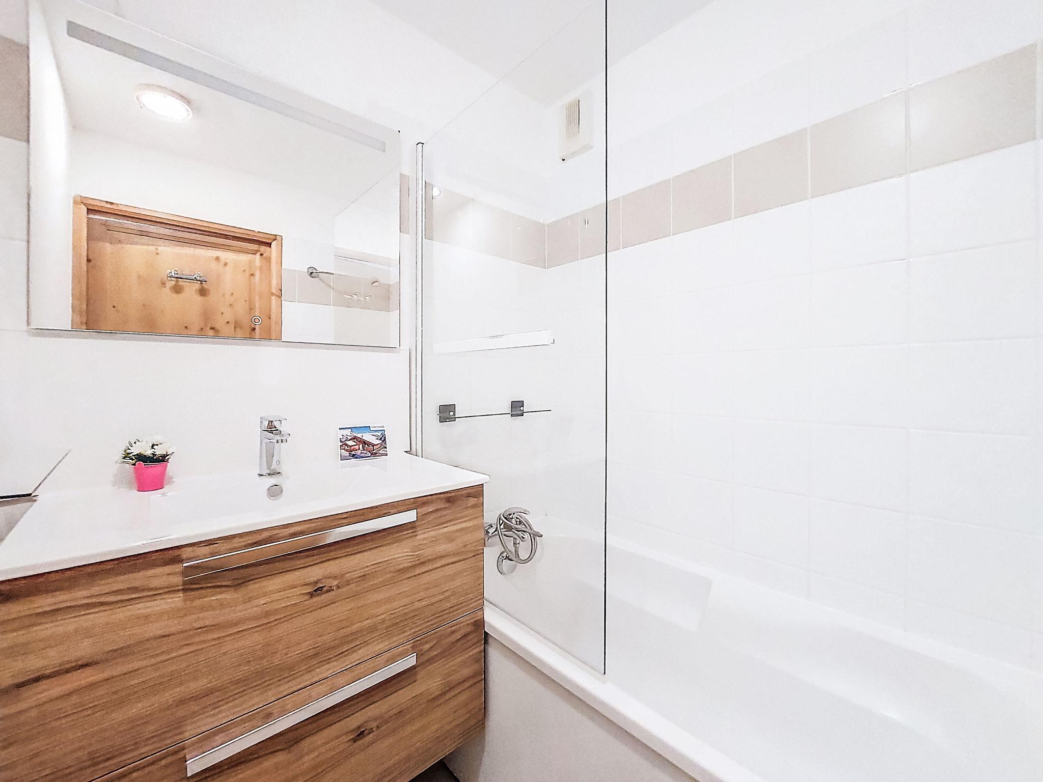 "Le Grand Panorama 412", 3-Zimmer-Wohnung 42 m2 im 4. Stock. Wohn-/Esszimmer mit 1 Ausziehbett, Esstisch und TV. Ausgang zum Balkon. 1 Zimmer mit 1 franz. Bett (160 cm, Länge 190 cm), Waschbecken, Dusche und TV. 1 Zimmer mit 2 Betten. Offene Küche (Geschirrspüler, 4 Glaskeramikplatten, Toaster, Wasserkocher, Mikrowelle, Tiefkühler, elektrische Kaffeemaschine). Bad, sep. WC. E-Heizung. 2 Balkone, Südlage und Westlage. Balkonmöbel. Schöne Sicht auf die Berge. Zur Verfügung: Internet (Wireless LAN, extra). Garage Nr. 16. Bitte beachten: TV nur FR. Rauchmelder. FR7450.700.2