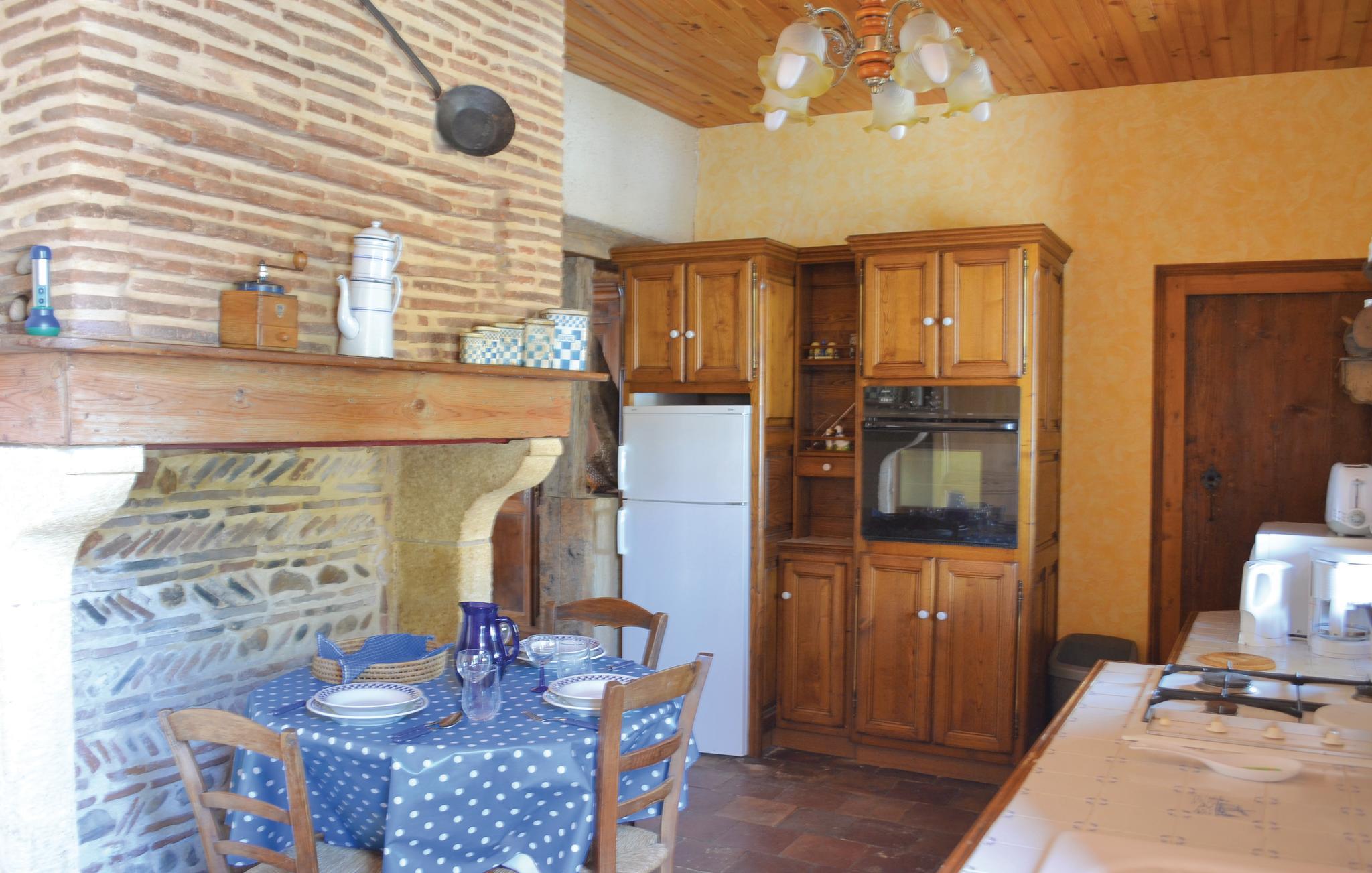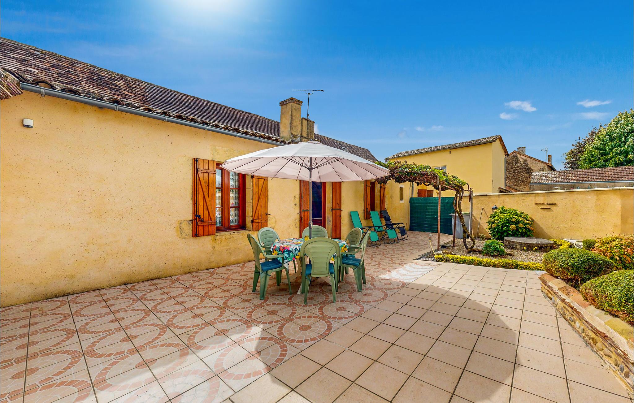 Verbringen Sie Ihren Urlaub in diesem gemütlichen Ferienhaus in einem ursprünglichen Dorf westlich von Bergerac. Umgeben von weitläufigen Weinfeldern und nur einen kurzen Spaziergang von der Dordogne entfernt, bietet das Haus eine angenehme Atmosphäre für eine erholsame Auszeit. Lassen Sie sich im Wohnzimmer auf den bequemen Sofas nieder und genießen Sie die traditionelle Einrichtung mit antiken Möbelstücken, sichtbaren Holzbalken und rustikalen Steinmauern. Der großzügige Esstisch lädt zu gemeinsamen Mahlzeiten ein. Nutzen Sie die Küche, um regionale Spezialitäten zuzubereiten.