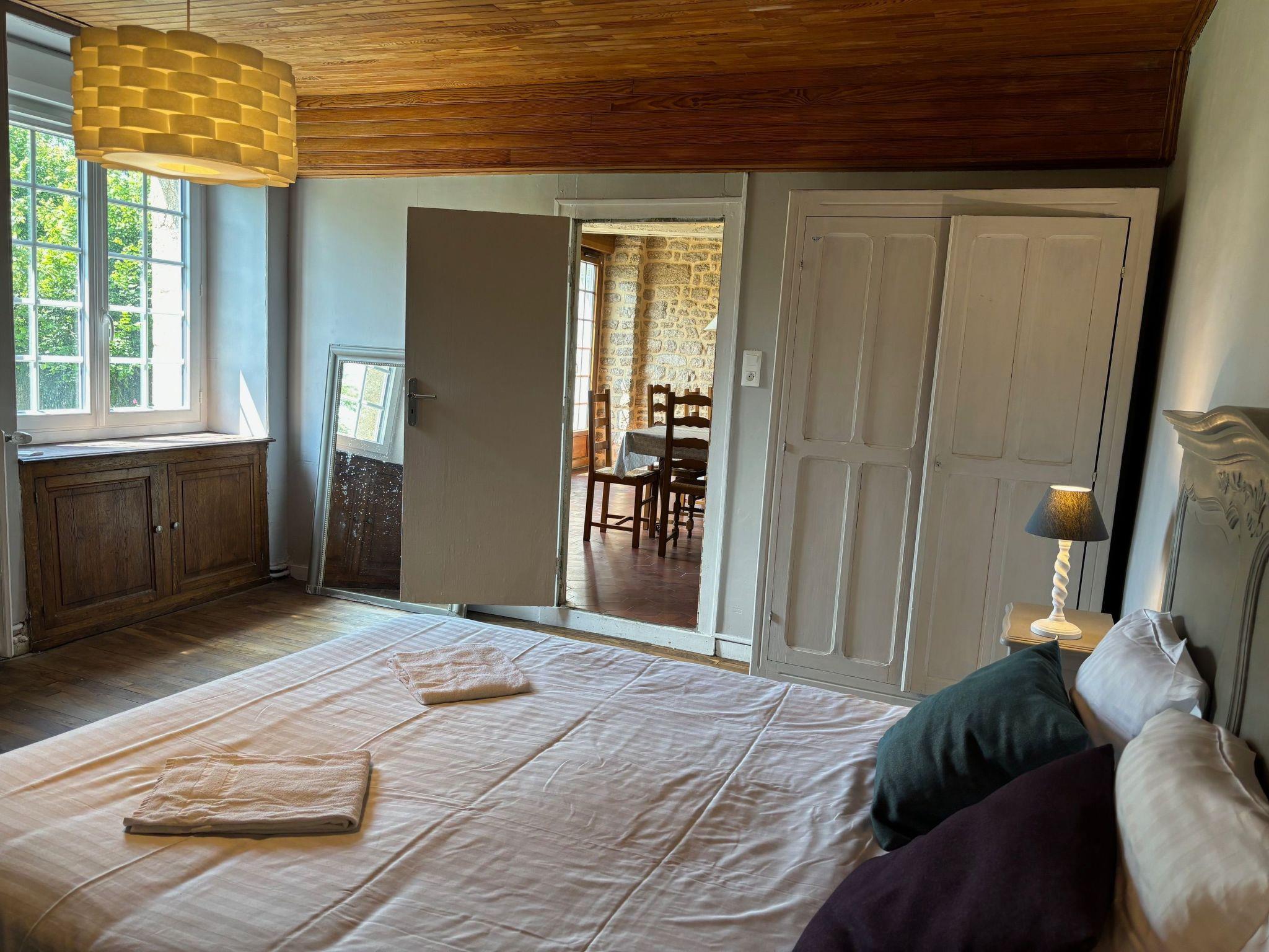 In einem sehr geräumigen Jagdhaus von 100m2 können Sie sich erholen und den Charme der Balken und der alten Steine genießen. Wir haben es 2018 für Ihren Komfort restauriert. Wir haben hochwertige Materialien ausgewählt, um Ihren Aufenthalt so angenehm wie möglich zu gestalten. Es ist mit drei Schlafzimmern (Bett 160 und 140 und 2 Betten 90), einem Badezimmer (Badewanne) und einem sehr großen Wohnzimmer mit Kamin ausgestattet. Es wird Sie begeistern, wenn Sie einen unvergesslichen Urlaub mit Freunden oder der Familie in geselliger Runde verbringen möchten. Auf einer Sonnenliege liegend oder bei der Vorbereitung des Grills, von Ihrem privaten Garten aus, können Sie den atemberaubenden Blick auf das Herrenhaus in aller Privatsphäre genießen. Die drei Ferienwohnungen befinden sich in Nebengebäuden, 100 m vom Herrenhaus entfernt. Es gibt keine weiteren Nachbarn.