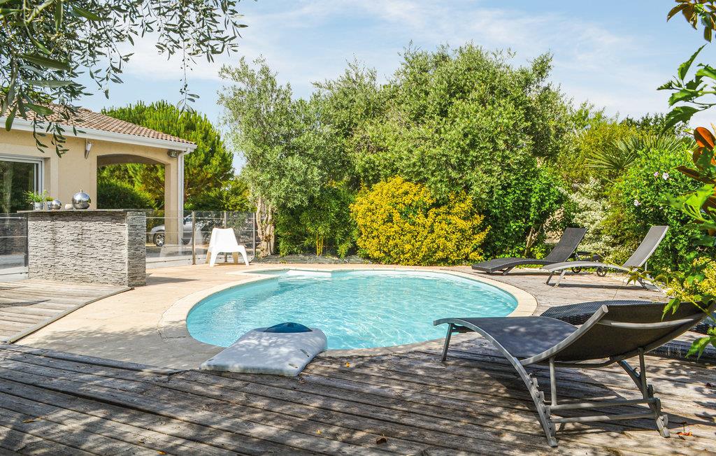 Zu diesem modernen und großzügig geschnittenen Ferienhaus gehören ein 4.000 m² großer Garten und ein nicht beheizter Privatpool, der ab Ende April bis Ende Oktober benutzt werden kann. Das Haus befindet sich am Rande des Dörfchens Saint-Michel-l'Écluse-et-Léparon, 70 km nordöstlich von Bordeaux. In dieser hügeligen Landschaft, die mit ihren Feldern, Wäldern und Teichen einen sehr schönen Eindruck macht, finden Wanderfreunde und Mountainbiker jede Menge Wege und Pfade. Im etwa 8 km entfernten Privatsee des Vermieters können Sie gern auf Zander, Hechte und Karpfen angeln. Erleben Sie die Weinbaugebiete Saint-Emilion und Périgord und erkunden Sie Bordeaux. Auf dem Grundstück befindet sich auch unsere FAD274, jedoch wird jedem Gast ausreichend Privatsphäre zugesichert: Jede Unterkunft hat eine eigenen Privatpool, einen eigenen Garten und eine eigene Zufahrt.