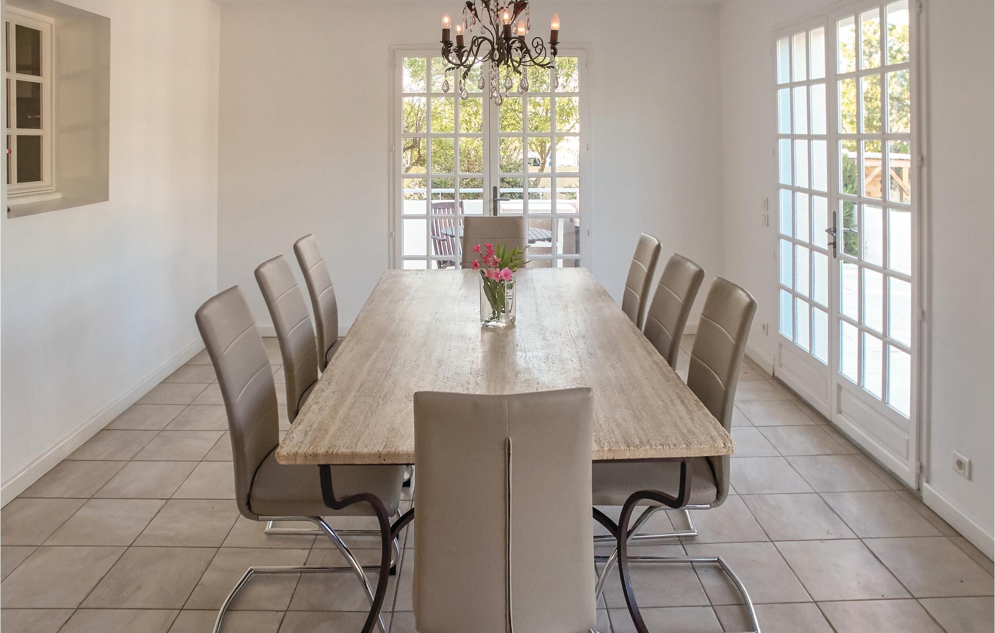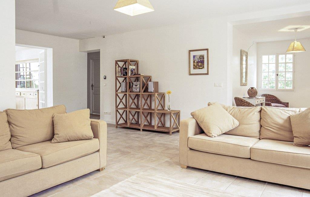 Die Innenräume sind in warmen, hellen Pastelltönen gehalten und von Licht durchflutet. Komfort und Geschmack zeichnen dieses charmante Ferienhaus aus. Es gibt eine Klimaanlage im Wohnzimmer und in den Schlafzimmern. Von dem großen Essraum gelangen Sie auf die Terrasse mit Blick auf den Garten und den Pool. Die Außenbereiche sind äußerst schön gestaltet, angenehm und hübsch begrünt. Eine große, geräumige Terrasse umgibt den Pool der Villa (mit Tor und Alarm gesichert). Es gibt auch angrenzend eine Toilette, die sehr praktisch ist.