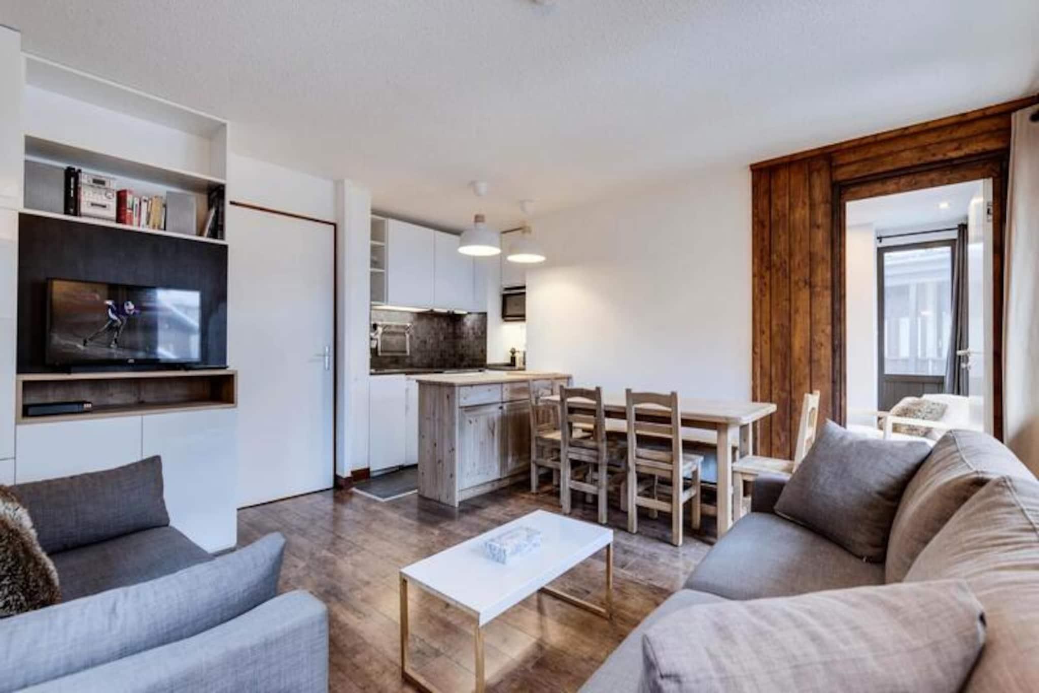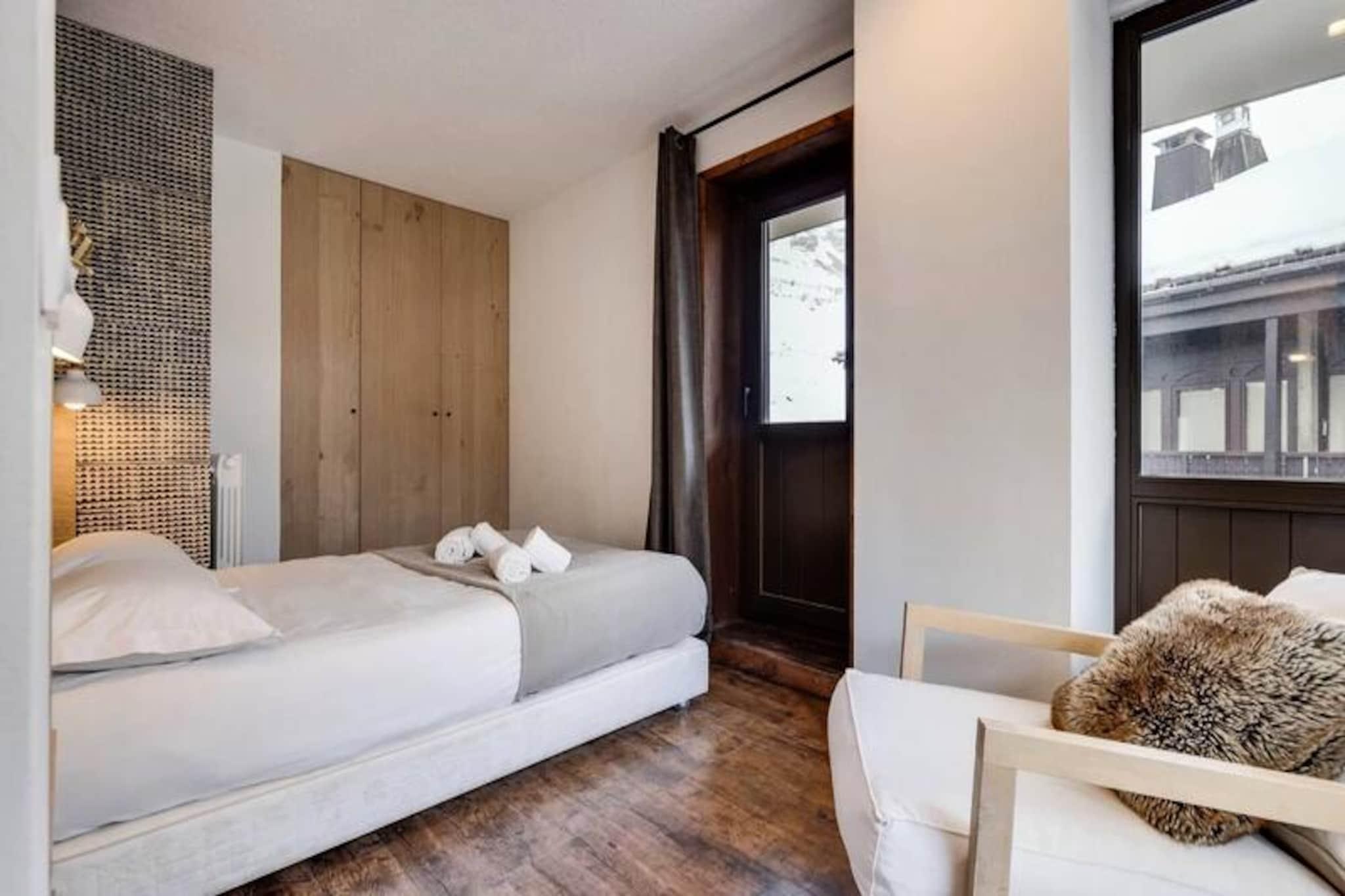 Mitten im Herzen von Val d'Isère, wo alpiner Charme auf modernen Komfort trifft, bietet dieses wunderschön renovierte Apartment einen gemütlichen Rückzugsort für bis zu fünf Gäste. Stellen Sie sich vor, wie Sie mit atemberaubendem Blick nach Süden auf Solaise erwachen und auf Ihrem privaten Balkon die frische Bergluft genießen, bevor Sie zu einem erlebnisreichen Tag aufbrechen. Das im traditionellen savoyischen Stil aus Stein und Holz erbaute Haus verströmt eine warme und einladende Atmosphäre, die perfekt mit der traumhaften Umgebung harmoniert. Ob Sie zum Skifahren, Erkunden oder einfach nur zum Entspannen hier sind – dieses Apartment ist der ideale Ausgangspunkt für Ihren alpinen Urlaub. \n\nIm Inneren erwartet Sie ein durchdacht gestalteter Wohnbereich mit einem komfortablen Wohnzimmer, ausgestattet mit Flachbildfernseher, DVD-Player und Stereoanlage. Die Küche ist komplett mit modernen Geräten ausgestattet, darunter Backofen, Cerankochfeld, Geschirrspüler, Mikrowelle und Nespresso-Maschine – alles, was Sie für die Zubereitung köstlicher Mahlzeiten benötigen. Die Schlafmöglichkeiten umfassen ein Schlafzimmer mit Doppelbett, ein Schlafzimmer mit Etagenbett und Einzelbett sowie ein Badezimmer mit Badewanne und Waschbecken für pure Entspannung. Zusätzliche Annehmlichkeiten wie WLAN, Bettwäsche, Handtücher und eine Zwischenreinigung sind inklusive und machen Ihren Aufenthalt so angenehm wie möglich. \n\nNur wenige Meter von den Skipisten, Geschäften und der französischen Skischule entfernt, ermöglicht Ihnen die strategische Lage des Apartments, in das pulsierende Leben von Val d'Isère einzutauchen. Ob Sie Après-Ski-Drinks im Coin des Amis genießen oder im La Corniche speisen möchten – alles, was Sie brauchen, ist bequem erreichbar. Für Skiverleih bietet der INTERSPORT Front de Neige MATTIS Shop exklusive Preise, damit Sie stilvoll auf die Piste starten können. \n\nDieses Apartment ist mehr als nur eine Unterkunft; es ist Ihr Tor zu unvergesslichen Erinnerungen in einem der renommiertesten Skigebiete der Welt. Mit seiner Mischung aus traditioneller Architektur, modernen Annehmlichkeiten und der unschlagbaren Lage verspricht es ein Urlaubserlebnis, das Ihnen noch lange in Erinnerung bleiben wird.