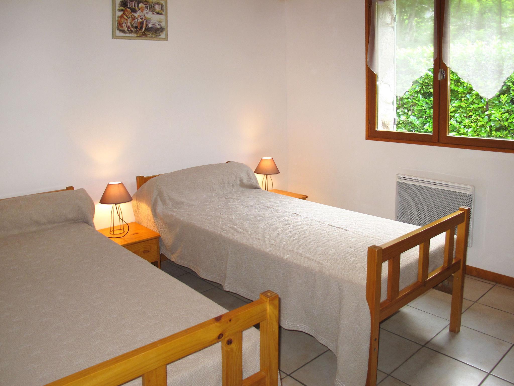"Les Galets", 3-Zimmer-Haus 80 m2. Einfach und zweckmässig eingerichtet: Wohn-/Esszimmer mit offenem Kamin, Esstisch, TV, Radio, CD und Klimaanlage. Ausgang zur Veranda. 1 Zimmer mit 1 franz. Bett (1 x 140 cm, Länge 190 cm). 1 Zimmer mit 2 Betten (90 cm, Länge 190 cm). Offene Küche (Backofen, 4 Flammen, Toaster, Wasserkocher, Mikrowelle, Tiefkühler, elektrische Kaffeemaschine). Dusche, sep. WC. E-Heizung. Terrassenmöbel, Gartengrill, Liegestühle (2). Zur Verfügung: Waschmaschine, Bügeleisen, Kinderhochstuhl, Haartrockner. Bitte beachten: Nichtraucher-Haus. Maximal 1 Haustier/Hund erlaubt.