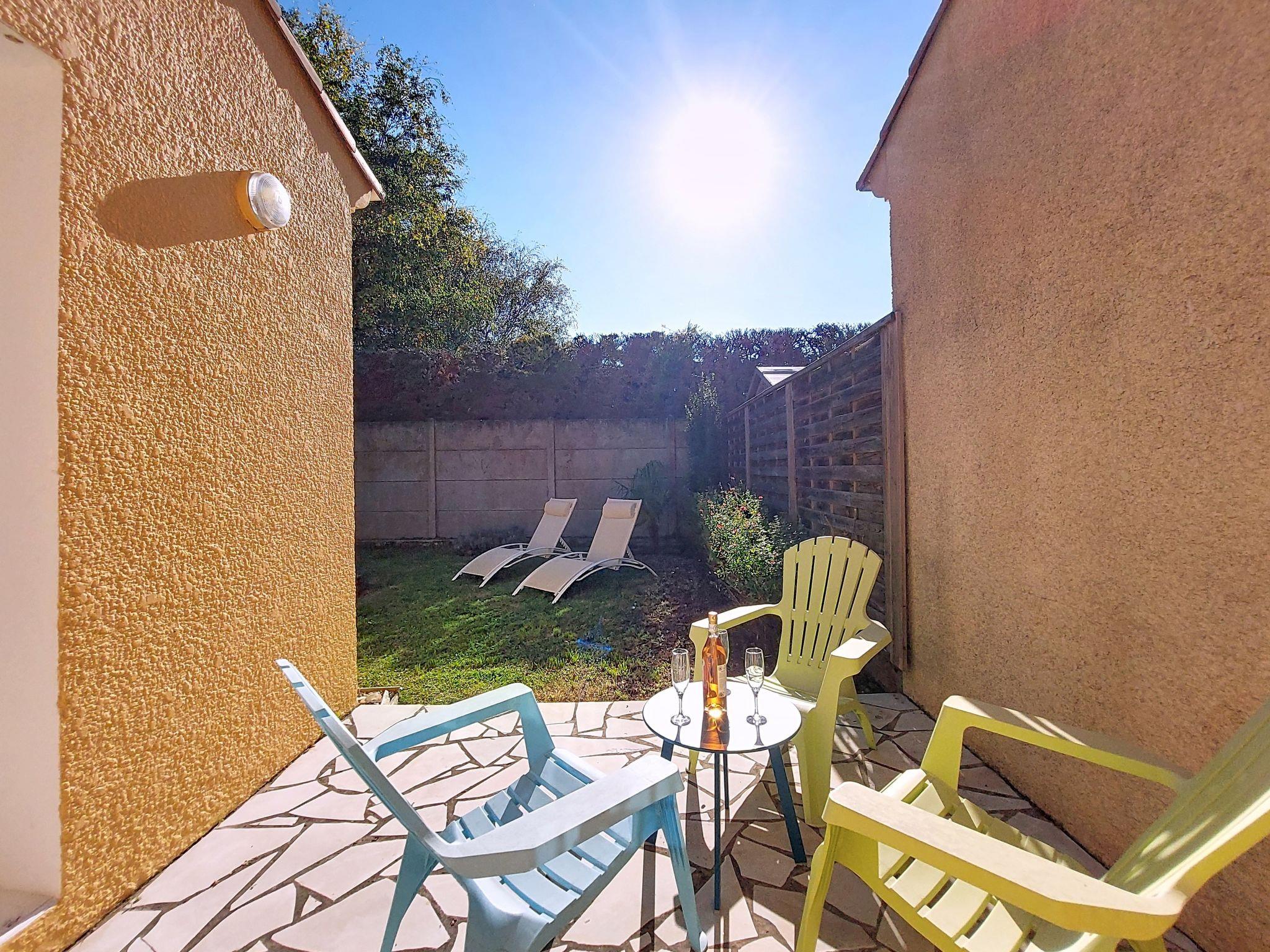 Kleine Residenz "Les Floriales". 4 Häuser in der Residenz. Im Ortszentrum von Vaux sur Mer, exzellente Lage: Absolut zentral und dennoch ruhig, 2 km vom Meer, 2 km vom Strand. Lebensmittelgeschäft 350 m, Supermarkt 1.5 km, Bar, Bäckerei 350 m, Bushaltestelle "Courtot" 350 m, Bahnstation "Royan" 6 km, Sandstrand "Nauzan" 2 km, Hallenbad 6 km, Thermalbad "Thalassothérapie Thalazur Royan" 4 km. Golfplatz (18 Loch) 4 km, Tennis 1 km, Tennishalle 1 km, Radweg 350 m. Nahe gelegene Sehenswürdigkeiten: Tennis et Padel Club de Vaux sur Mer 1 km, Casino Barrière 2.5 km, Palais des Congrès 4 km, Embarcadère Royan - Le Verdon 4.5 km, Marché Central de Royan 3.5 km, Zoo de La Palmyre 11 km. Die Schlüsselübergabe findet bei der Agentur Interhome in Vaux sur Mer statt, 3 km.