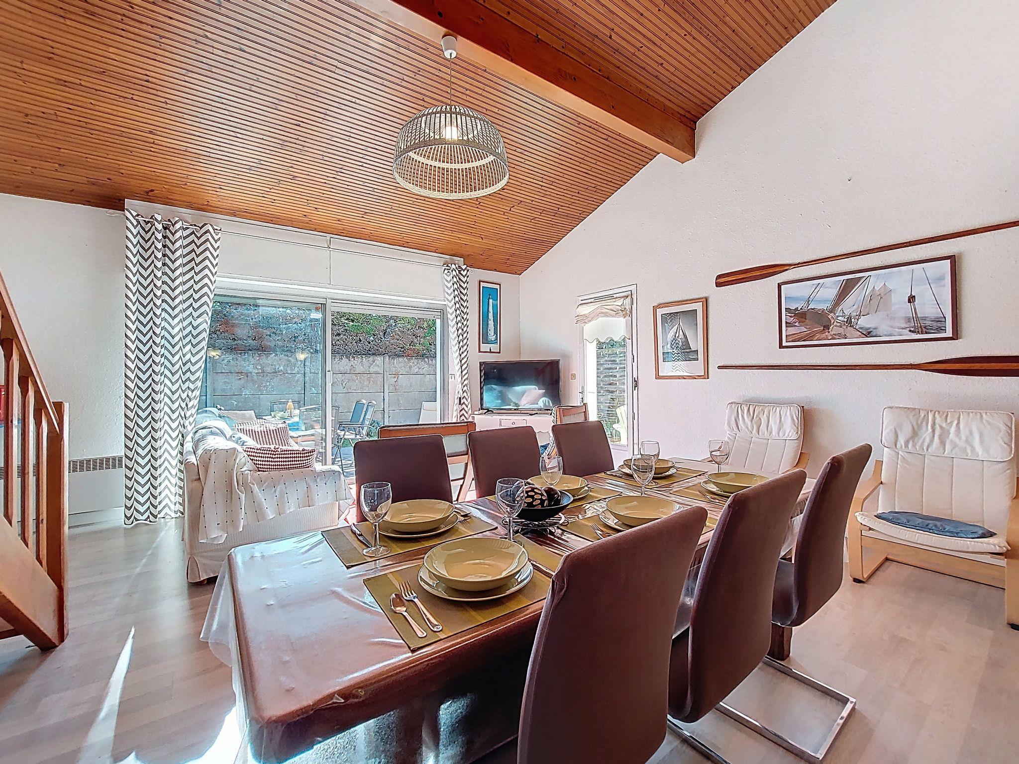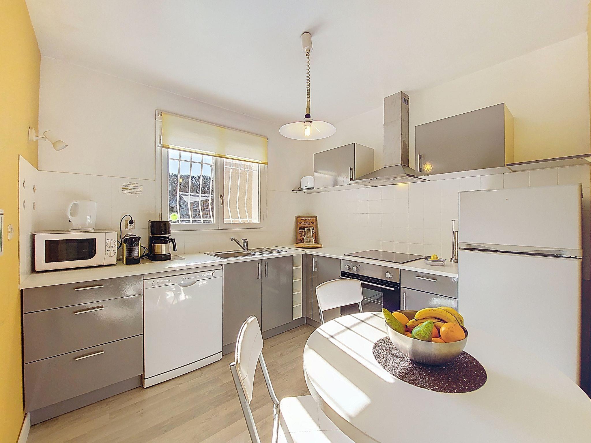 4-Zimmer-Haus 83 m2 auf 2 Stockwerken. Wohn-/Esszimmer mit TV (Flachbildschirm). Ausgang zur Terrasse. 1 Zimmer mit 1 franz. Bett (1 x 180 cm, Länge 190 cm). Küche (Backofen, Geschirrspüler, 3 Induktionskochplatten, Mikrowelle, Tiefkühler, elektrische Kaffeemaschine, Kapseln für die Kaffeemaschine (Magimix) extra). Dusche, sep. WC. E-Heizung. Obergeschoss: 1 Zimmer mit 2 Betten (80 cm, Länge 190 cm). 1 Zimmer mit 1 Doppelbett (2 x 80 cm, Länge 190 cm). 2 Terrassen 10 m2, Garten 250 m2. Terrassenmöbel, Gartengrill. Zur Verfügung: Waschmaschine, Bügeleisen, Kinderhochstuhl, Babybett. Internet (WLAN, extra). Parkplatz (2 Autos). Bitte beachten: Maximal 1 kleines Haustier/Hund erlaubt. Rauchmelder. Inserat einer Privatperson nach Artikel 155, IV, CGI.