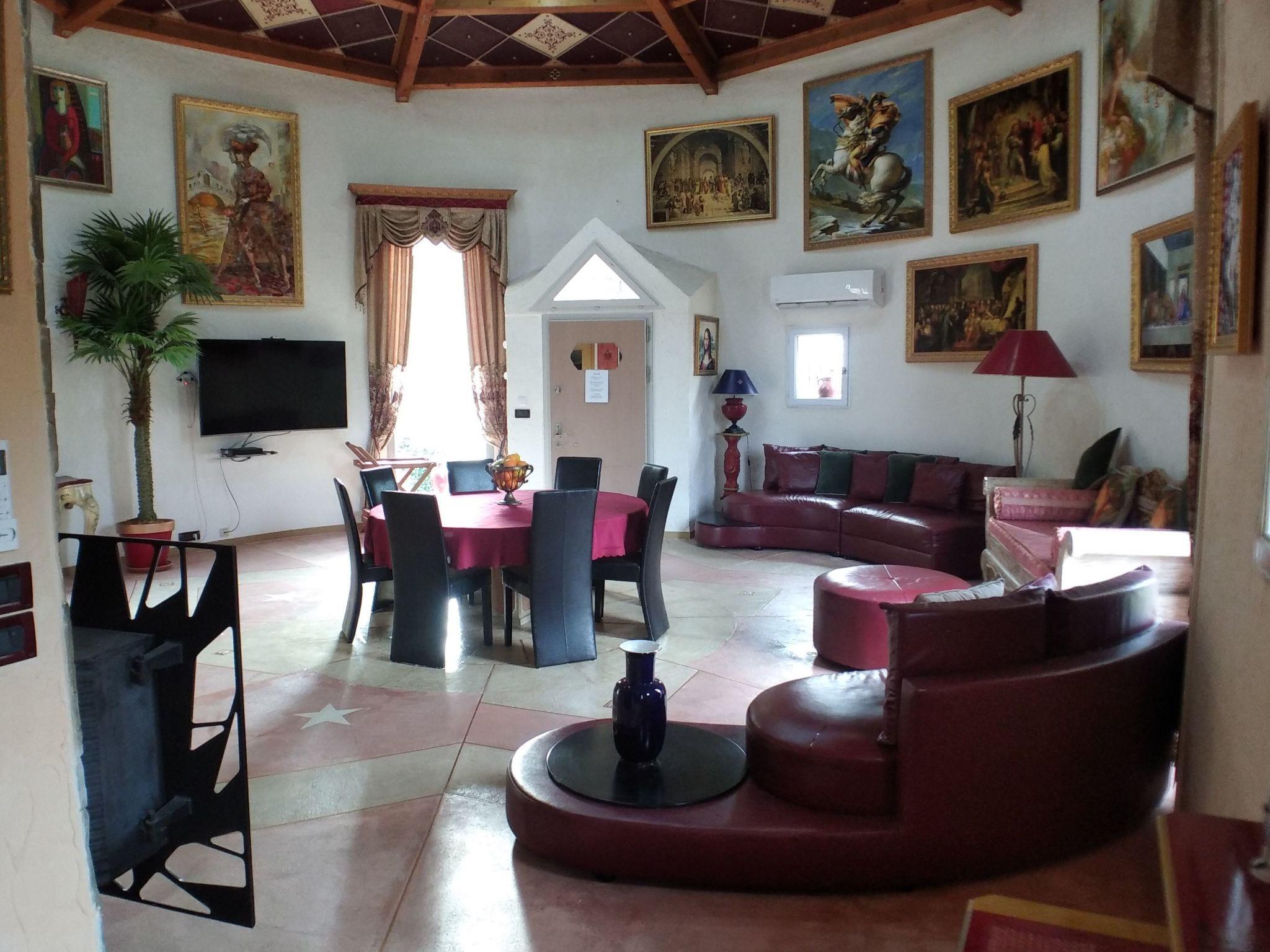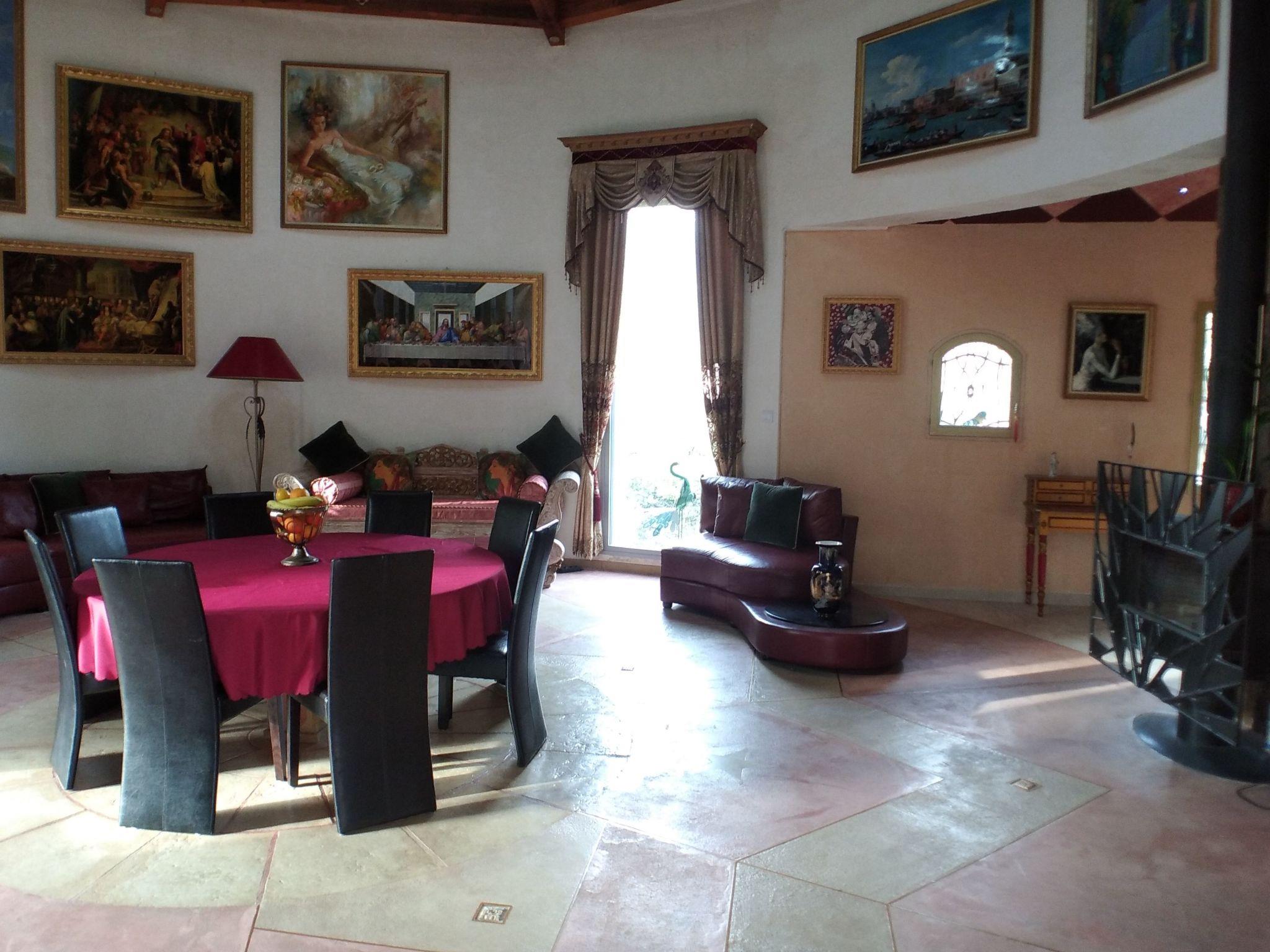 Die Villa besteht aus einem sehr großen Empfangsraum mit Esszimmer. Ein schönes Wohnzimmer mit Holzbalken und Kamin. Eine große Sitzecke mit bequemen Ledersofas bietet Platz für bis zu 10 Personen.