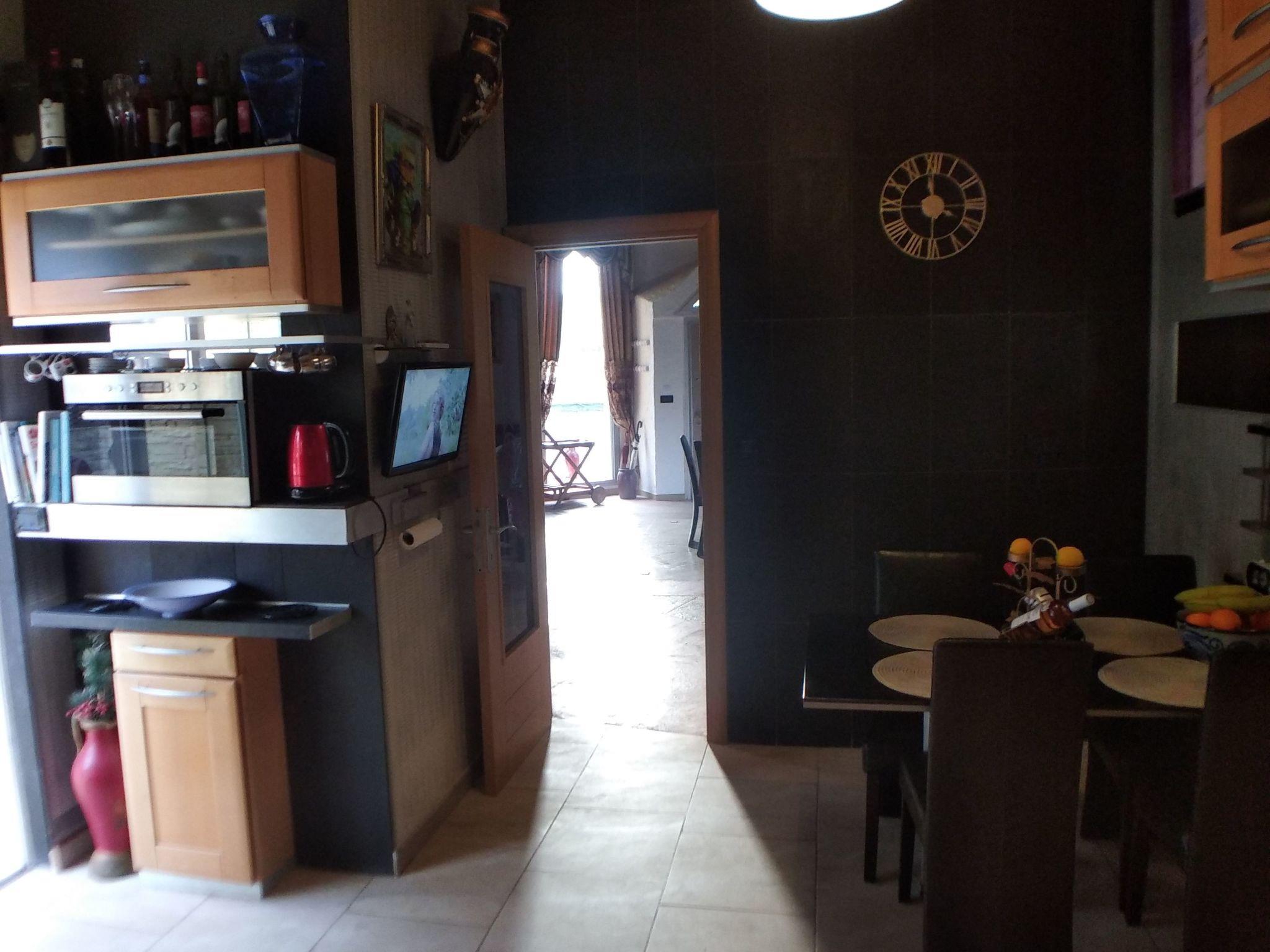 Ein Esszimmer mit Platz für bis zu 8/9 Personen ist ebenfalls vorhanden. Internet/Wi-Fi ist im ganzen Haus verfügbar. Die Küche, die mit einem Tisch und Stühlen für 5 Personen ausgestattet ist, führt direkt auf die Hauptterrasse, wo zwei große Steintische für Frühstück, Mittag- und Abendessen unter dem Sternenhimmel aufgestellt sind. Sie ist mit einem Elektroherd, einem Elektroofen, einer Mikrowelle, einem Geschirrspüler, einem Kühlschrank, einer Kaffeemaschine, einem Toaster, Küchenutensilien, Besteck und Geschirr ausgestattet.