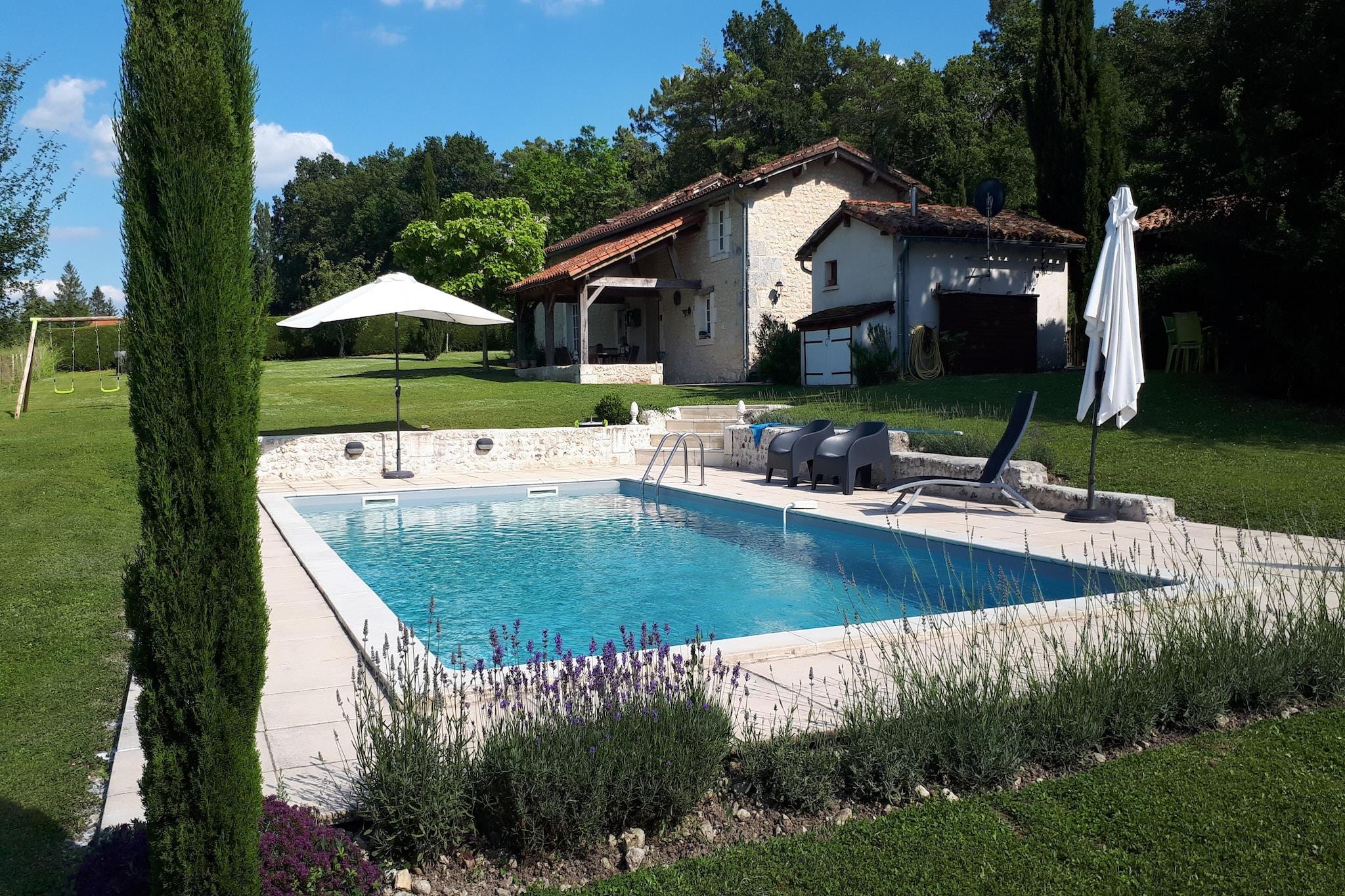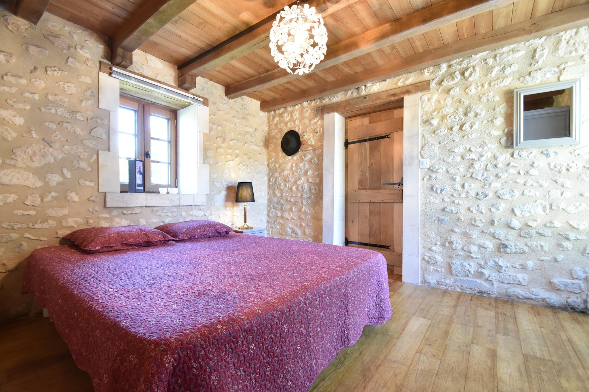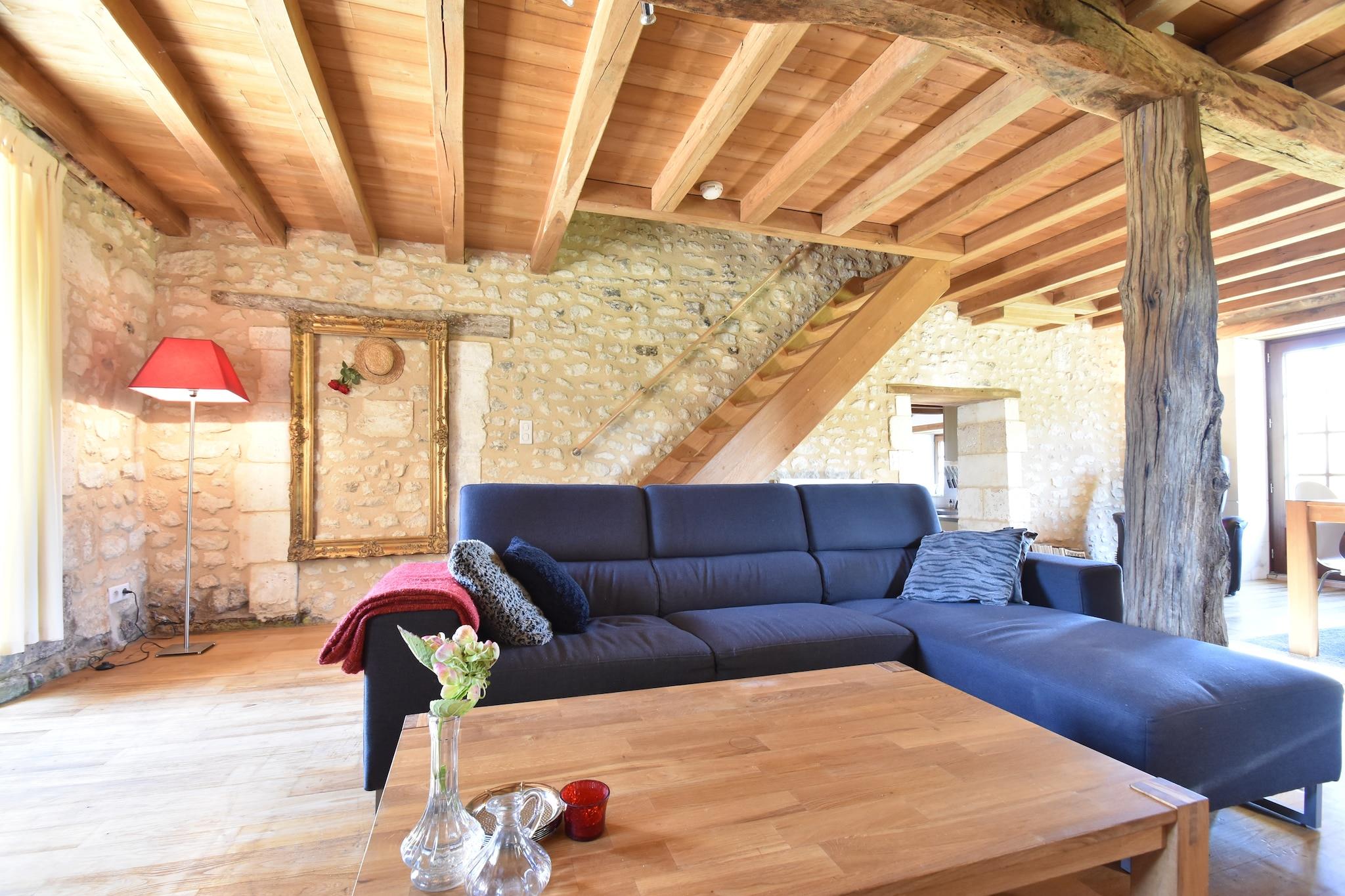 Dieser wunderschön restaurierte ehemalige Bauernhof in der Nähe von Verteillac bietet einen luxuriösen Rückzugsort für bis zu sechs Gäste. Mit originalen Balken und warmen Innenräumen verfügt das Haus über einen privaten Swimmingpool und eine üppige Rasenfläche, die zum Entspannen einlädt. Nur 1 km vom Dorf entfernt, finden Sie in La Cour des Miracles oder L'Escalier bequem frische Baguettes und gemütliche Abendessen. Entdecken Sie nahegelegene Highlights wie den lebhaften Markt von Ribérac, die historischen Kirchen von Cherval und den malerischen See Le Grand Etang de La Jemaye. Kulturliebhaber können die Kathedrale von Périgueux oder die prähistorischen Wunder der Villars-Höhle besuchen. Gartenliebhaber können durch die Gärten des Herrenhauses Eyrignac oder die Gärten von Marqueyssac schlendern. Entspannen Sie nach einem erlebnisreichen Tag unter dem Himmel des Périgord Vert bei einem Grillabend auf der Terrasse oder einem Bad im Pool. Kinder können sich auf der Rasenfläche vergnügen, während Erwachsene in der Bar Brasserie Le Calice einen Drink genießen. Dieses Ferienhaus verbindet rustikalen Charme mit modernem Komfort – ein idealer Rückzugsort im Herzen der Dordogne.