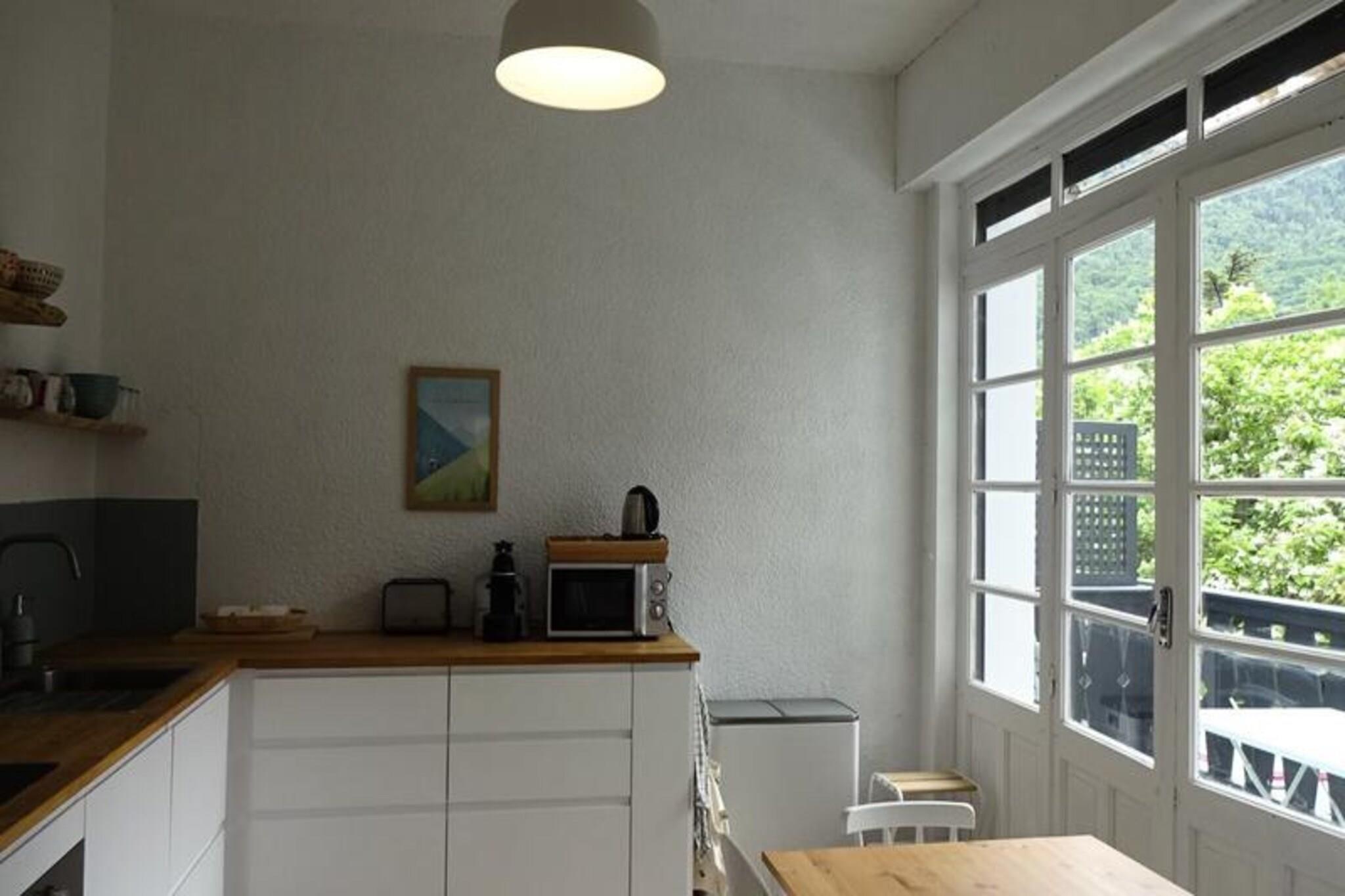 Dieses luxuriöse Apartment befindet sich im ersten Stock der GRAOUES Residence im charmanten Dorf St. Lary. Es bietet einen geräumigen, hellen Wohnbereich mit Kamin und Blick nach Süden. Das Anwesen verfügt über drei gut ausgestattete Schlafzimmer, darunter ein Kinderzimmer mit zwei Etagenbetten, ein Zimmer mit einem 140-cm-Bett und ein weiteres mit einem 160-cm-Bett. Es bietet bequem Platz für bis zu 6 Gäste und ist haustierfreundlich, sodass Ihren pelzigen Begleitern eine einladende Umgebung geboten wird. Kostenloses WLAN ist im Preis inbegriffen und für Ihren Komfort steht eine private geschlossene Garage zur Verfügung. Die Wohnung ist ideal gelegen, um die malerische Schönheit von St. Lary zu erkunden. In fußläufiger Entfernung finden Sie eine Vielzahl lokaler Cafés, Restaurants und Märkte, die traditionelle französische Köstlichkeiten und frische Produkte anbieten. Outdoor-Enthusiasten können die nahegelegenen Wanderwege nutzen, während die Skipisten des Dorfes Winteraktivitäten für alle Altersgruppen bieten, sodass dieser Ort das ganze Jahr über ideal für Freizeitaktivitäten ist. Das Apartment verfügt über eine voll ausgestattete Küche mit modernen Geräten, darunter Induktionskochfeldern, einem traditionellen Backofen, einem Geschirrspüler, einer Mikrowelle und einem Kühlschrank mit Gefrierfach. Ein geräumiges Badezimmer mit Waschmaschine sowie eine separate Toilette sorgen für zusätzlichen Komfort. Balkone sowohl vom Wohnbereich als auch vom Kinderzimmer bieten mit Gartenmöbeln einen entspannenden Ort, an dem Sie wunderbar die Sonne genießen können.