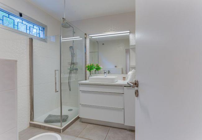 Es besteht aus einer voll ausgestatteten unabhängigen Küche, einem Wohn- und Esszimmer, das auf eine möblierte Terrasse mit Essbereich und Meerblick führt, einem Schlafzimmer mit einem Queen-Size-Bett und einem weiteren Schlafzimmer mit einem Schlafsofa und einem Einzelbett, einem Badezimmer mit Dusche und 2 Toiletten.