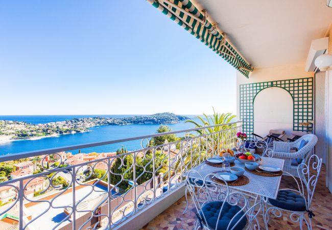 Genießen Sie eine ideal ausgerichtete Terrasse mit Blick auf die Stadt und Meerblick. Herzschlag garantiert! Der Vorteil dieser Wohnung ist ihre sehr hübsche Terrasse, von der aus Sie einen außergewöhnlichen Blick auf die Bucht von Villefranche Sur Mer bewundern können.