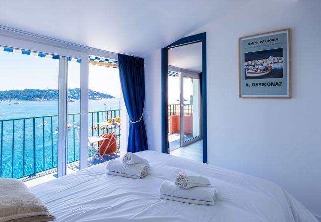 Im 2. Stock ohne Aufzug liegt die Ferienwohnung MAISON BLEUE, die vollständig klimatisiert und geschmackvoll renoviert wurde. Sie befindet sich im Herzen der Altstadt und blickt auf die Bucht von Villefranche. Ihr Meerblick ist atemberaubend!