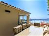 Wohn-/Esszimmer mit Zugang zu einer wunderschönen Terrasse und Blick auf das Meer und den Pool