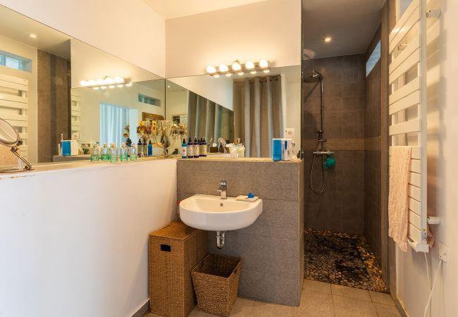 Es verfügt über Gartenmöbel, 50 m² Dachterrasse, Waschmaschine, Grill, Bügeleisen, Internetzugang (WLAN) und Klimaanlage in der gesamten Unterkunft.