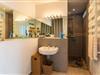 Ein Schlafzimmer mit eigenem Badezimmer mit Toilette und Dusche