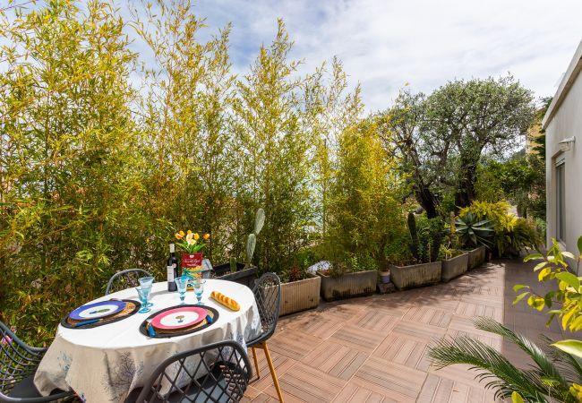 Die Villa ist geschmackvoll eingerichtet und komplett ausgestattet für 2 Personen, Dachterrasse mit Meer- und Gartenblick.