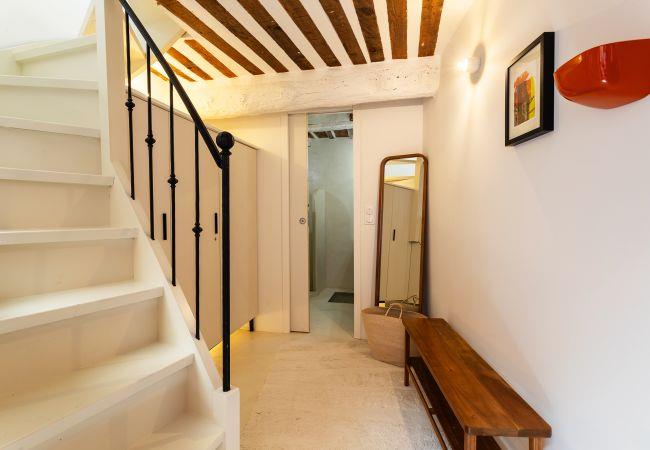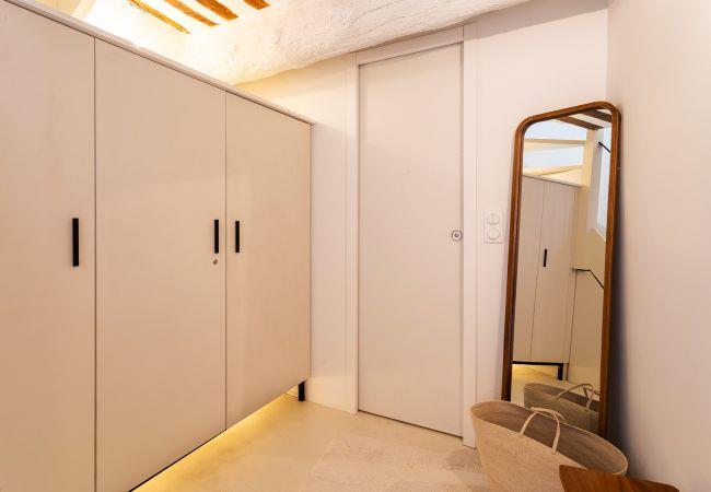 Komplett renoviert in einem puristischen Stil und einem zeitgenössischen Design (geschliffener Beton auf allen Böden, HAY- und FERMOB-Möbel).