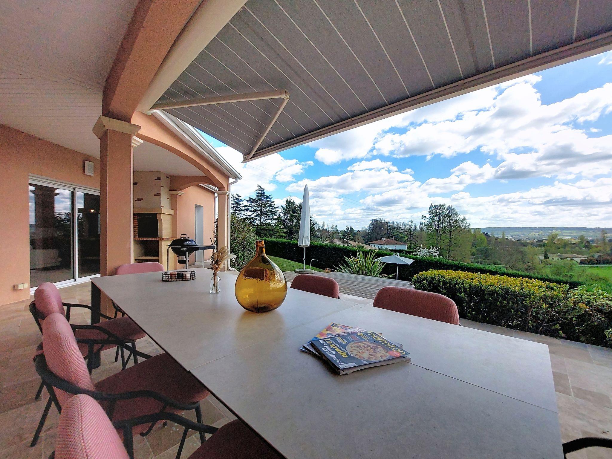 Schöne Villa "Monfabes", auf 2 Stockwerken. Oberhalb von Villeneuve sur lot, am Ortsrand, ruhige, erhöhte Lage, in einer Sackgasse. Zur Alleinbenutzung: Grundstück 3'500 m2 (eingezäunt), gepflegter Garten, Schwimmbad eckig (10 x 5 m, 100 - 150 cm tief, saisonale Verfügbarkeit: 01.Jun. - 30.Sep.) mit Alarmanlage und Salzelektrolyse-Reinigungssystem. Aussendusche, Parkplatz (für 3 Autos). Lebensmittelgeschäft 1.5 km, Supermarkt 2.6 km, Restaurant 1.5 km, Bäckerei 1.5 km, Bushaltestelle 1.5 km, Bahnstation "les Pennes d'Agennais" 13 km. Golfplatz (18 Loch) 9.3 km, Segelschule 16 km, Reitstall 2.5 km. Nahe gelegene Sehenswürdigkeiten: Agen 34 km, Cahors 70 km, Bergerac 56 km, Musée de Gajac 3 km, Park Walygator 42 km. Der Besitzer akzeptiert keine Jugendgruppen. Die Nachbarschaft ist sehr lärmempfindlich. Ruhe und gutes Benehmen wird erwartet.
