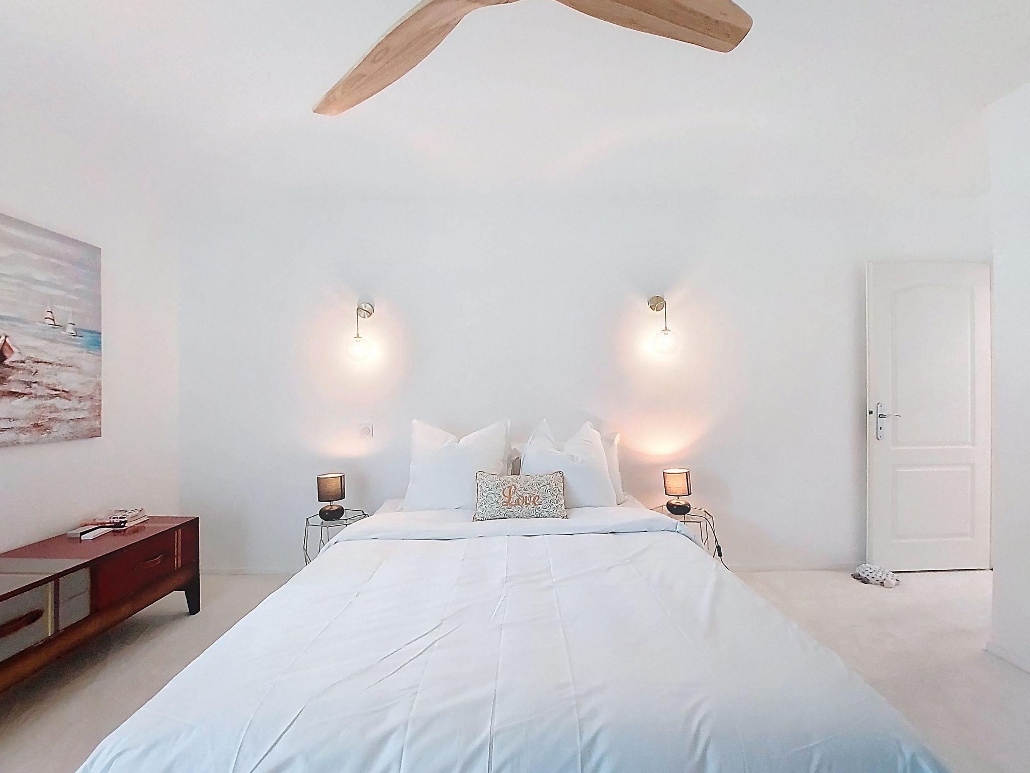 6-Zimmer-Villa 176 m2 auf 3 Stockwerken. Sehr schön und modern eingerichtet: Wohn-/Esszimmer mit TV (Flachbildschirm). Ausgang zur Terrasse. 2 Zimmer, jedes Zimmer mit 1 franz. Bett (160 cm, Länge 200 cm). Grosse Küche (Backofen, 4 Induktionskochplatten, Toaster, Wasserkocher, Mikrowelle, Tiefkühler, elektrische Kaffeemaschine, Kapseln für die Kaffeemaschine (Nespresso) extra). Bad, Dusche, sep. WC. Unteres Geschoss: Spielzimmer mit TV (Flachbildschirm). Obergeschoss: 1 Zimmer mit 1 franz. Bett (160 cm, Länge 200 cm). 2 Zimmer, jedes Zimmer mit 1 franz. Bett (140 cm, Länge 200 cm). Dusche, sep. WC. Grosse Terrasse 65 m2 teilweise überdacht, Südlage. Terrassenmöbel, Gartengrill. Zur Verfügung: Waschmaschine, Wäschetrockner, Bügeleisen, Kinderhochstuhl, Babybett bis 2 Jahre. Internet (WLAN, gratis). Bitte beachten: Nichtraucher-Haus. Maximal 1 Haustier/Hund erlaubt. Rauchmelder. Inserat einer Privatperson nach Artikel 155, IV, CGI.