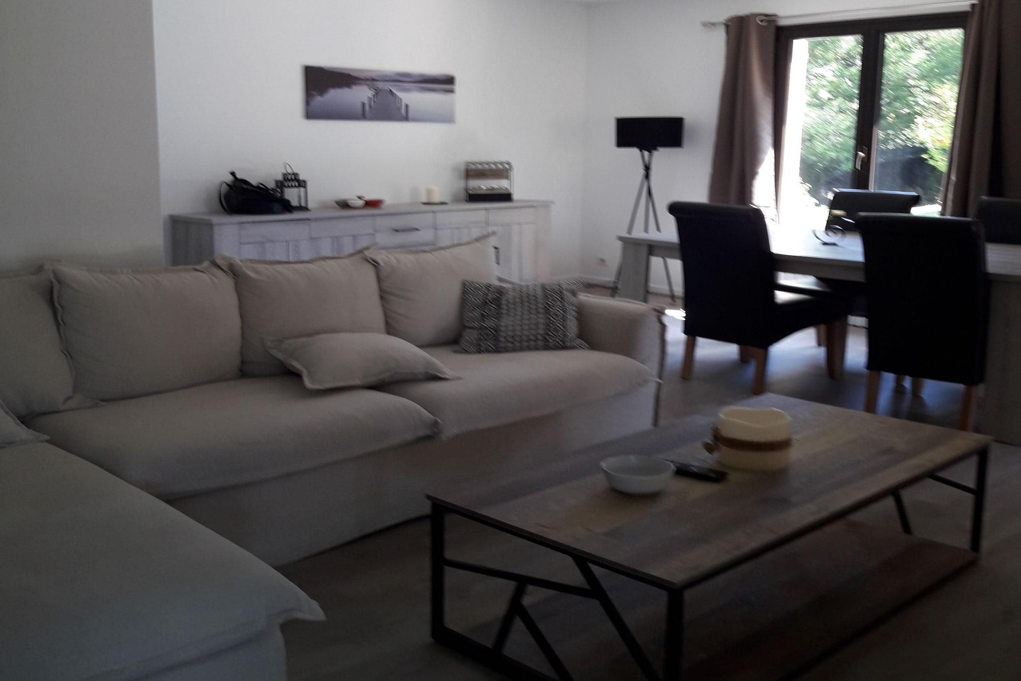 Parterre: (Aufenthaltsraum(TV(Flatscreen, smart TV), Kaminofen, Sitzecke), Esszimmer(Esstisch), Küche(Wasserkocher, Kochherd(4 Kochplatten, Induktion), Espressomaschine, Backofen, Mikrowelle, Spülmaschine, Kühl-/Gefrierkombination), Schlafzimmer(Doppelbett, Babybett), Schlafzimmer(Doppelbett), Schlafzimmer(Doppelbett), Schlafzimmer(Doppelbett), Badezimmer(Dusche, Waschbecken), Badezimmer(Dusche, Waschbecken), Toilette, Waschraum(Trockner, Waschmaschine, Bügeleisen), Veranda(Esstisch, Kaminofen, Sitzecke), Klimaanlage) Terrasse, Garten(1,5 hm2), Liegen, Grill, Parkplatz, Pool(alleinige Nutzung, im Garten, überdacht, 15 x 6 m.)