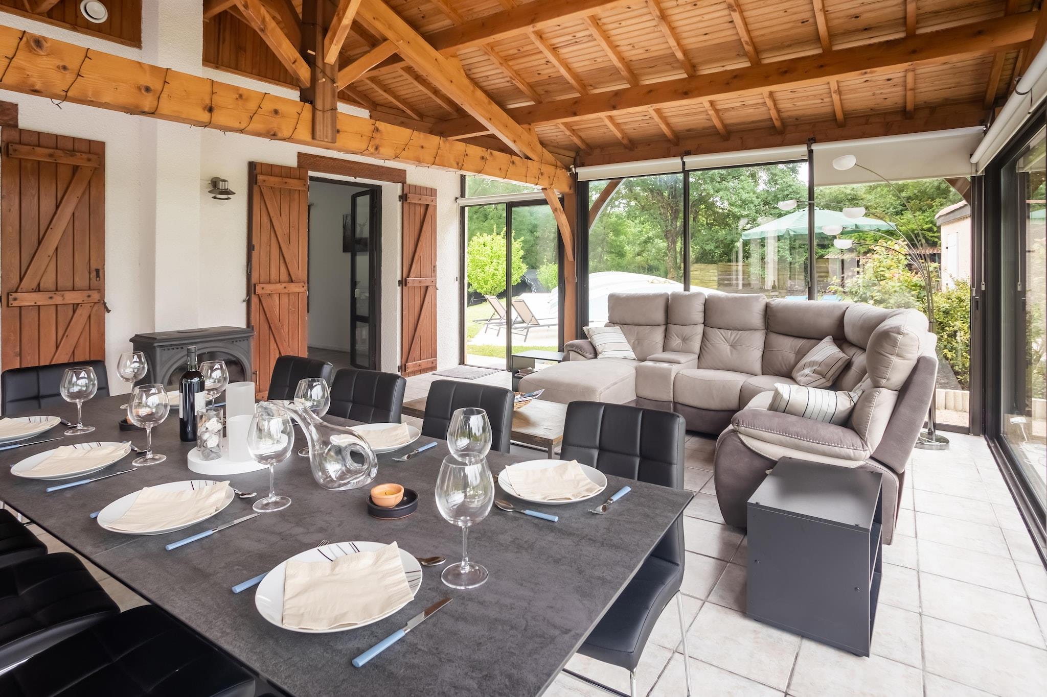 Gönnen Sie sich einen erholsamen Urlaub in dieser geräumigen Villa mit 4 Schlafzimmern in Villeneuve-sur-Lot, eingebettet im Herzen der Dordogne. Das Anwesen eignet sich perfekt für einen Familienurlaub und verfügt über einen überdachten privaten Pool (geöffnet von Mai bis Mitte September), einen umzäunten Garten und eine sonnige Terrasse, die sich ideal zum Grillen und Entspannen im Freien eignet. Im Innenbereich bietet die Villa 2 Badezimmer, 2 Toiletten, eine 35 m² große Veranda, eine voll ausgestattete Küche, eine Waschküche, ein Wohnzimmer und einen Essbereich. Machen Sie es sich vor dem Kamin gemütlich oder entspannen Sie auf den Sonnenliegen und genießen Sie die ruhige Umgebung. WLAN und ein privater Parkplatz sorgen für zusätzlichen Komfort. Entdecken Sie nahegelegene Juwelen wie Cahors, Bergerac, Monbazillac, Agen und Monflanquin, wo Gastronomie, Wein und Geschichte im Mittelpunkt stehen. Der nur 5 km entfernte 18-Loch-Golfplatz ist ideal für Golfbegeisterte, und die Region bietet malerische Wanderwege durch Weinberge und mittelalterliche Dörfer. Der Bahnhof ist nur 4 km entfernt, sodass Sie bequem und stressfrei anreisen können. Ob Sie einen lokalen Wein genießen oder im Pool entspannen - diese Villa bietet die perfekte Mischung aus Komfort, Kultur und ländlichem Charme.