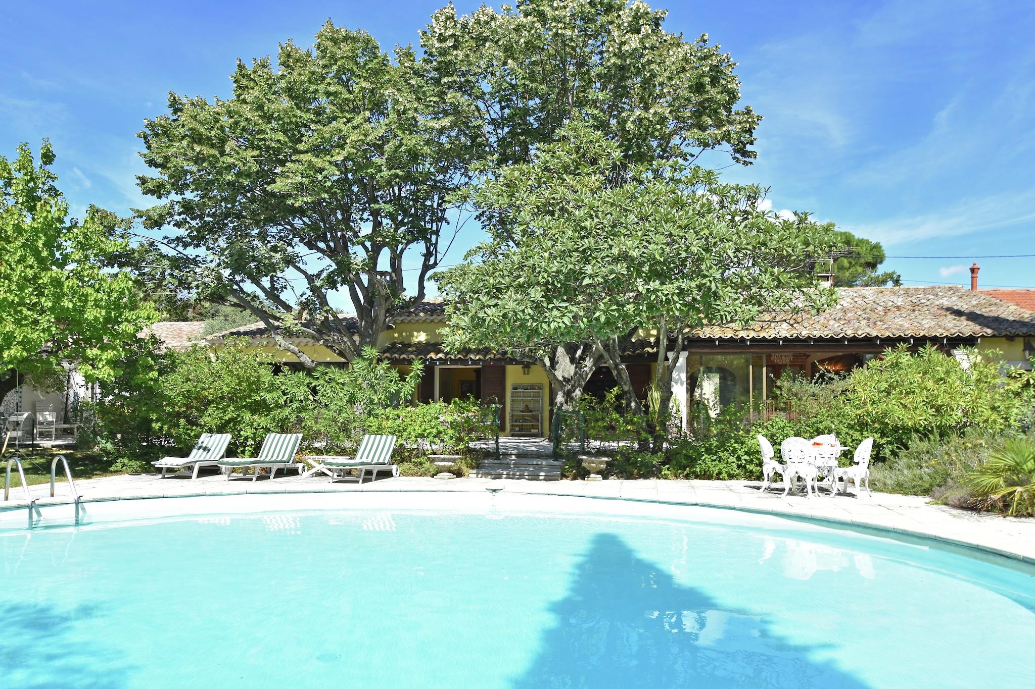Entdecken Sie dieses schöne Ferienhaus mit privatem Pool, das auf einem bewaldeten Grundstück nur wenige Minuten von Avignon entfernt liegt. Dieses einstöckige Haus befindet sich in einem ruhigen Wohngebiet und verfügt über einen schönen, vollständig umzäunten Garten. Ideal für Familien oder Freunde. Erkunden Sie die nahe gelegene Camargue und die Strände, oder fahren Sie auf der berühmten Route des Vins in den Luberon, um malerische Dörfer zu besuchen. Ein Besuch des Papstpalastes, der Jardins du Fort de St. André, der Ile de la Barthelasse und des Pont du Gard (25 km entfernt) ist ebenfalls lohnenswert. Das Anwesen bietet seinen Gästen viel Privatsphäre und es ist unmöglich, sich hier zu langweilen. Sie finden hier einen Spielplatz, Fahrräder, eine Schaukel, ein Sprungbrett und Poolspielzeug. Die Außenküche geht in den Garten über und das Haus ist elegant eingerichtet. Das helle Wohnzimmer ist mit einem Billardtisch ausgestattet, und auf den schattigen Terrassen können Sie sich in aller Ruhe mit einem guten Buch entspannen. Jeden Tag zwischen 6 und 8 Uhr werden die Außenanlagen sehr diskret gepflegt.