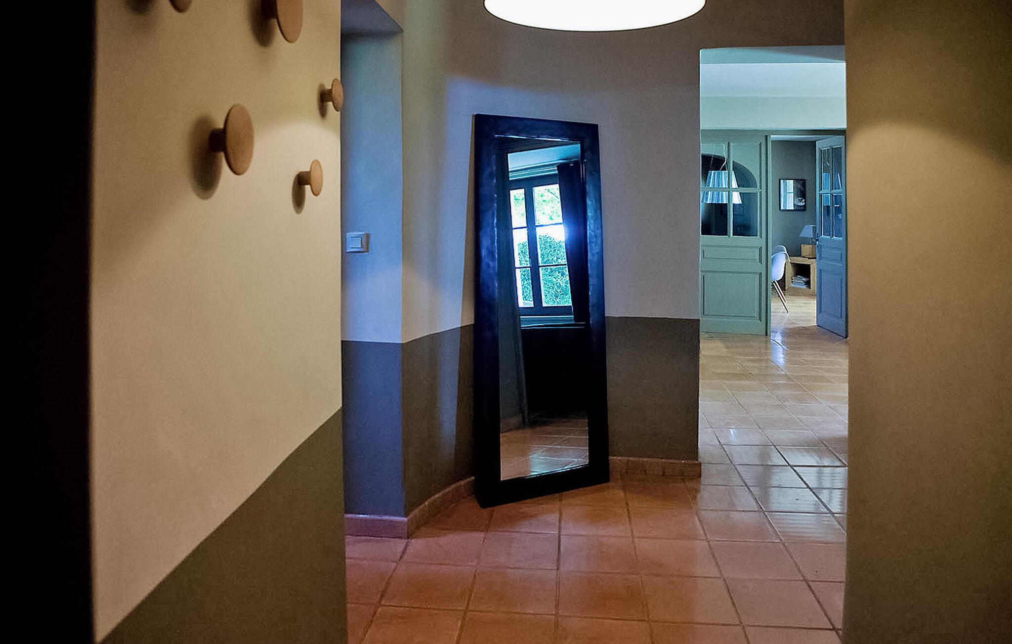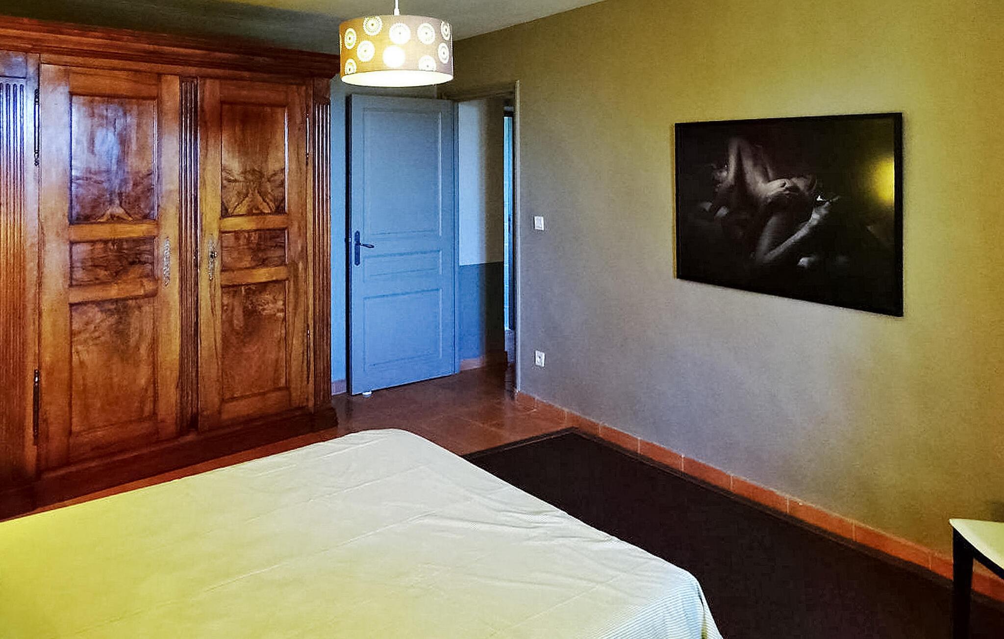 Dieses geräumige Bauernhaus, umgeben von malerischen Weinbergen und mit Blick auf die Dentelles de Montmirail, bietet einen idyllischen Rückzugsort in Violès, in der Nähe von Gigondas, Vacqueyras, Sablet und Séguret. Diese Unterkunft bietet eine einladende Atmosphäre, einen beheizten Privatpool und Einkaufsmöglichkeiten in nur 3 km Entfernung. Das Bauernhaus verfügt über ein gut ausgestattetes Erdgeschoss. Die Küche ist mit modernen Annehmlichkeiten ausgestattet und öffnet sich zur Terrasse mit malerischer Aussicht auf die Weinberge. Vom Esszimmer gelangt man auch auf die Terrasse. Ein klimatisiertes Wohnzimmer bietet einen komfortablen Raum, während zwei der Schlafzimmer diese Ebene vervollständigen. Das verbleibende Schlafzimmer befindet sich im ersten Stock. Zu den Außenanlagen gehören ausgedehnte umzäunte Grundstücke und angrenzende Weinberge. Ein elektrisches Eingangstor gewährt Zugang zu außergewöhnlichen Ausblicken auf die Dentelles de Montmirail. Eine schattige Terrasse mit Pergola bietet einen herrlichen Platz. Der private Pool ist 11 x 5,5 m groß und von April bis Oktober beheizt und durch eine Sicherheitsabdeckung gesichert. Das Bauernhaus liegt 3 km vom Dorf und den Geschäften entfernt: Bäckerei, Lebensmittelgeschäft, Post, Restaurants. Violes ist ein kleines Weindorf mit den Weinen „Côtes du Rhône“. In der Nähe können Sie weitere Weindörfer besuchen: Cairanne, Sablet, Séguret, Beaumes von Venedig, Gigondas... Vaison la Romaine, 16 km, bietet historische Denkmäler und römische Ruinen. Die Stadt Orange, 17 km entfernt, berühmt für ihr antikes Theater. Genießen Sie Ihren Urlaub im Vaucluse in der Provence. Bitte beachten Sie, dass das Bauernhaus auf einem bewirtschafteten Weinberg liegt. Im Frühling werden die Weinberge alle zwei Wochen behandelt, gefolgt von der manuellen Pflege von Juni bis September und der manuellen Ernte im September. Im Januar und Februar erfolgt der Rebschnitt.