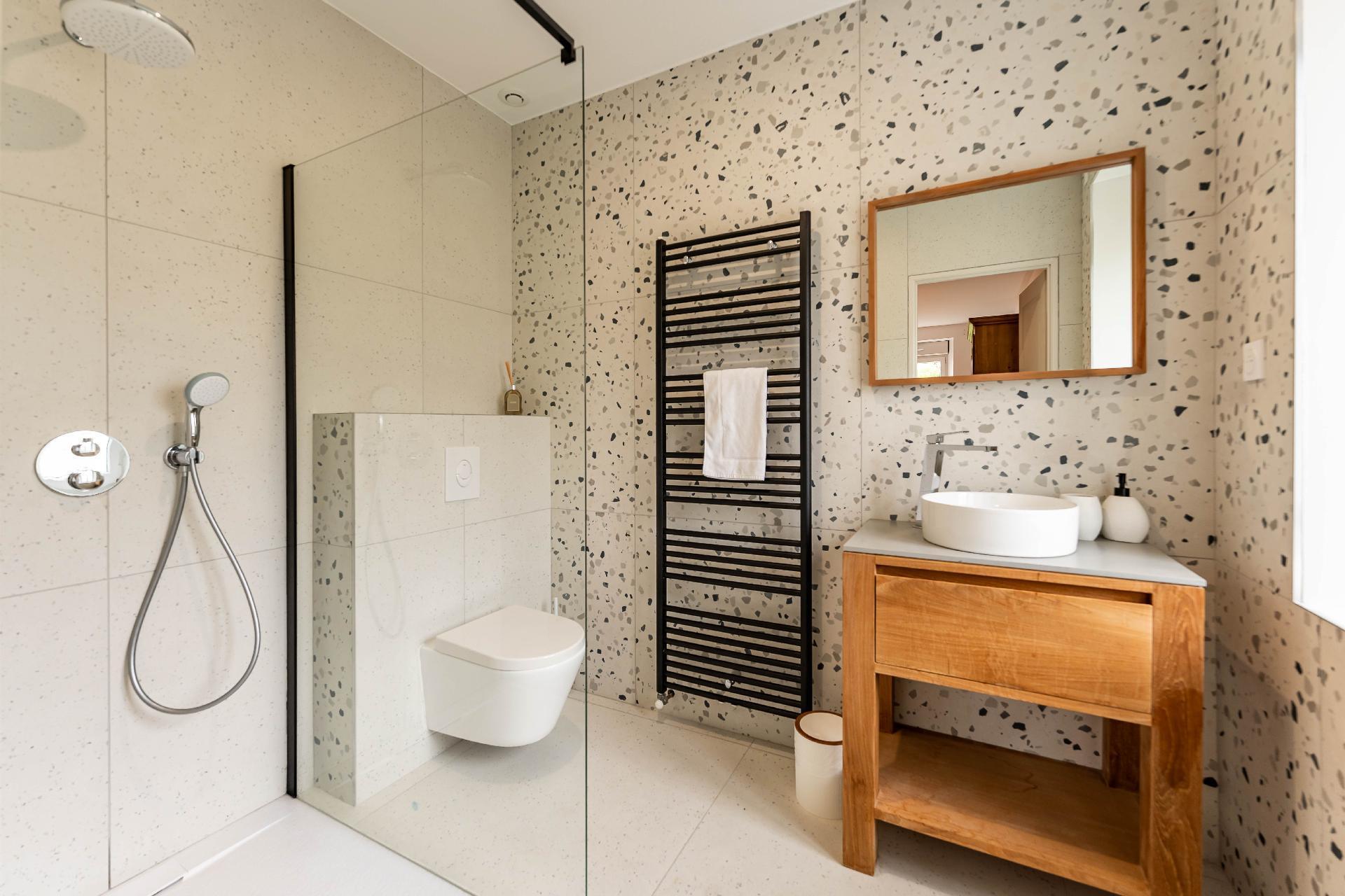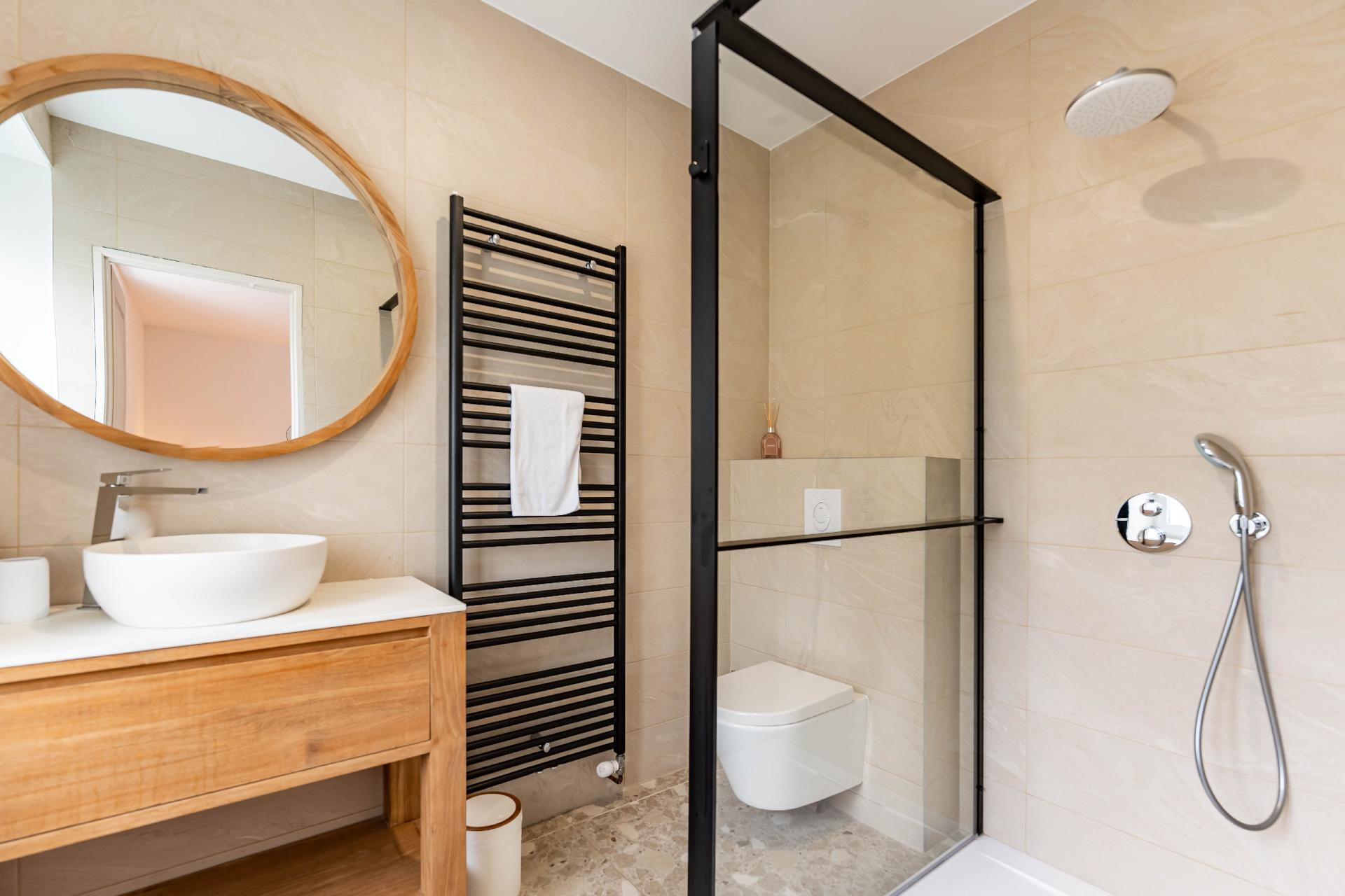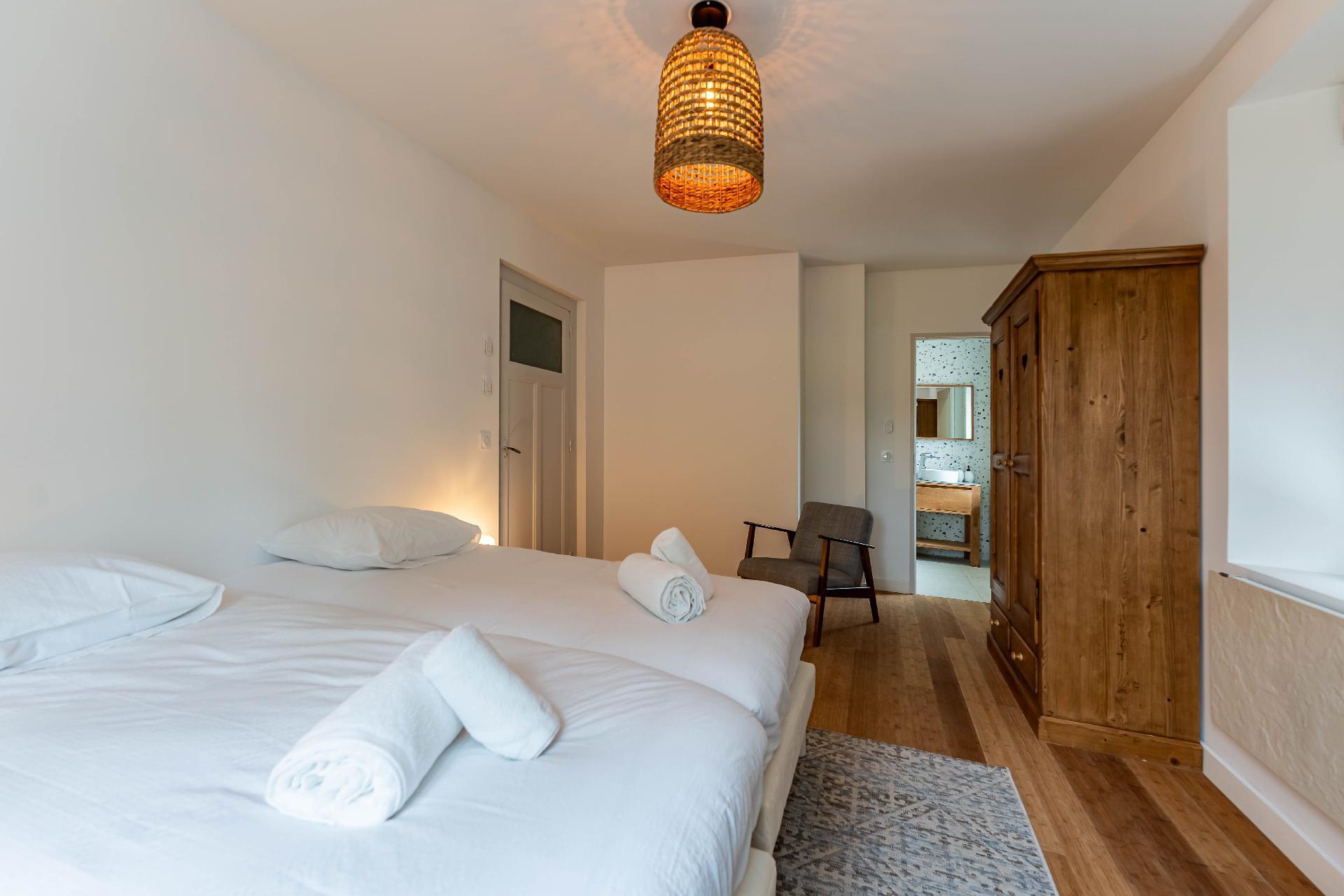 Das Haus ist so ausgestattet, dass es alle Ihre Bedürfnisse erfüllt, wobei dem Wohlbefinden und der Bequemlichkeit der Gäste besondere Aufmerksamkeit gewidmet wird. Jedes Zimmer verfügt über ein angrenzendes Badezimmer, was absolute Privatsphäre und persönlichen Komfort ermöglicht. Das Vorhandensein von Annehmlichkeiten wie einer Waschmaschine, einem Trockner, einem Induktionskochfeld sowie Kaffeeoptionen mit einer Filter- und einer Pad-Kaffeemaschine sorgen für eine Erleichterung des täglichen Lebens. Für entspannende Momente stehen Ihnen ein vernetzter Fernseher sowie Spielmöglichkeiten wie Tischfußball und Tischtennis zur Verfügung.