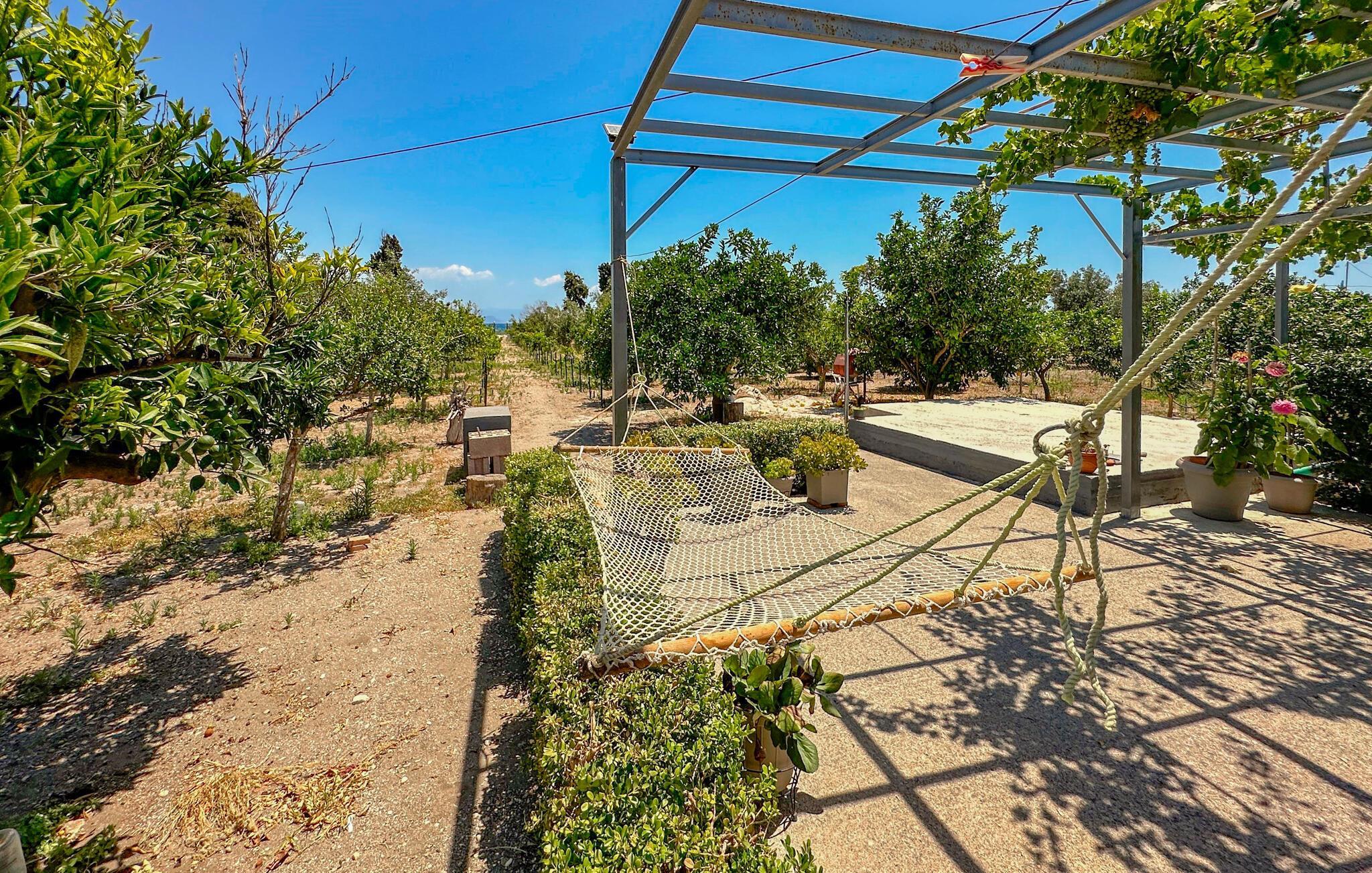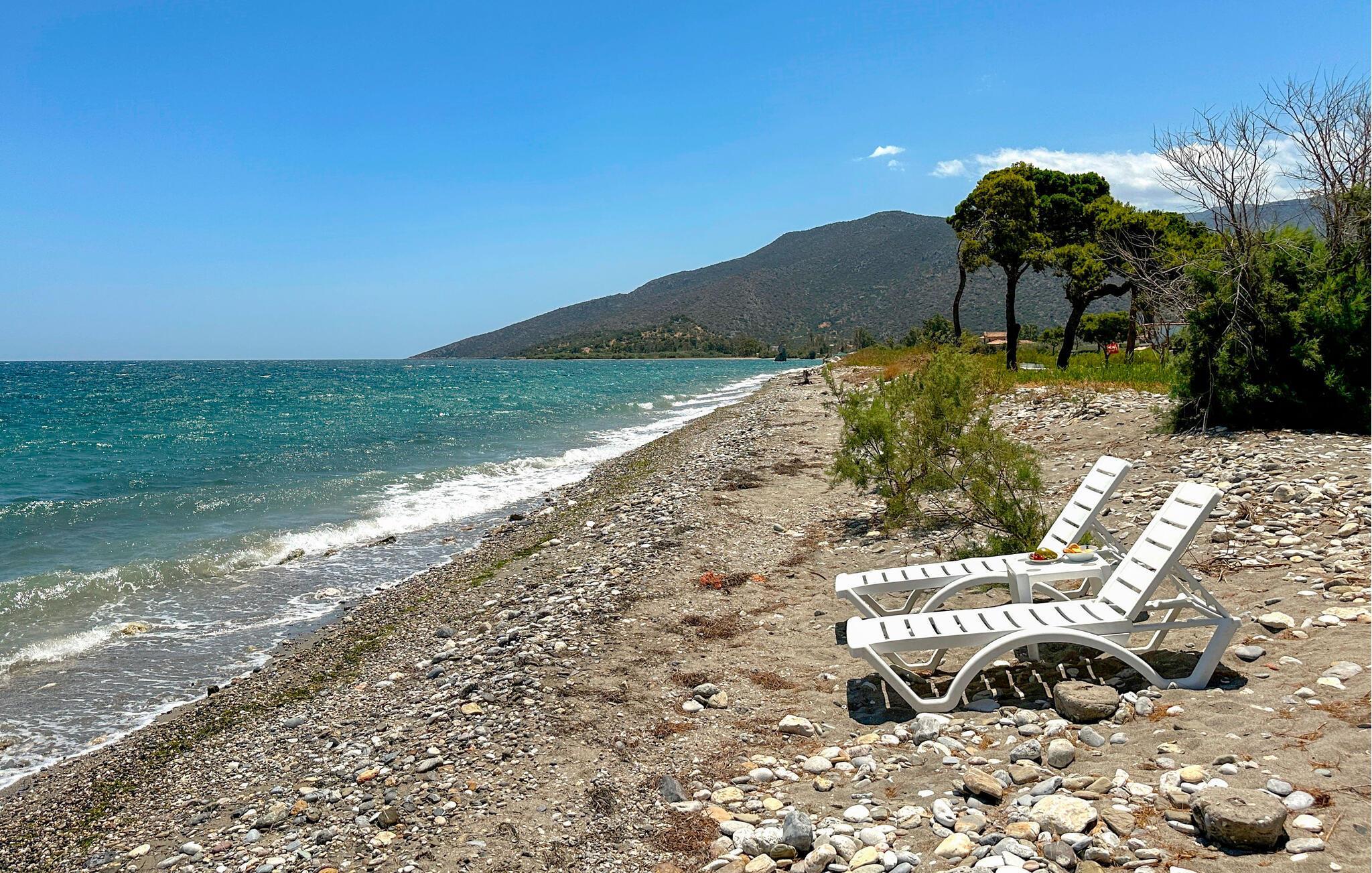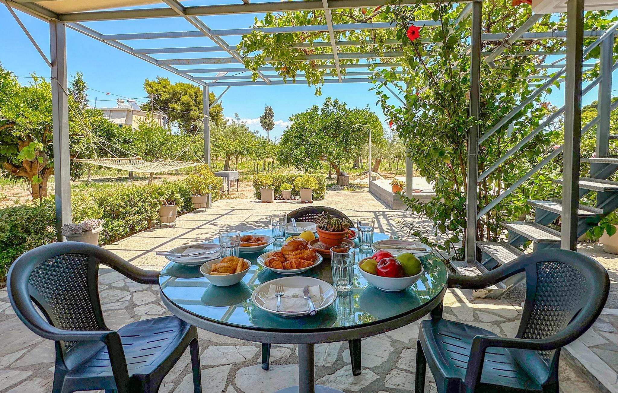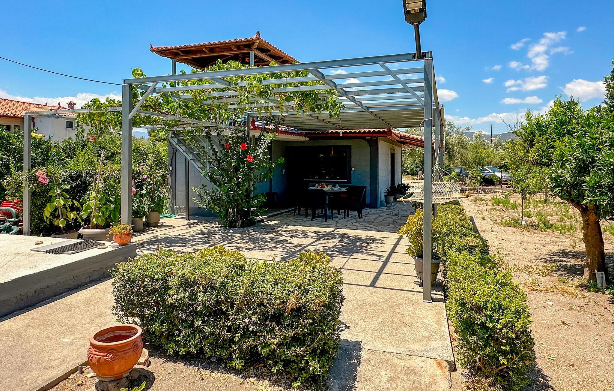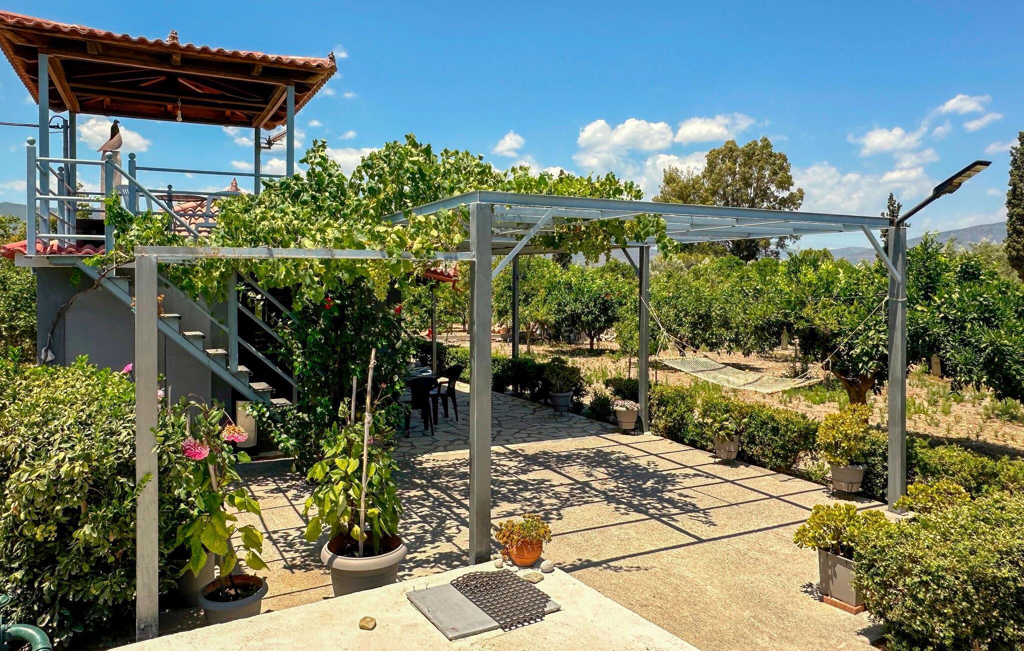 Gelegen in Heronisis in der Region um Agios Andreas empfängt Sie dieses Ferienhäuschen auf einem 8 ha großen Grundstück mit Oliven- und Granatapfelbäumen, Gemüsegarten sowie einem kleinen Gebäude mit Hühnern und Tauben. Von den beiden Schlafzimmern des Hauses ist das eine mit einem Doppelbett ausgestattet, das andere mit einem Einzelbett. Im Wohnzimmer mit einer offenen und gut ausgestatteten Küche umgeben von Blumen und überdachten Veranden steht zusätzlich eine Schlafcouch für eine Person. Der schöne Garten erstreckt sich bis zum teilweise sandigen, teilweise steinigen Strand. Agios Andreas ist ein ruhiges Dorf einige Kilometer südlich von Paralio Astros, das zur Gemeinde Kynouria gehört und mit einem Hafen mit Verbindung nach Astros Arcadia aufwartet. Profitieren Sie von den schönen Stränden und besuchen Sie die mittelalterliche Festung in den Anhöhen der Halbinsel. Empfehlenswert sind ebenfalls das archäologische Museum von Astros sowie die vielen lokalen Tavernen, um die griechische Küche kennenzulernen.