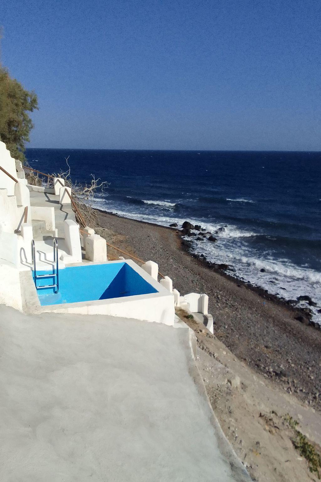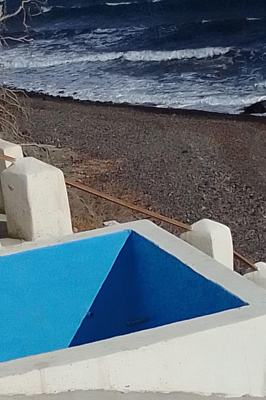 -Geschuetzte Landschaft ausgezeichnet von der UNESO-Lavastraende-Wanderwege hoch zur Caldera (1km Entfernung)-Naeste Ortschaft Vorvoulos 1,5km-Privater Strand 6 Meter-Restaurants und Supermaerkte 3km-Ort Oia, 6km-Ort Immerovigli, 6km-Ausgrabungsstaedte Akrotiri, 15km-Hauptstadt Fira, 6km