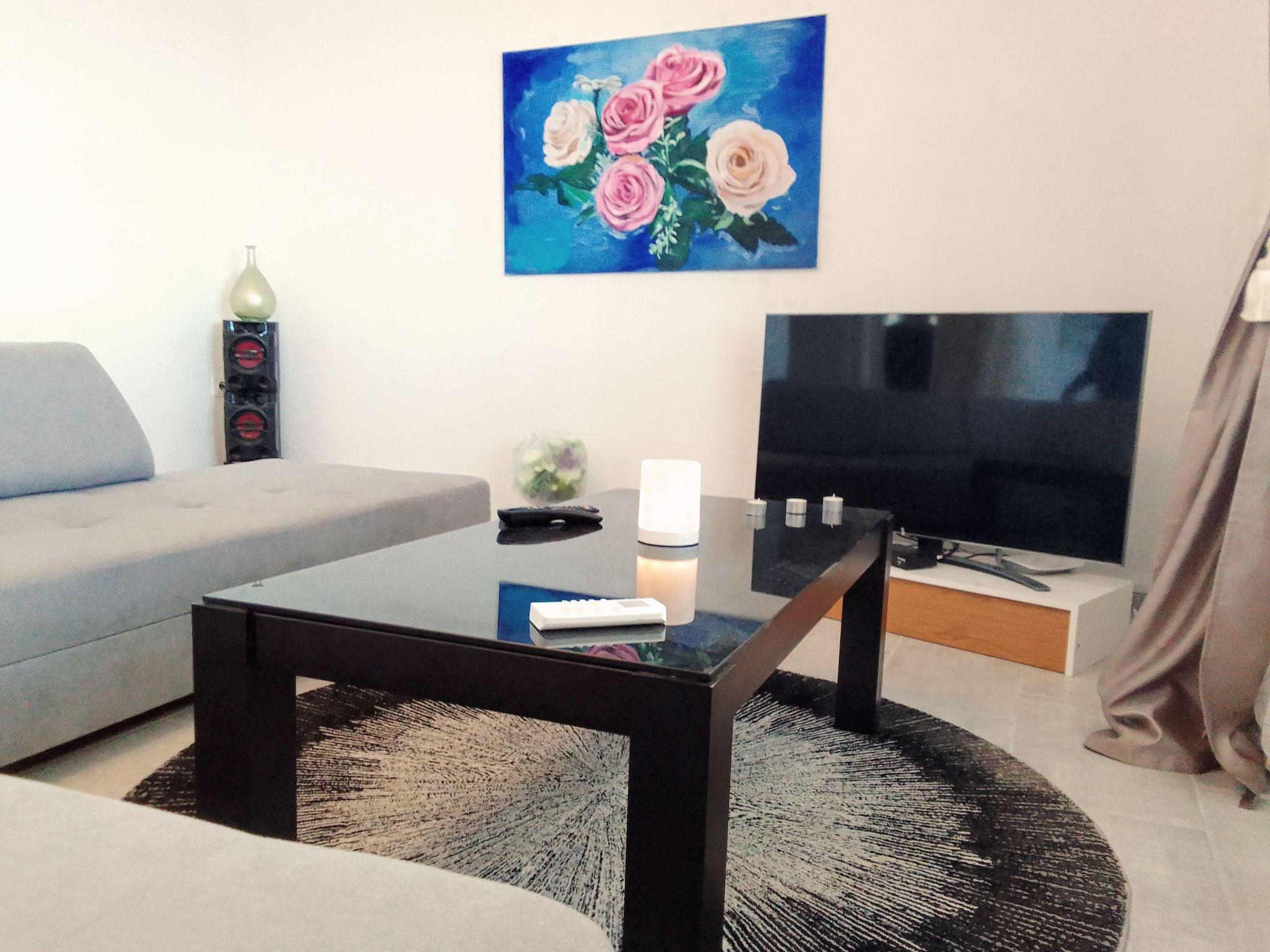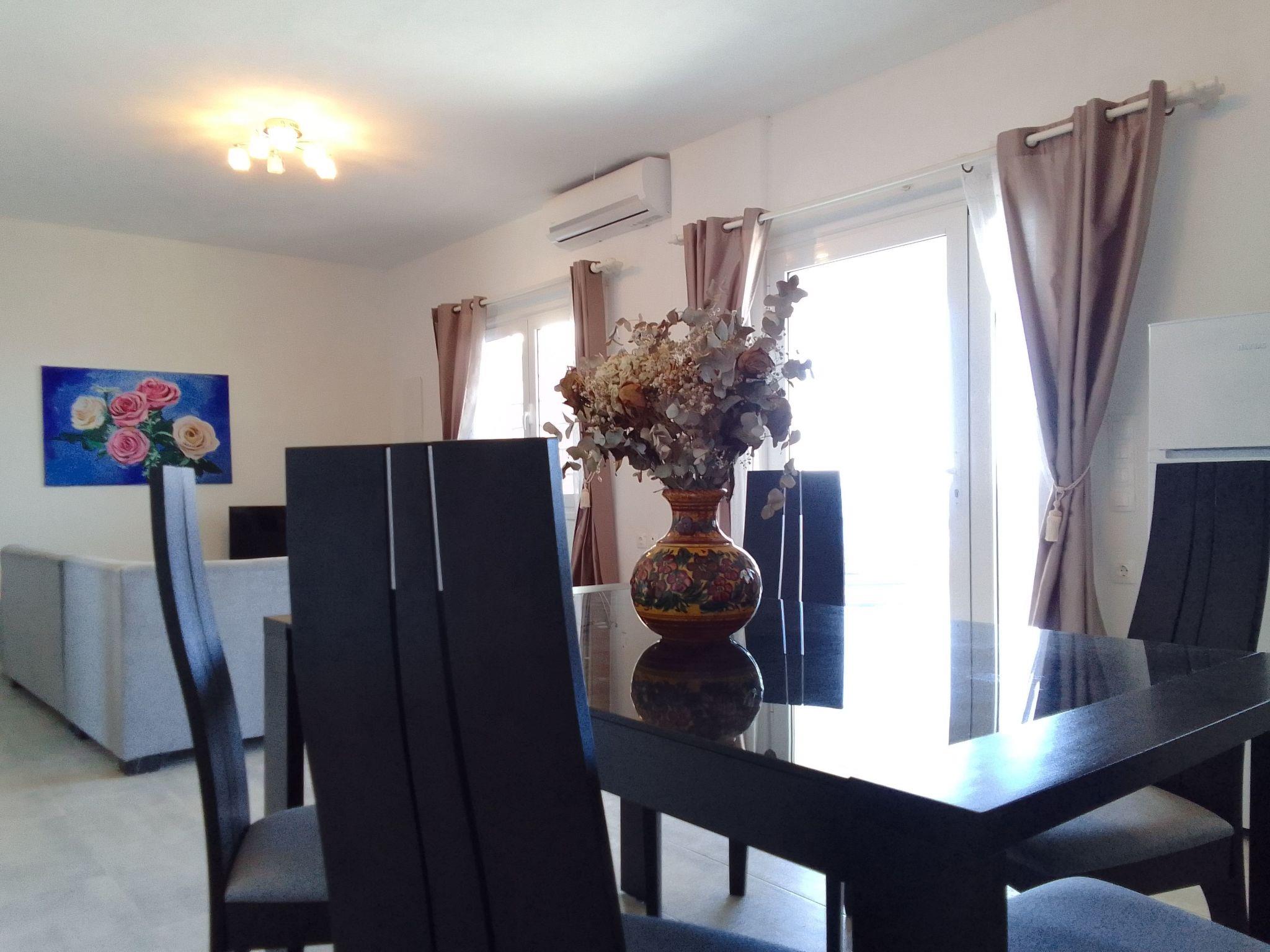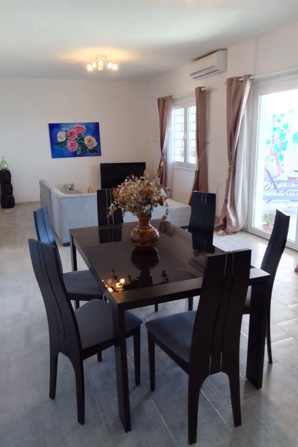Die Villa ist 80qm.Zwei Schlafzimmer(incl. Aircondition),:Hauptschlafzimmer mit Badewanne u. WC.Extra WC u. Dusche.Eine grosse Kueche mit Aircondition:Backofen, Waschmaschine. Spuelmaschine. Kuehlschrank. Kaffeemaschine Teller und Glaeser mit Geschier fuer ^ Personen.Auf der anderen Raum haelfte befindet sich der Wohnbereich.Ausgestatet 2. Aircondition:Smart TV, Wi-Fi, kleine Bluetooth Box und CD-Player.---------------------------------Alles Systeme Neu!--------------------------------------------------------------Von Allen Raumen aus ist das Meer zu sehen!