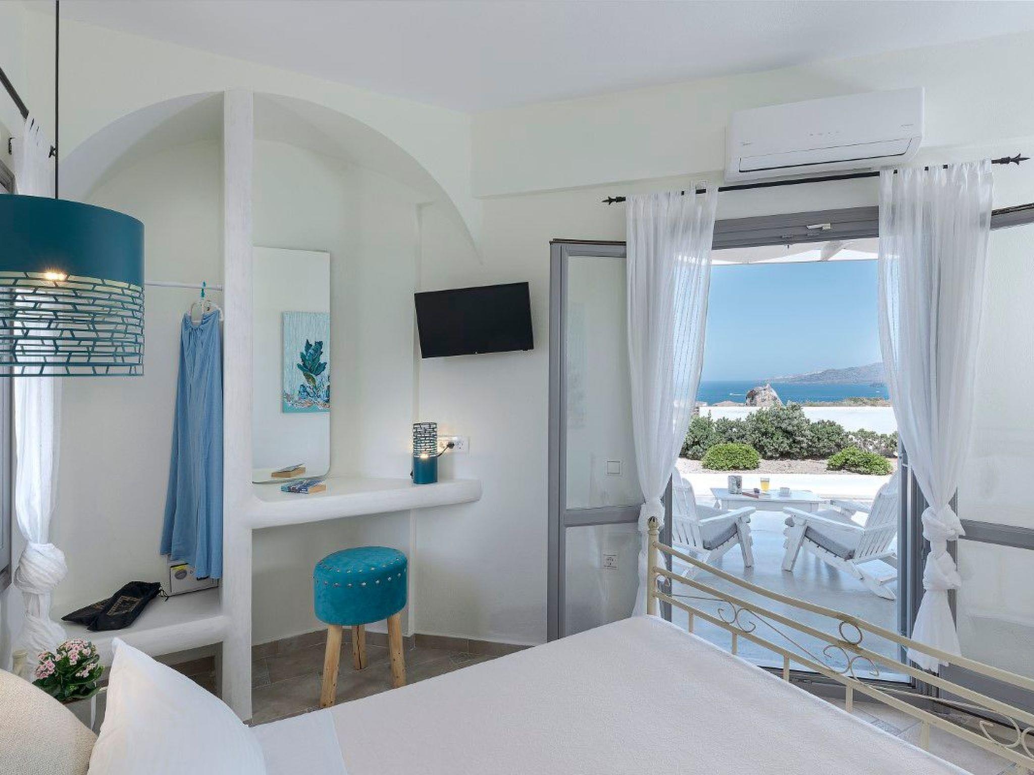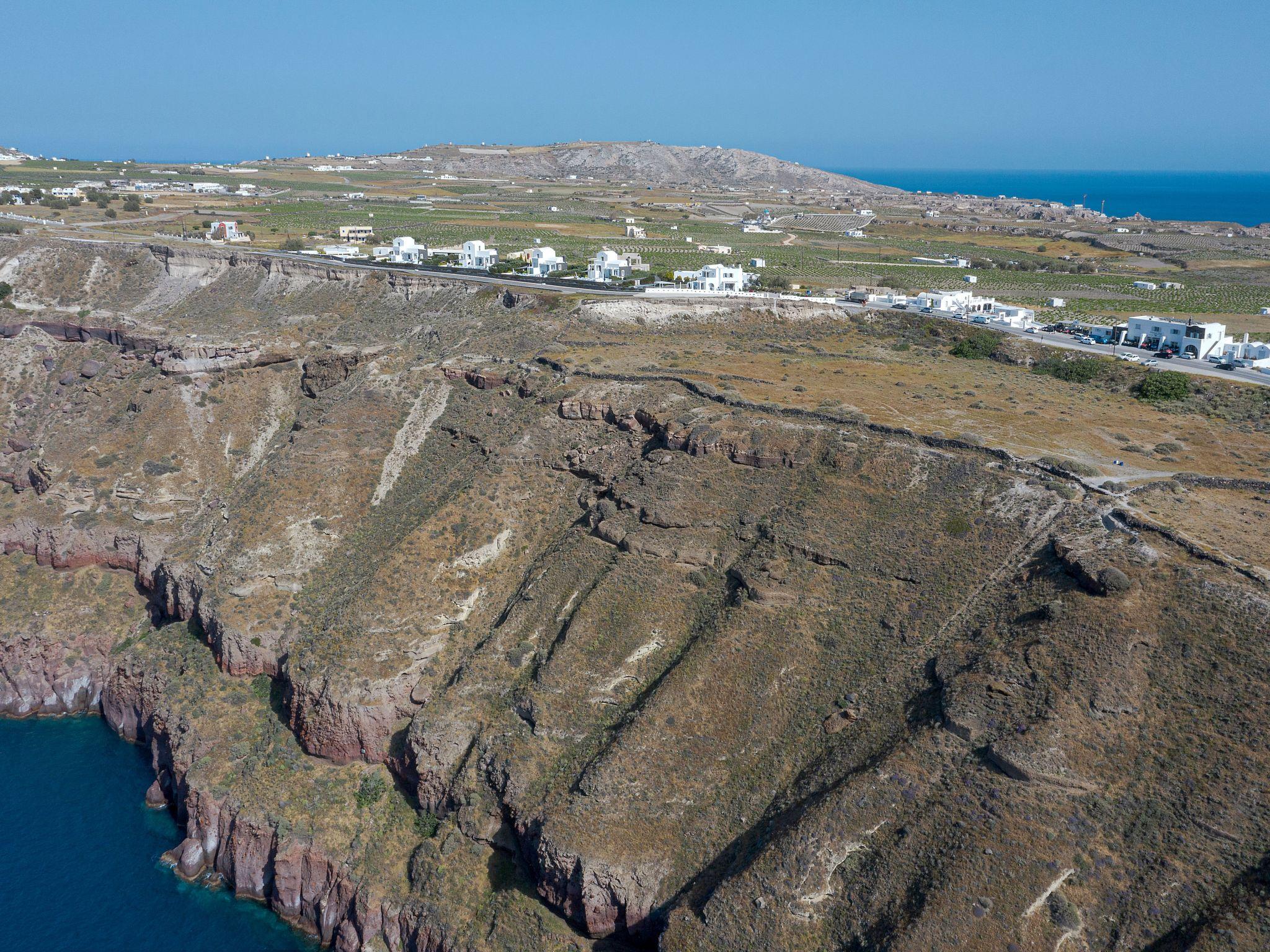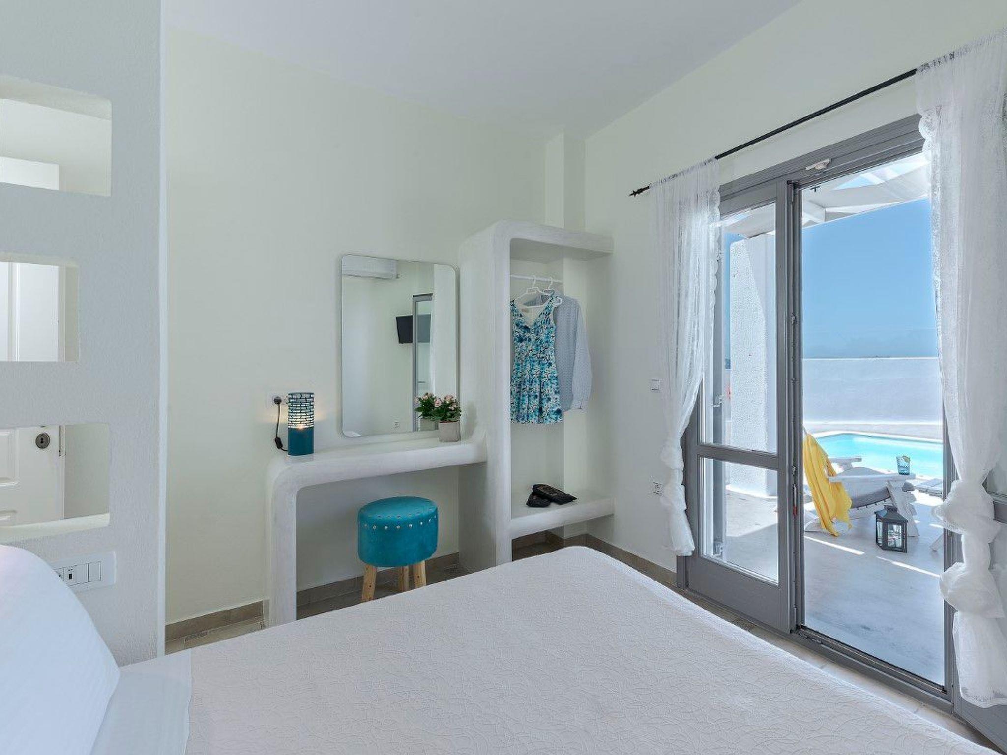 Im Erdgeschoss befinden sich 3 Schlafzimmer, ein Schreibtisch, Klimaanlage, Flachbildfernseher, ein großes Badezimmer und Veranden mit einem atemberaubenden Panoramablick auf die Caldera.