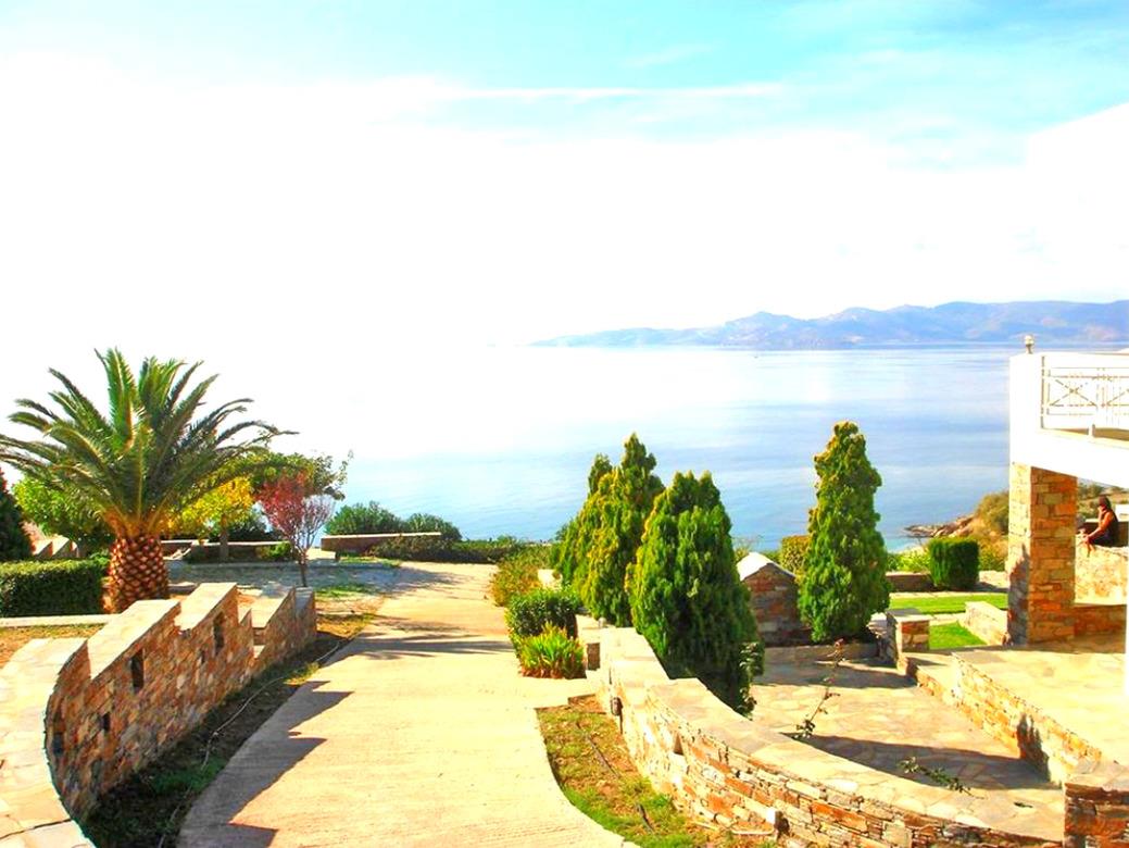 Das herrliche Anwesen liegt direkt am Meer auf der zweitgrößten Insel Griechenlands – auf Evia. Evia (Euböa) liegt nur 45 Minuten von Athen entfernt und ist neben den Fährverbindungen mit 2 Brücken mit dem Festland verbunden, eine davon überbrückt den Euripos, die mit nur 40 Metern schmalste Meerenge der Welt.