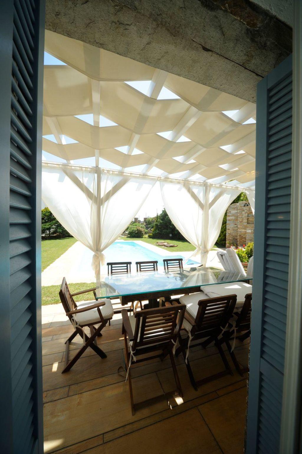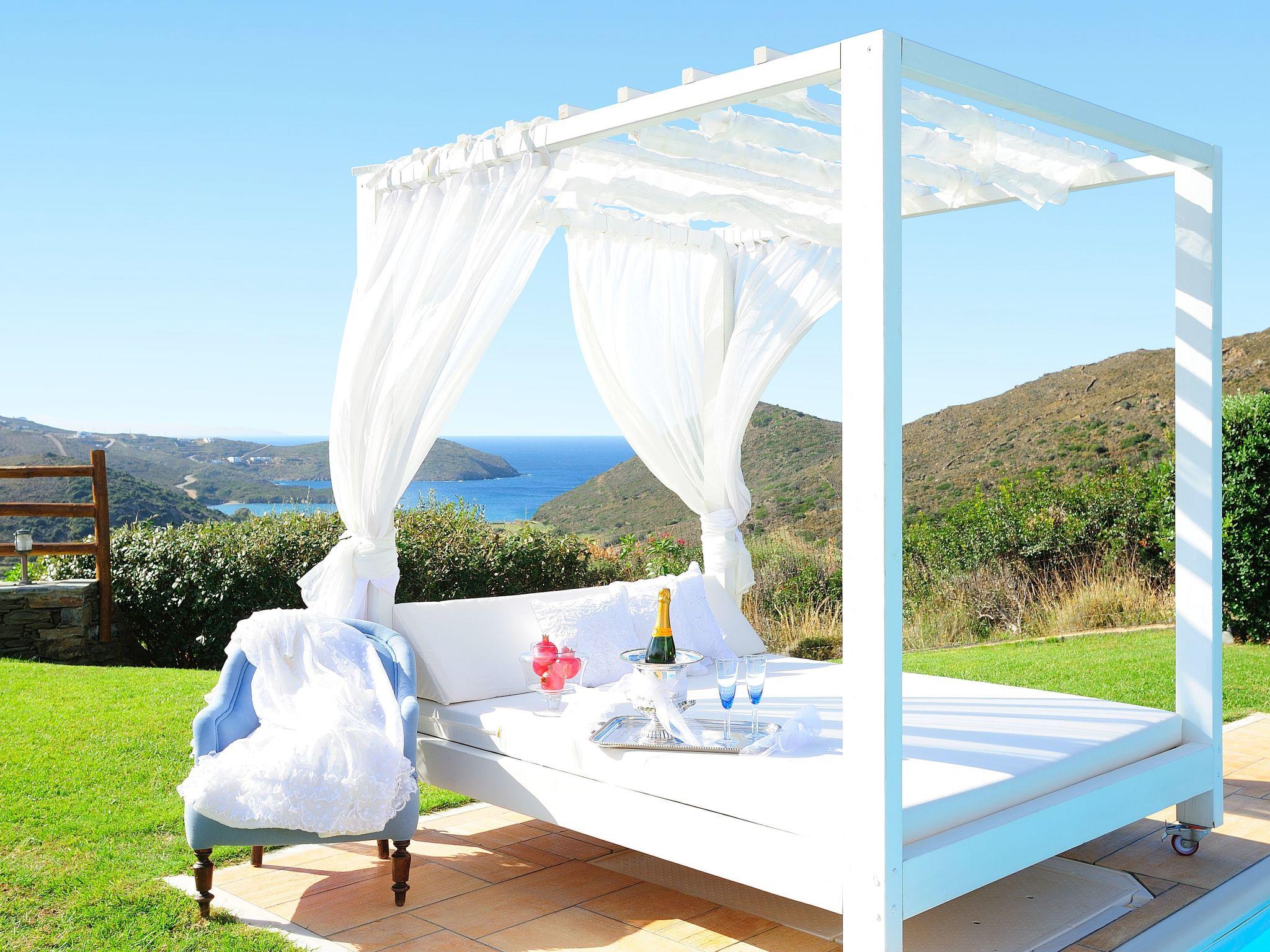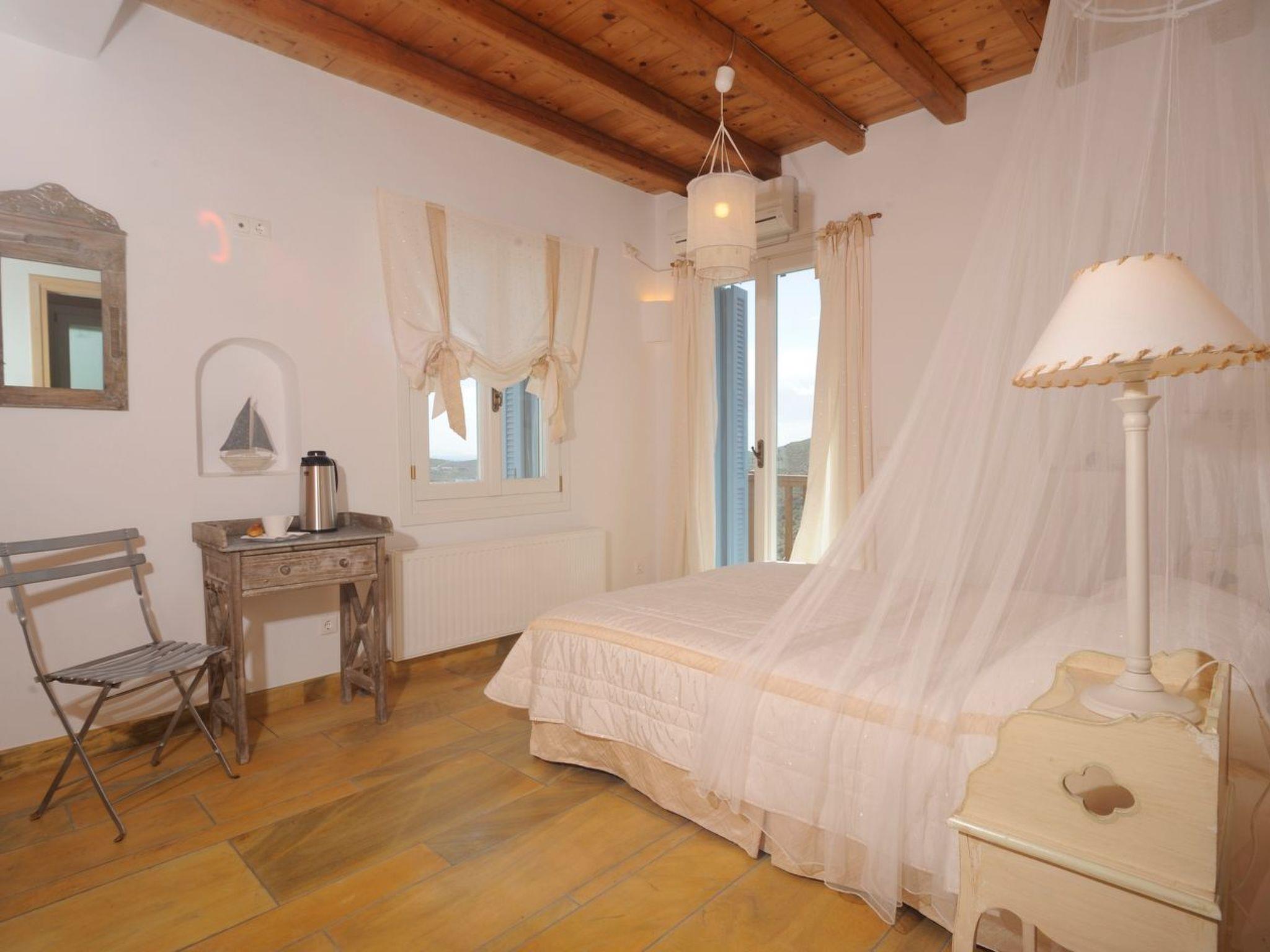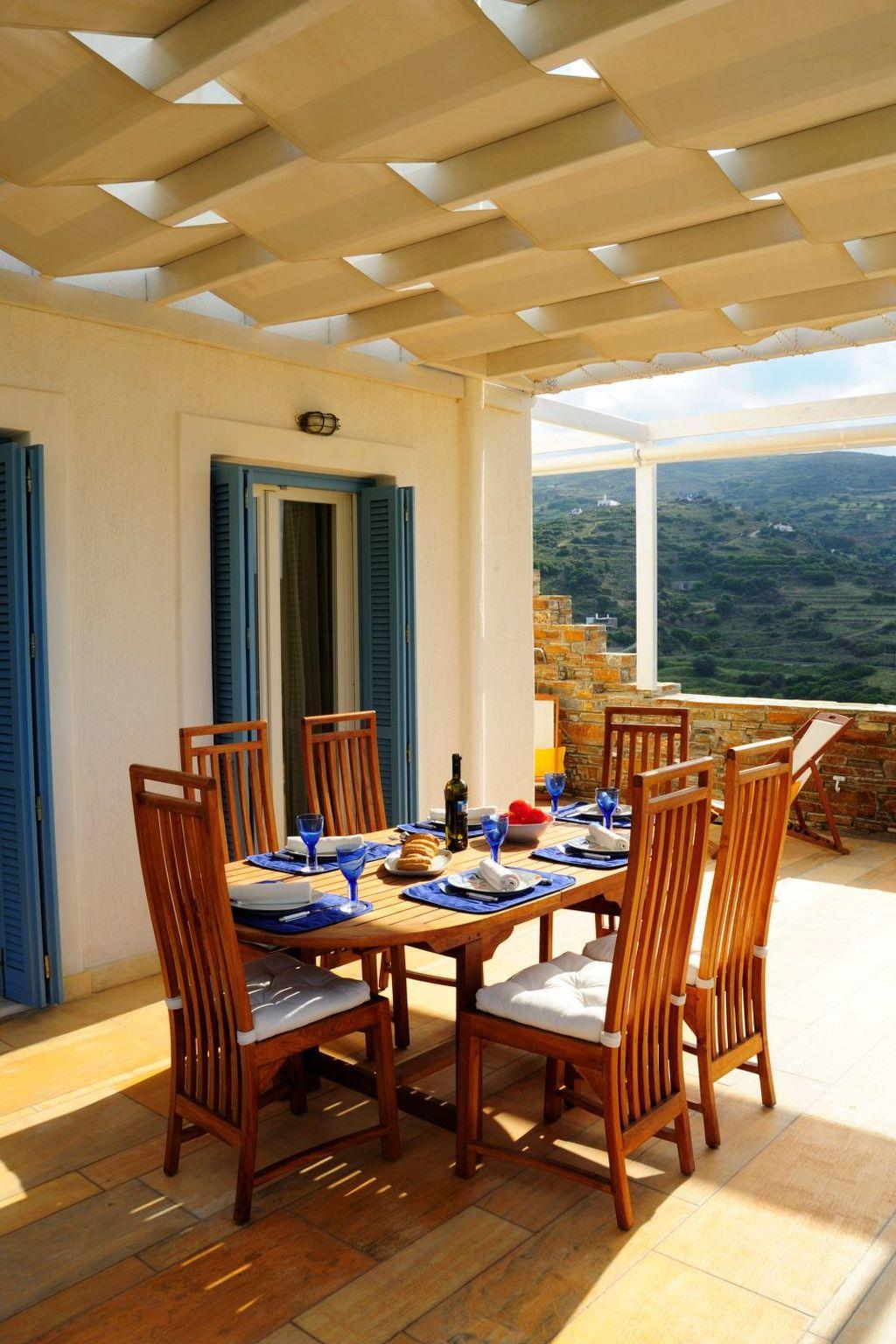 Unsere Villa befindet sich in der Region Kato Fellos, nur 5 Minuten mit dem Auto (oder 15 Minuten zu Fuß) von einem herrlichen Sandstrand und 5 km von der Hafenstadt Gavrio in Andros entfernt. Es ist auf einem Hügel gebaut und bietet einen wunderschönen Blick auf das Ägäische Meer und die grüne Natur der Insel. Die Lage ist ruhig, entlang einer wenig befahrenen Straße, perfekt für totale Entspannung.