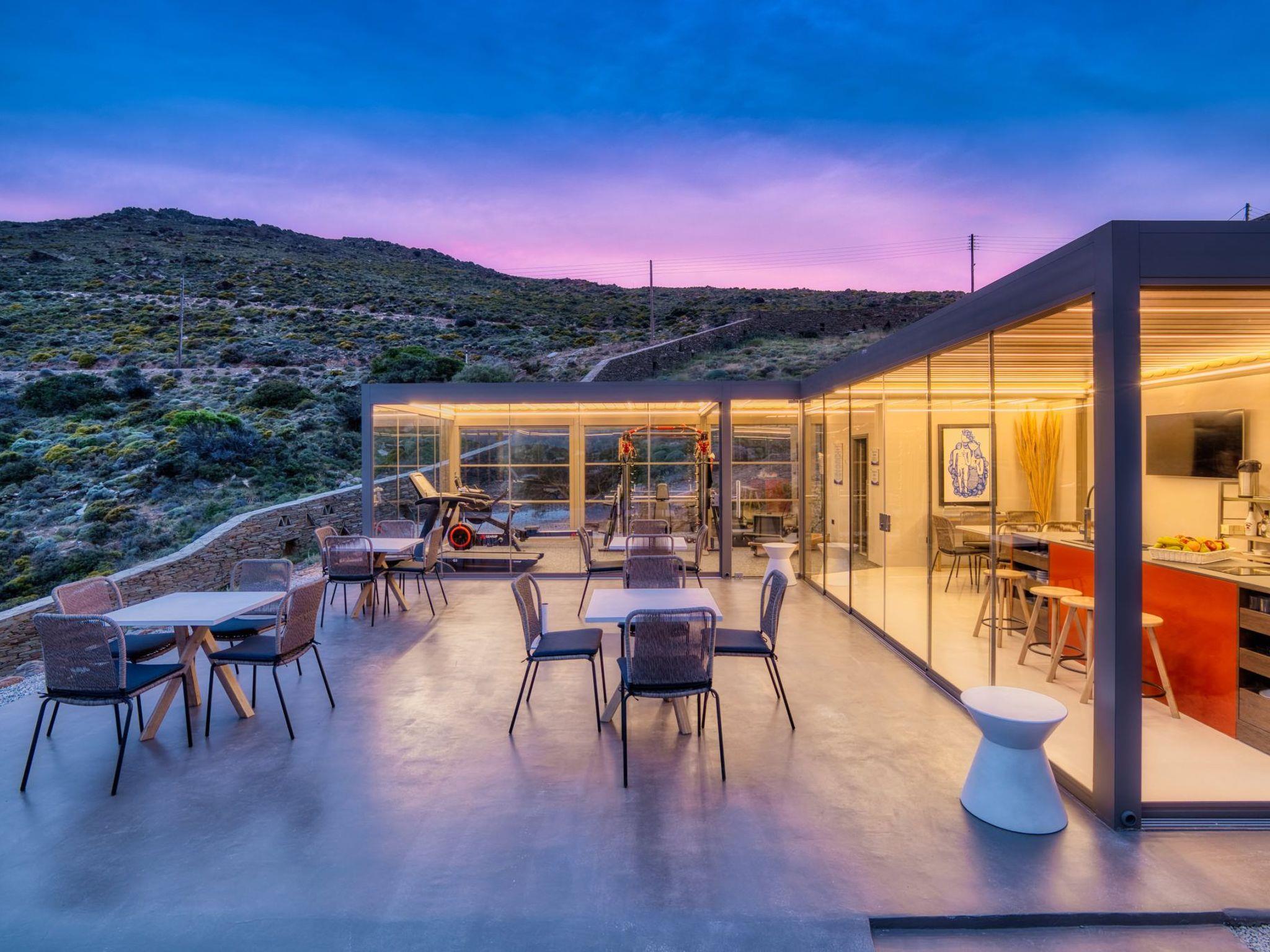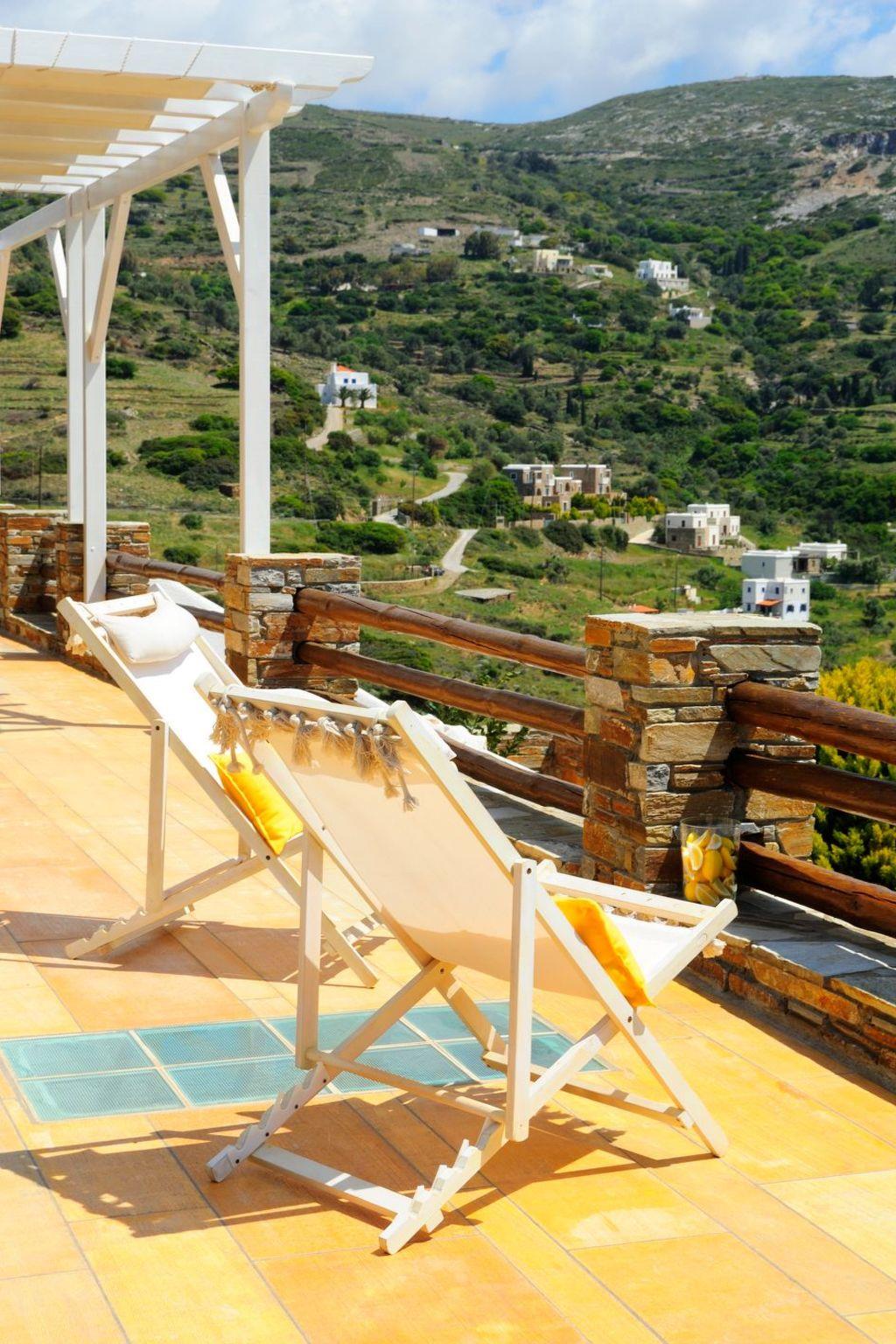 Der nächstgelegene Strand ist der Sandstrand von Kato Fellos (1 km entfernt), während die nächstgelegene Stadt Gavrio ist, wo es Supermärkte, Restaurants, Tavernen, Apotheke und Geldautomaten gibt.
