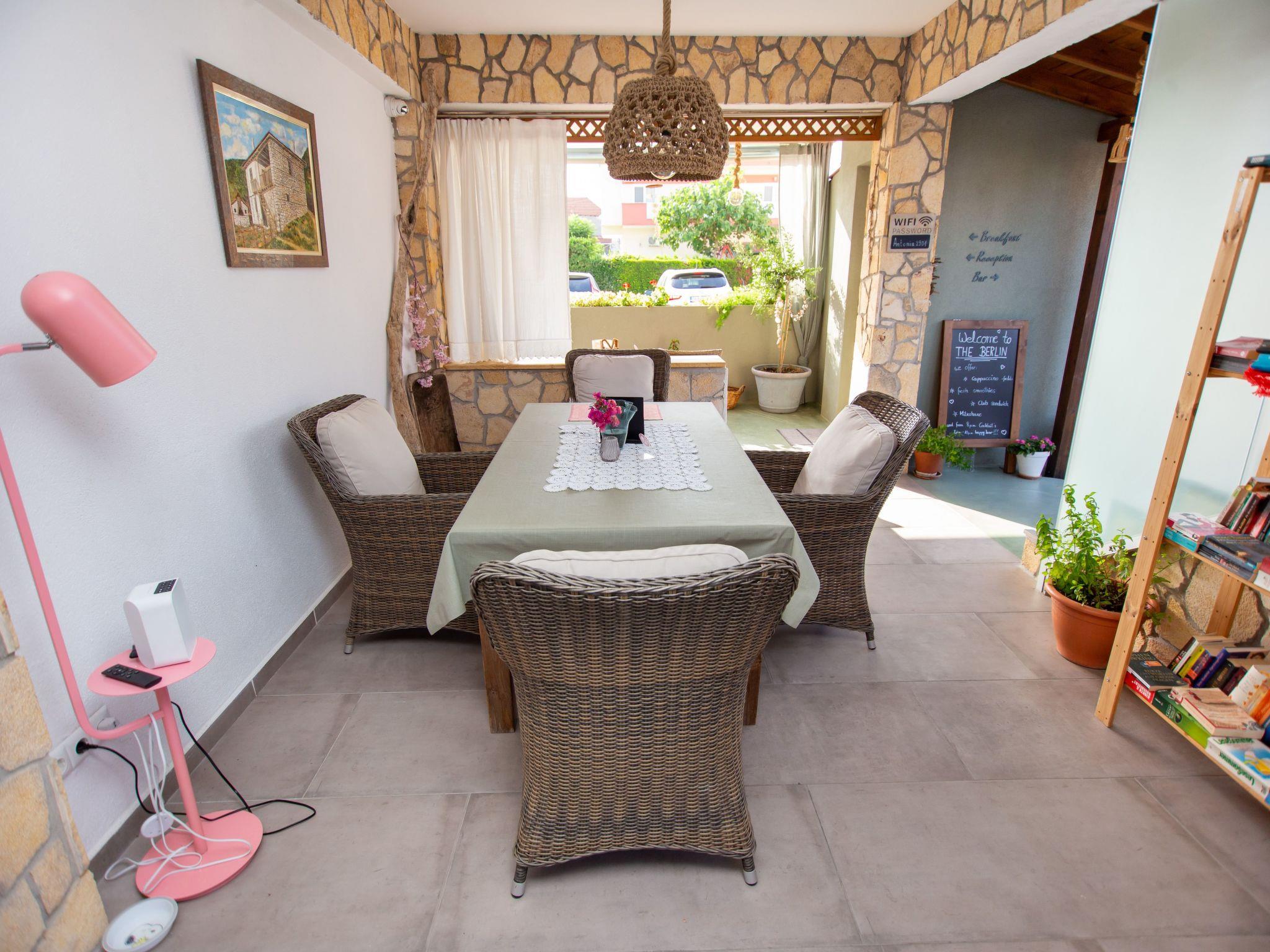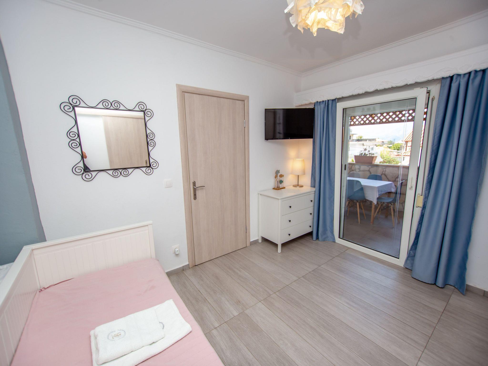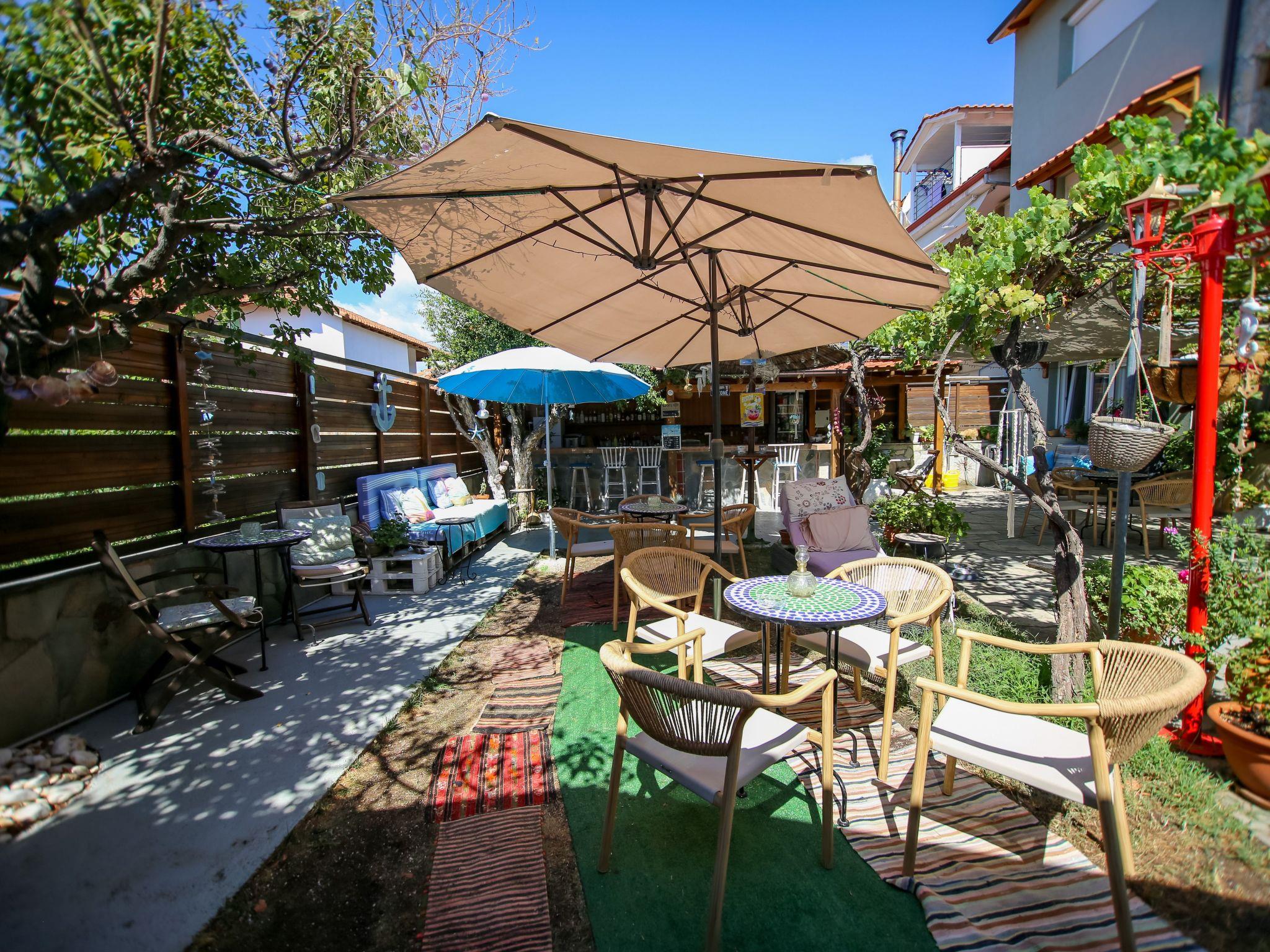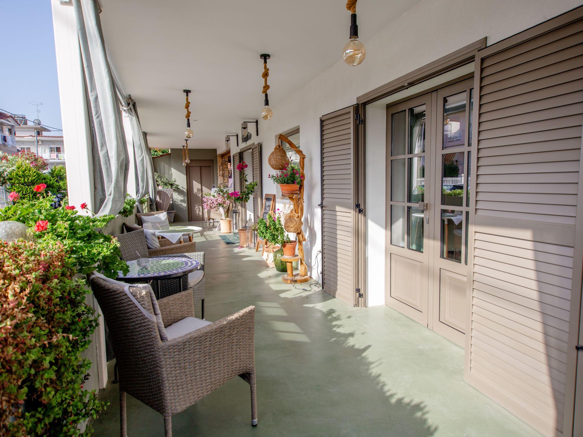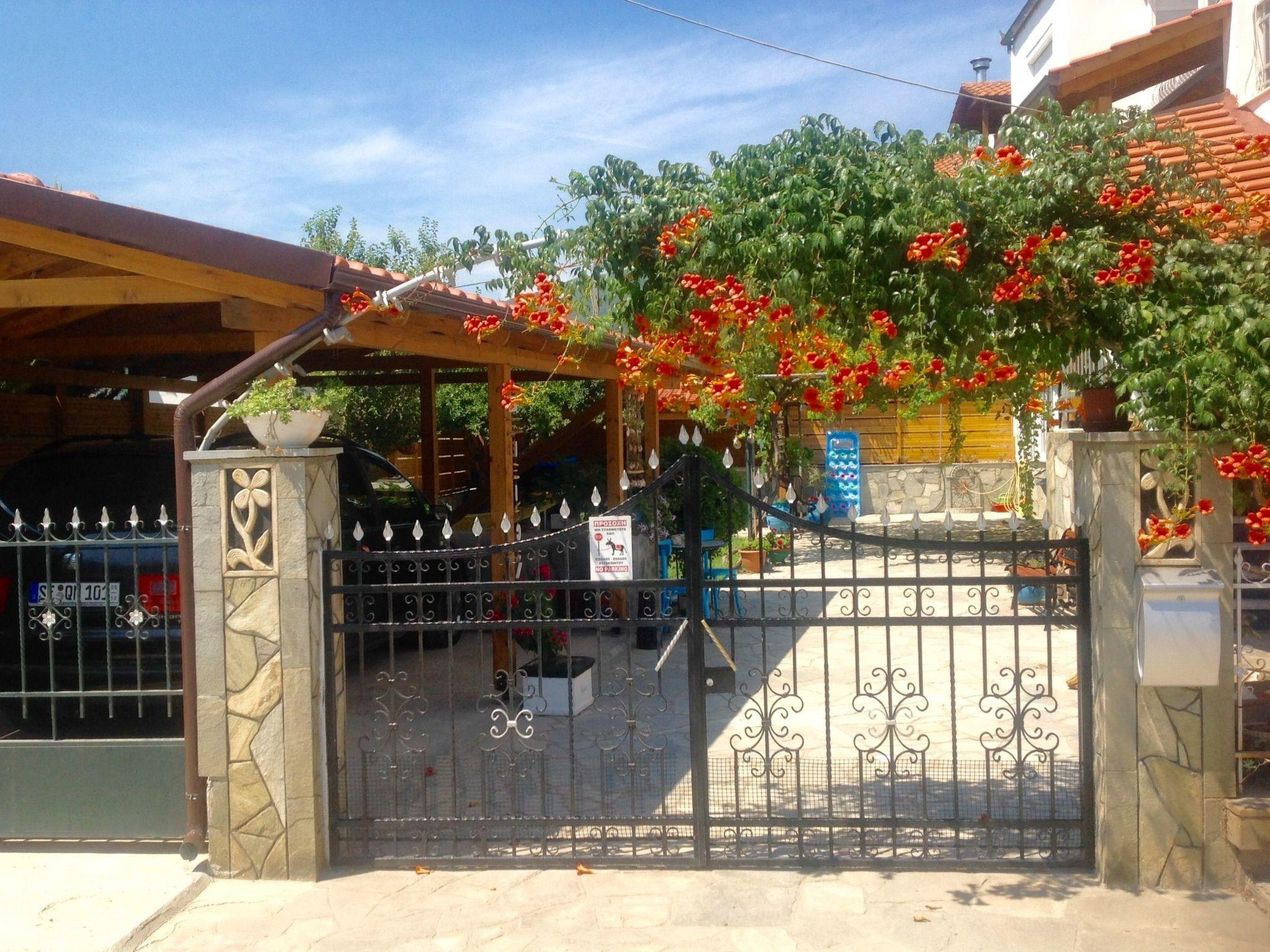Das Apartment Haus liegt mitten in Nea Vrasna. Sehr ruhig und trotzdem sehr zentral. Zum 8 km langen Sandstrand sind es nur 4 - 5 Gehminuten (230m.). Alle Einkaufsmöglichkeiten sowie Bars und die vielen Tavernen sind sehr gut zu Fuß erreichbar. Der Bäcker ist nur 100 m vom Haus entfernt. Zum Flughafen Thessaloniki sind es 90 km. Über die neue Autobahn A2 erreichen Sie den Flughafen in einer Stunde.