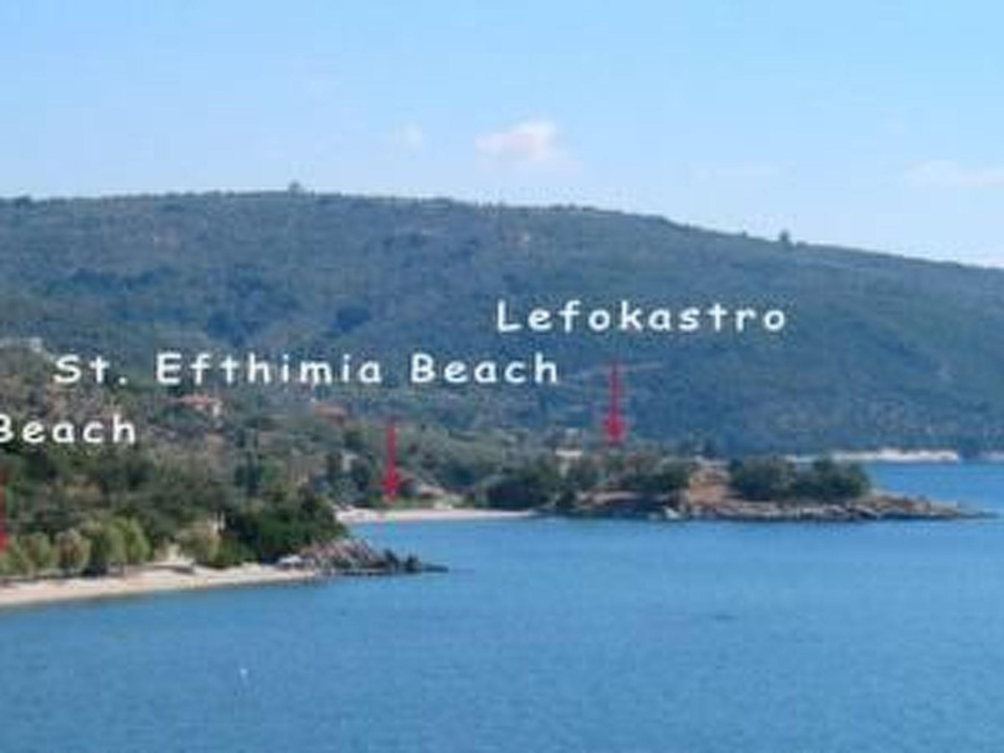 Strand: Sandstrand Agia Efthimia bei Lefokastro ca. 50-100 m. Der nächste Strand ist in Lefokastro ca. 500 m oder in Afissos ca. 1,8 km