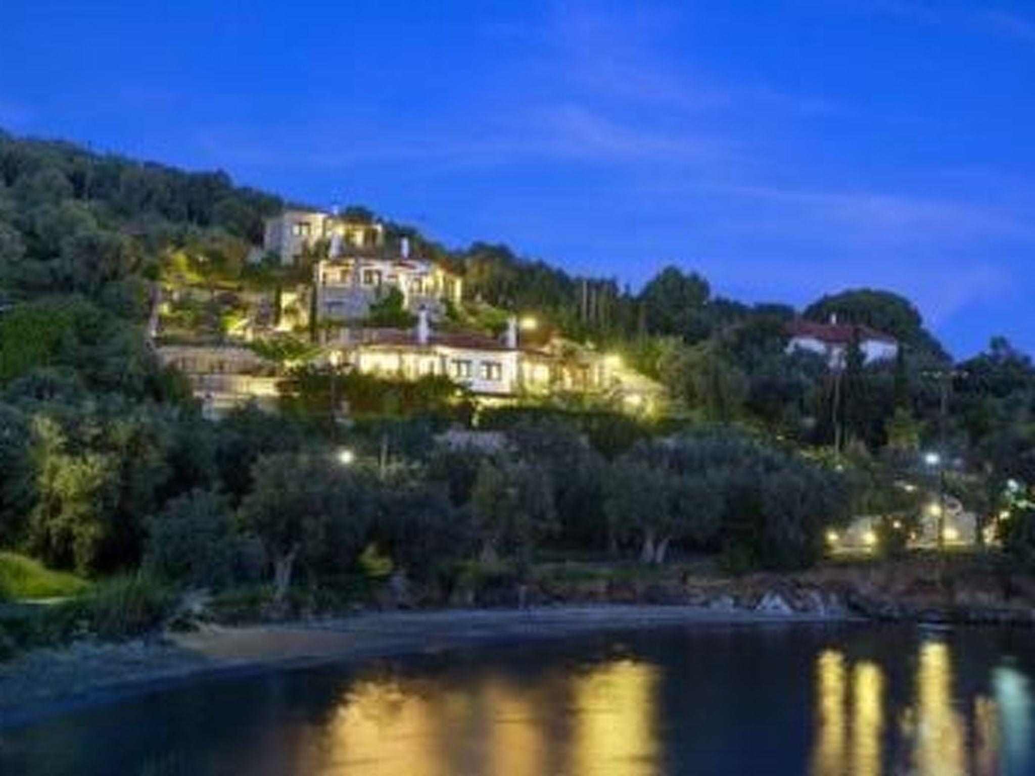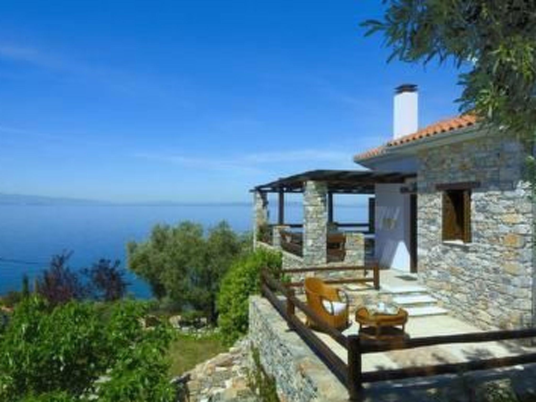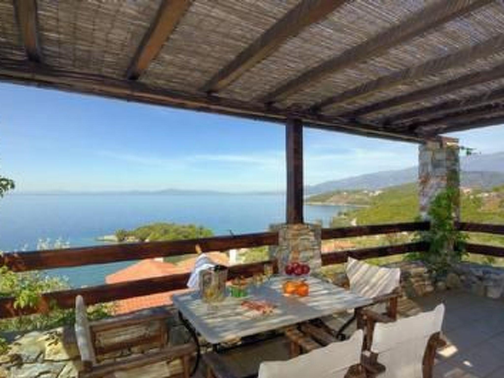Es liegt am Hang und man hat von überall einen sehr schönen Panorama Meerblick.