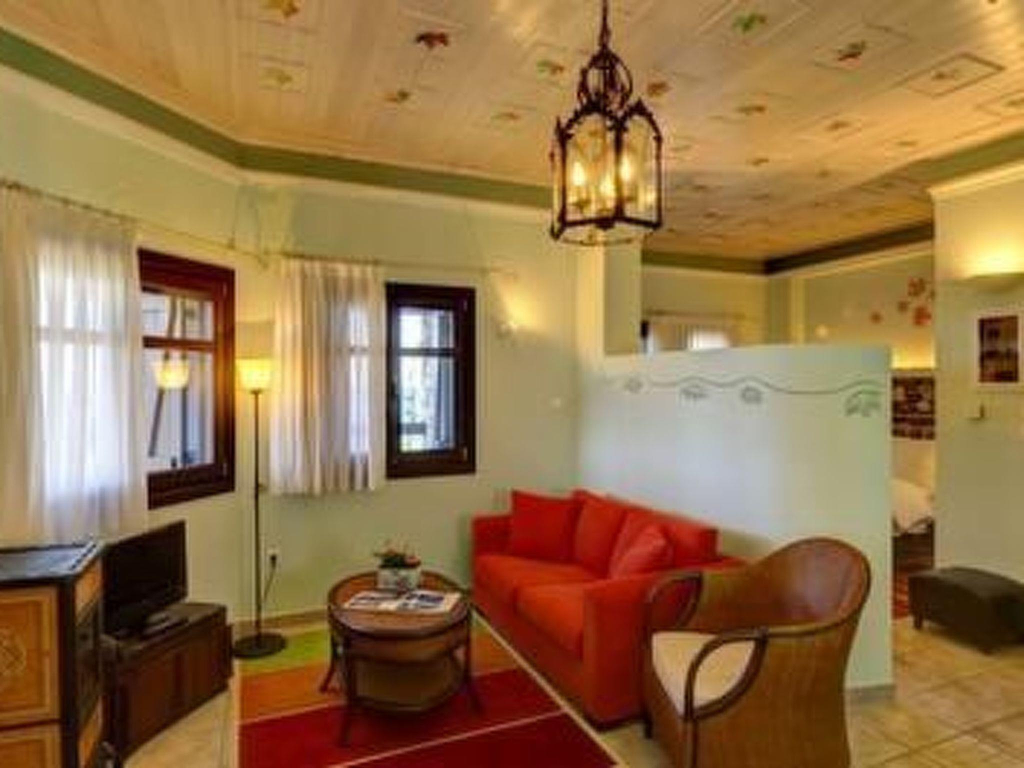 5 Wohnungen - je für 2-3 Personen (zwei davon sind auch für 2 Erw.+2 Kinder geeignet): Jede Wohnung ist sehr geschmackvoll und modern eingerichtet. Die ganze Wohnung besteht praktisch aus einem Raum. Der Schlafbereich mit einem Doppelbett ist von der übrigen Wohnung entweder mit einer Theke oder mit Vorhängen abgetrennt. Der Wohnraum verfügt über einen großen Schlafcouch, Kamin, TV, Heizung, sehr gut ausgestattete Kochnische, Esstisch mit 4 Stühlen, Du/WC, Terrasse (20 qm) mit Gartenmöbeln und Meerblick.