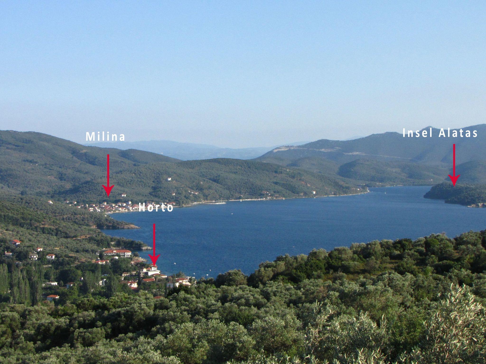 Das Haus bietet einen atemberaubenden Panoramablick auf den "Pagasitikos Golf" und verspricht entspannte Urlaubstage in idyllischer Umgebung.