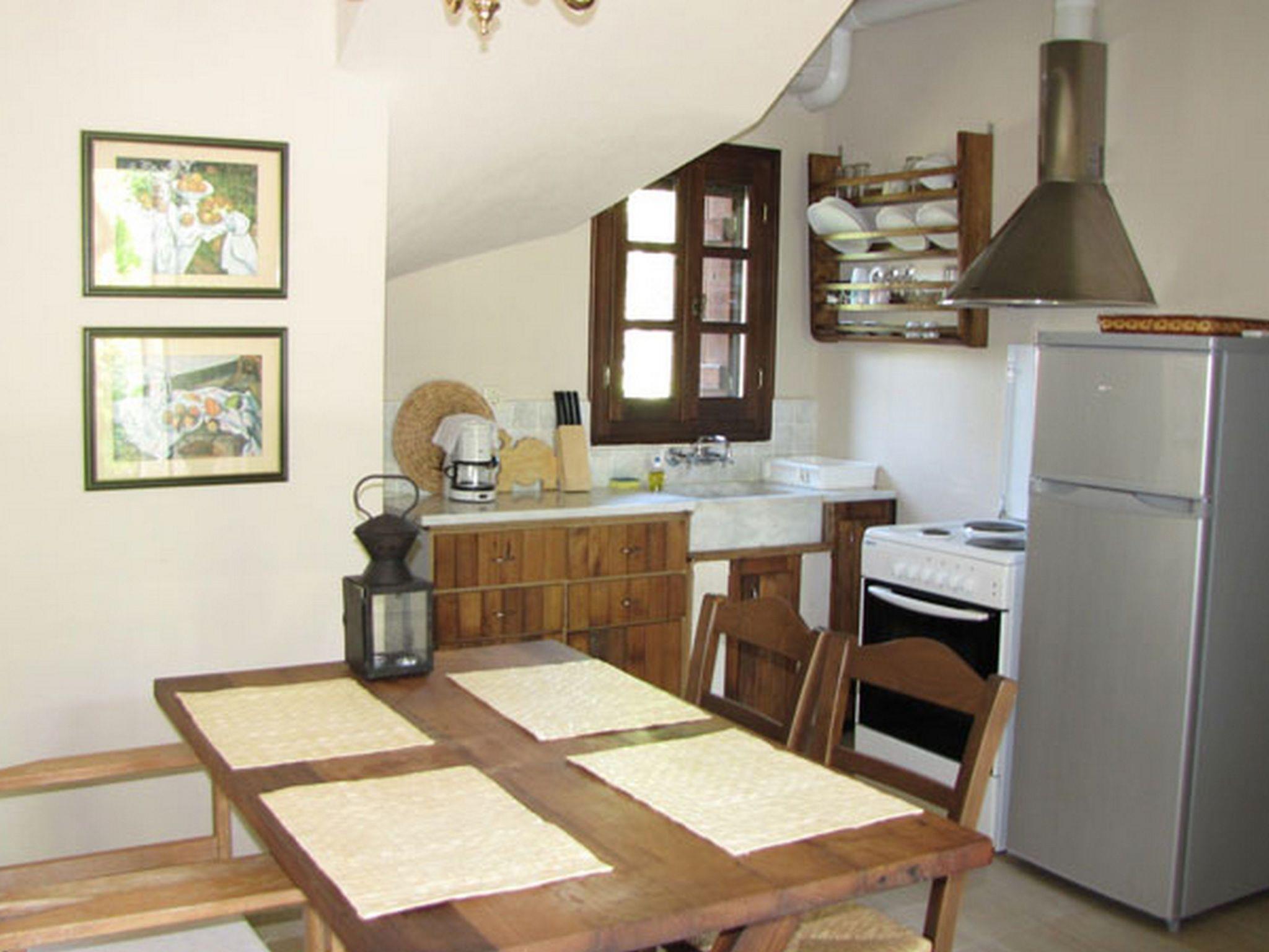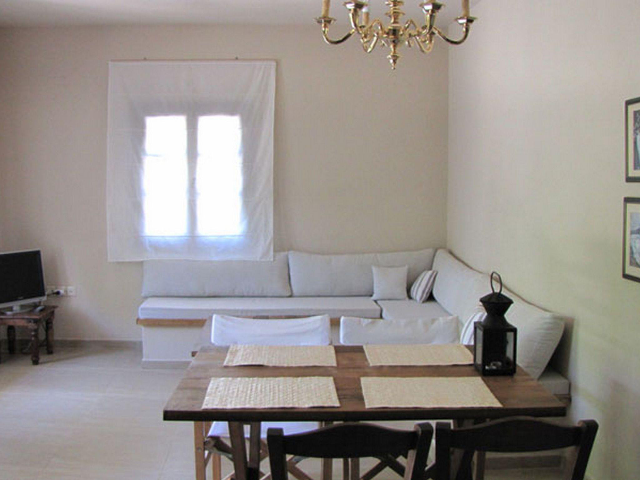 Eleni Villa I verfügt über 2 Wohnungen. Eine Wohnung im OG und eine im EG: Jede Wohnung ist für 4-5 Personen geeignet und verfügt über zwei Schlafzimmern (ein Zimmer mit Doppelbett und eins mit zwei Einzelbetten), einen geräumigen Wohnraum mit Sitzgarnitur und Schlafmöglichkeit für eine 5. Person, Esstisch und eine gut ausgestattete Küche. Die Wohnung im Obergeschoß verfügt über einen Kamin und einen Balkon mit Gartenmöbeln und ist 74 qm groß (+ Balkon).