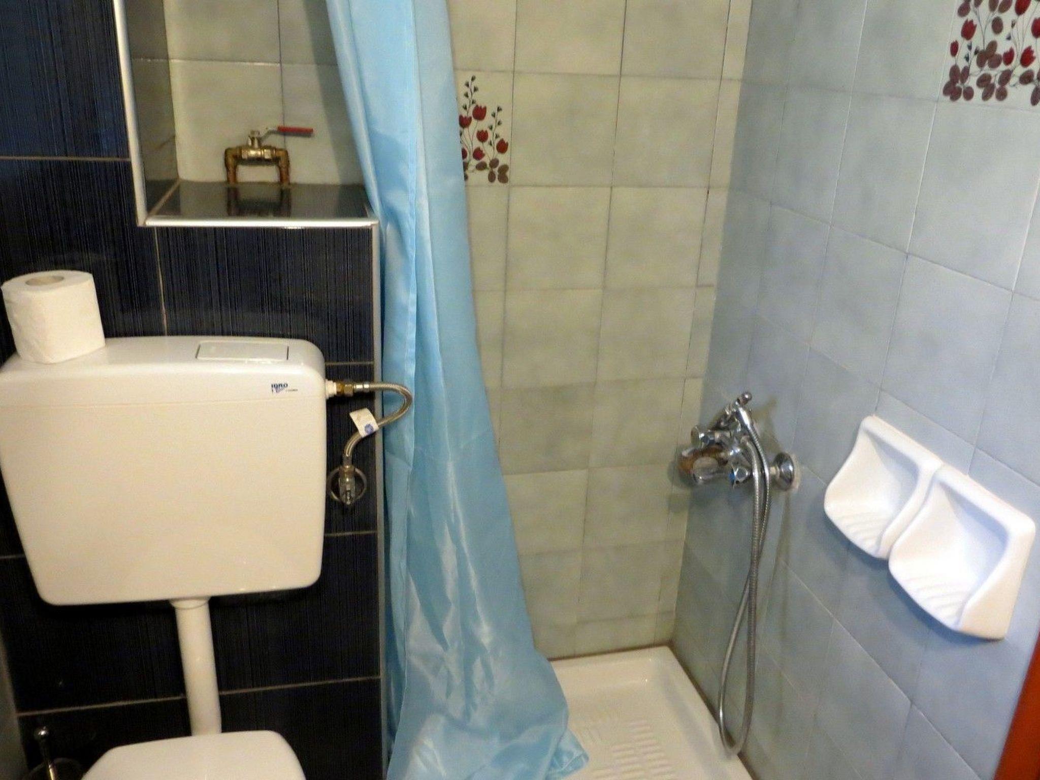 Das Appartement befindet sich im Erdgeschoss und besteht aus zwei Schlafzimmern (1x mit einem Doppelbett und 1x mit 3 Einzelbetten), einer kleinen Küche, einem Duschbad/WC und einer großen Veranda mit Kiosk, Gartenmöbeln und Meerblick.