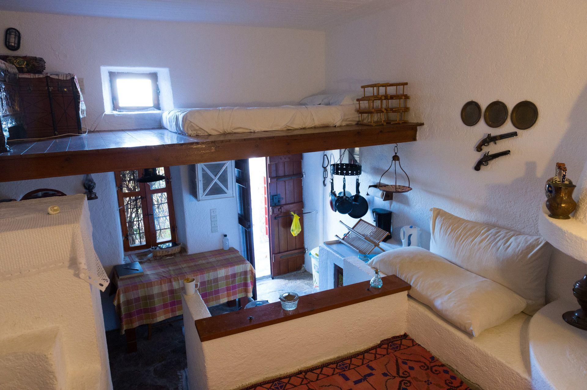 Das 1905 traditionell erbaute Steinhaus verbindet rustikale Merkmale mit luxuriöser Ausstattung. Es wurde 1930 umgebaut und 1965 von dem bekannten Architekten Theodosopulos gekauft, der es restaurierte. Das Innere des Hauses ist mit Sichtmauerwerk, Holzbalken und eleganten Möbeln ausgestattet, die eine warme und gemütliche Atmosphäre schaffen. Es kann bis zu 4 Personen in 2 verschiedenen Räumen beherbergen. Inklusive A/C. Ein kleiner Innenhof mit Blumen. Im Haus Essbereich mit Tisch und Küche mit allen Utensilien. Dann die Sitzecke mit Kamin und weiter das erste Schlafzimmer mit zwei Einzelbetten und Kamin. Ein paar Stufen hinauf und Sie befinden sich im Hochparterre und im Hauptschlafzimmer mit Doppelbett. Die Tür auf der rechten Seite führt Sie auf die überdachte Veranda mit Esstisch für sechs Erwachsene und Sommerküche. Hervorragender Blick auf das Meer, den Hafen von Elounda und die Strände.