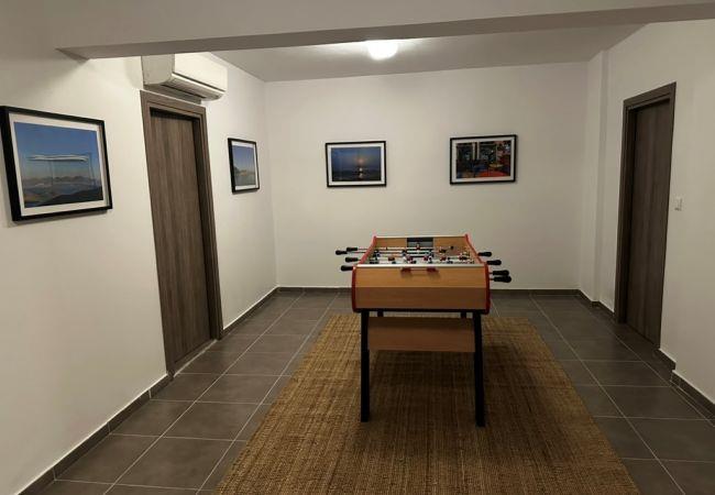 Diese 300 qm große Villa bietet Platz für bis zu 10 Gäste auf drei Etagen und fünf Schlafzimmern. Es gibt 5 Badezimmer mit Duschen für Ihre Bequemlichkeit. Die Villa verfügt über eine voll ausgestattete Küche mit Essbereich, ein geräumiges modernes Wohnzimmer mit einem Fernseher mit Satellitensignalen und Netflix sowie einen BluRay DVD-Player. Darüber hinaus bietet ein Entspannungsbereich ein Home Cinema, Brettspiele und eine Xbox One-Videospielkonsole zur Unterhaltung.