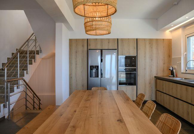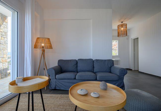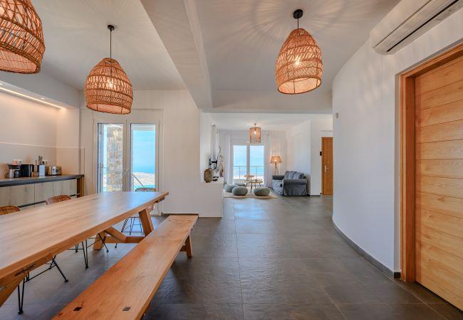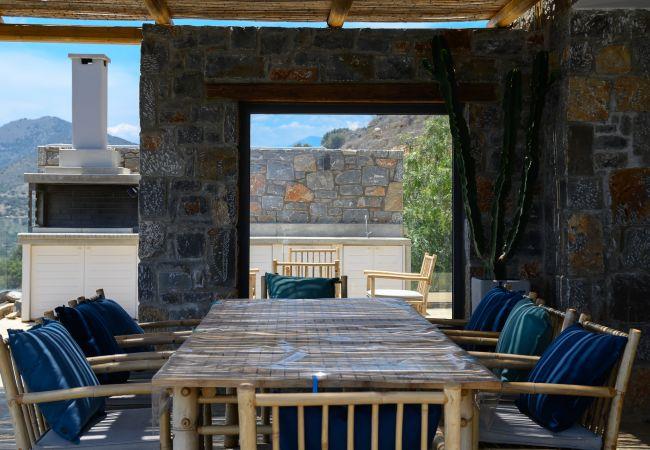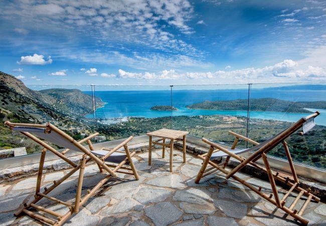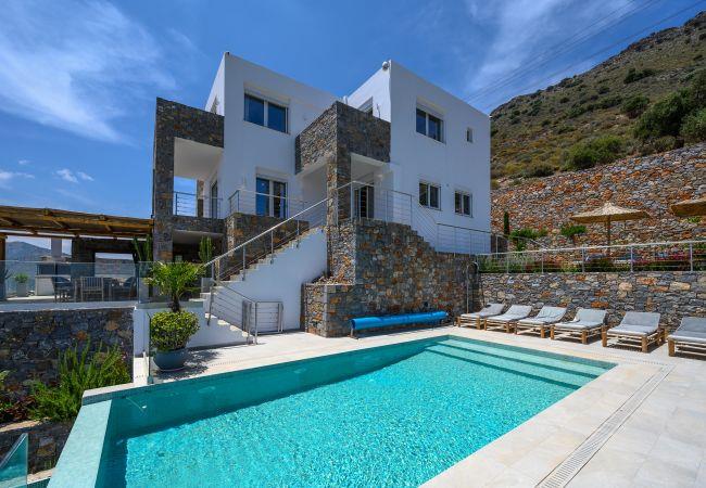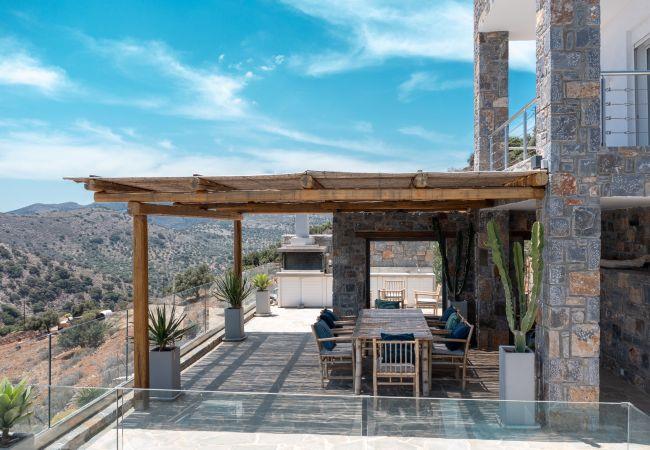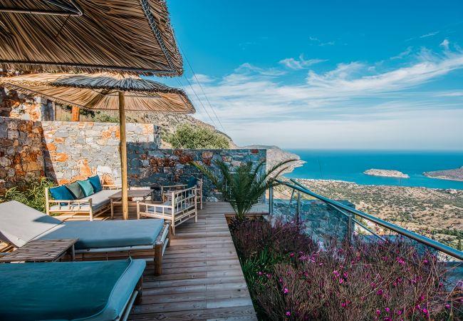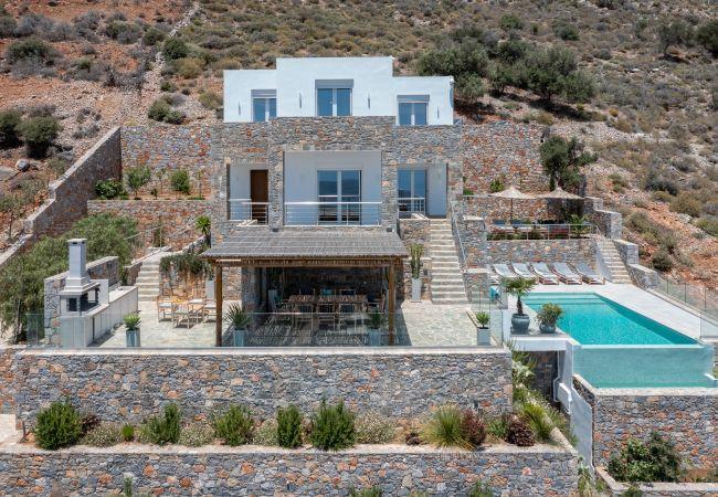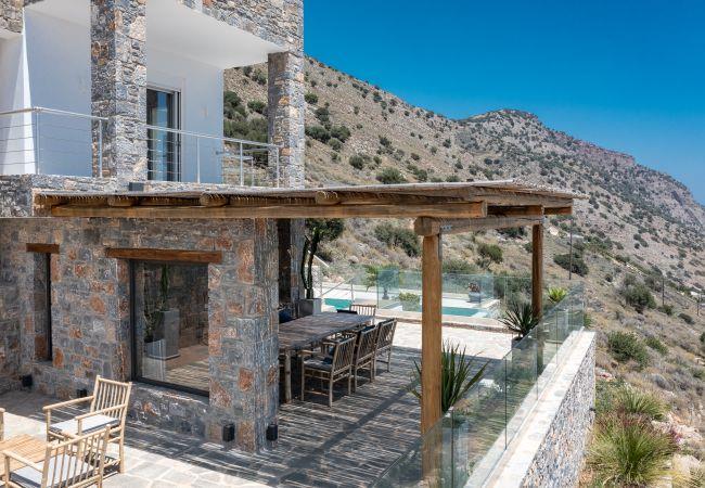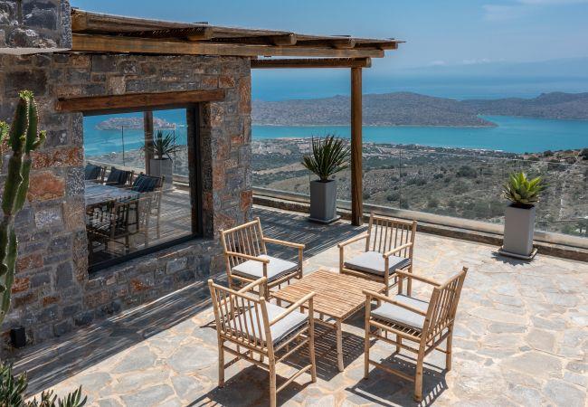 La Villa in Havgas ist eine atemberaubende Villa mit einzigartiger Architektur, die auf dem Hügel von Havgas in Elounda thront. Wenn Sie sich der Unterkunft nähern, werden Sie von der prächtigen Aussicht auf die Mirabello-Bucht und die Insel Spinalonga am Horizont begrüßt.